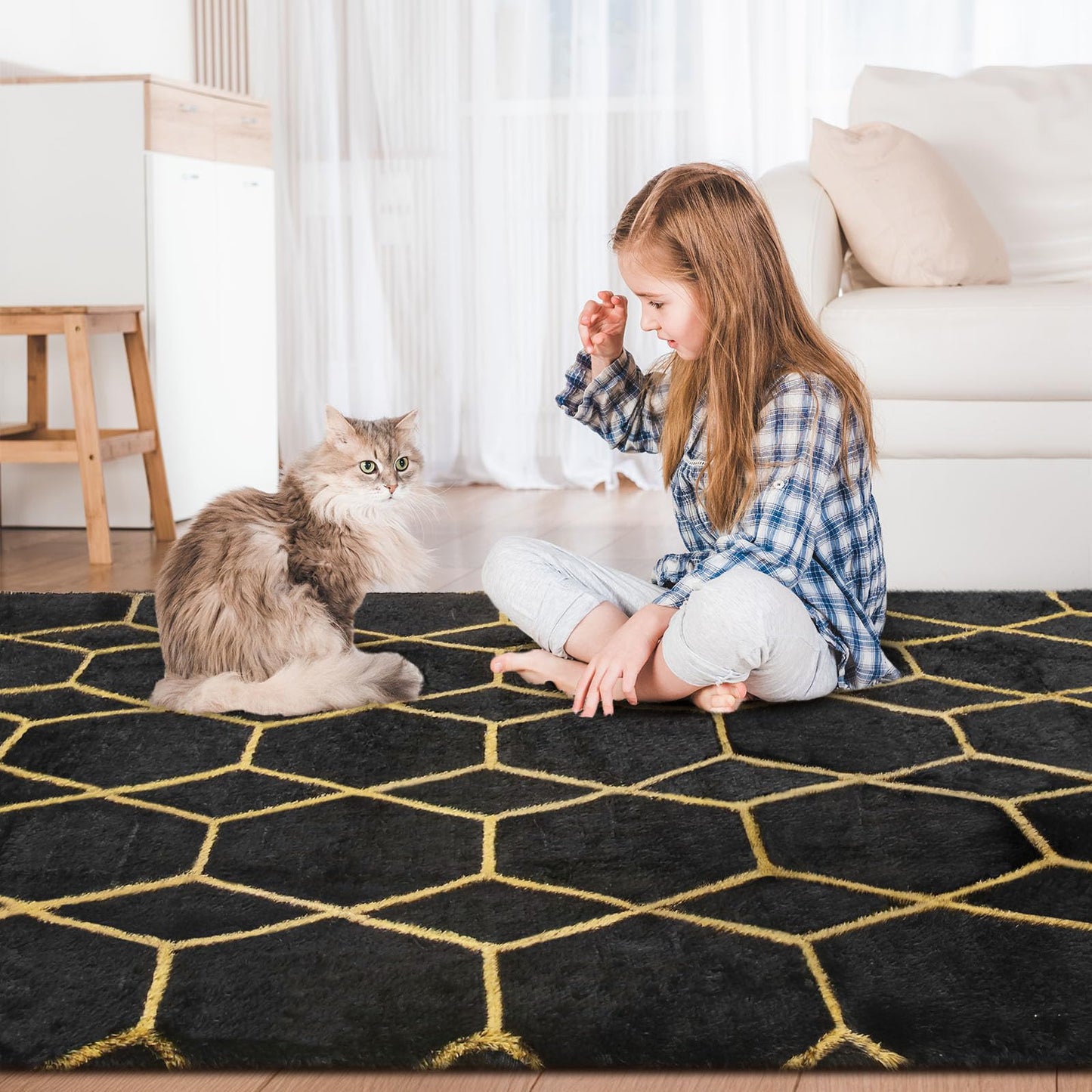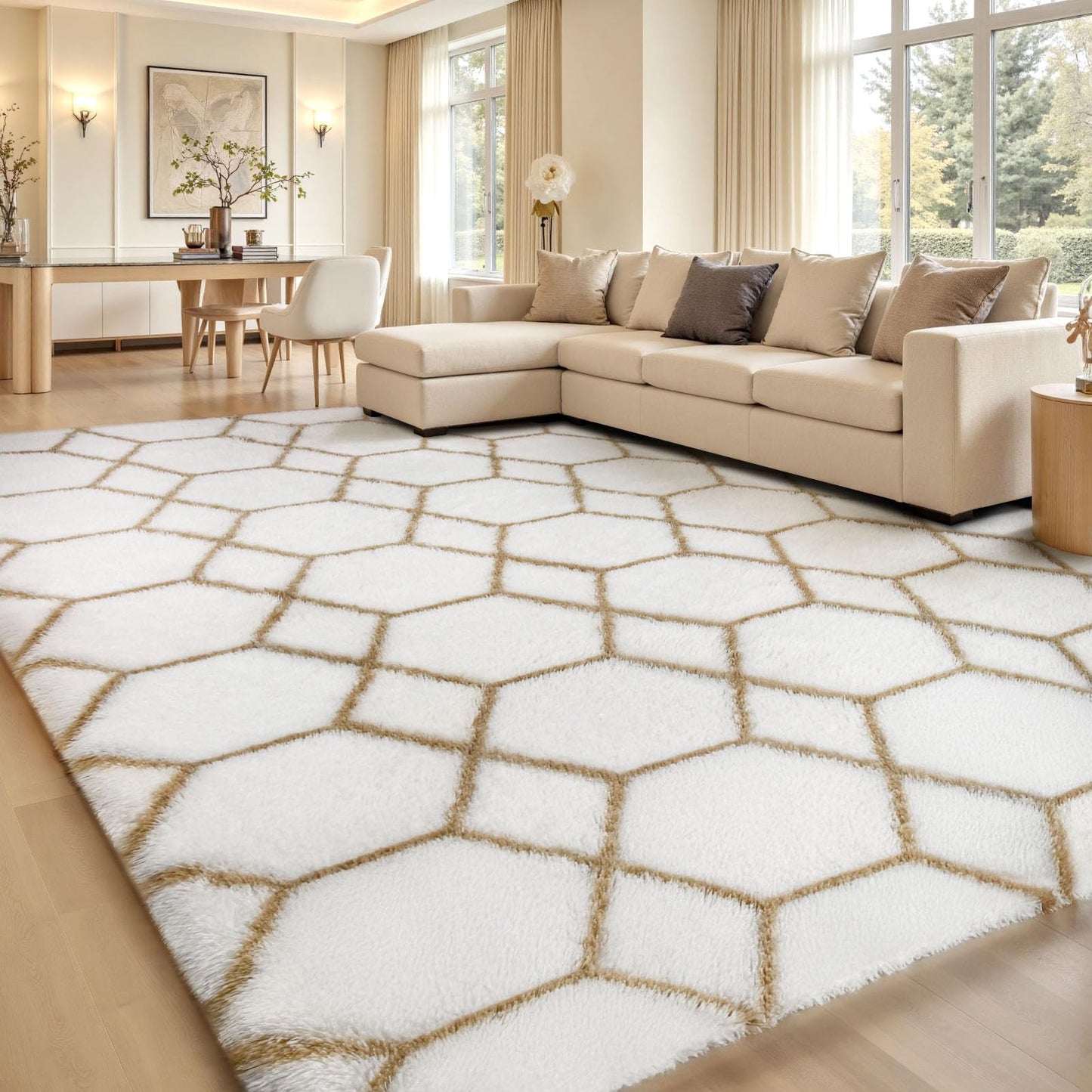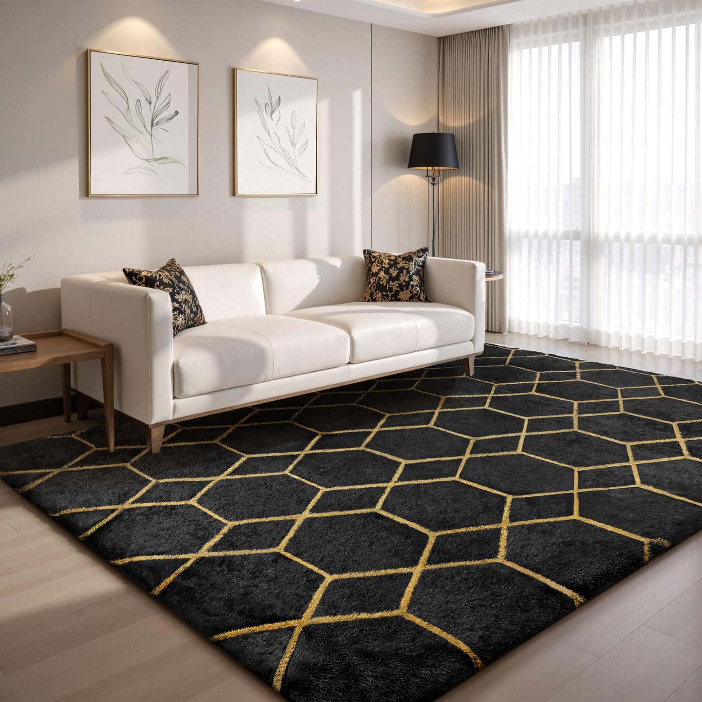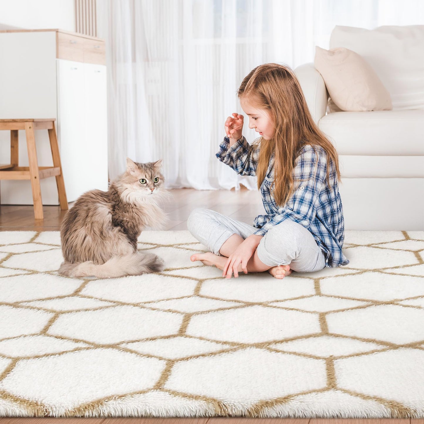 - 【EINZIGARTIGES DESIGN】 – Das sechseckige Muster des Teppichs ist schlicht und großzügig und verleiht ihm Persönlichkeit. Es passt perfekt zu Ihrem Wohn- und Schlafzimmer. Der Schlafzimmerteppich besteht aus besonders weichem Fasermaterial, und der Samt nimmt Staub auf. In der Mitte befindet sich ein hochelastischer Schwamm, der den Fußdruck reduziert und für mehr Weichheit sorgt.