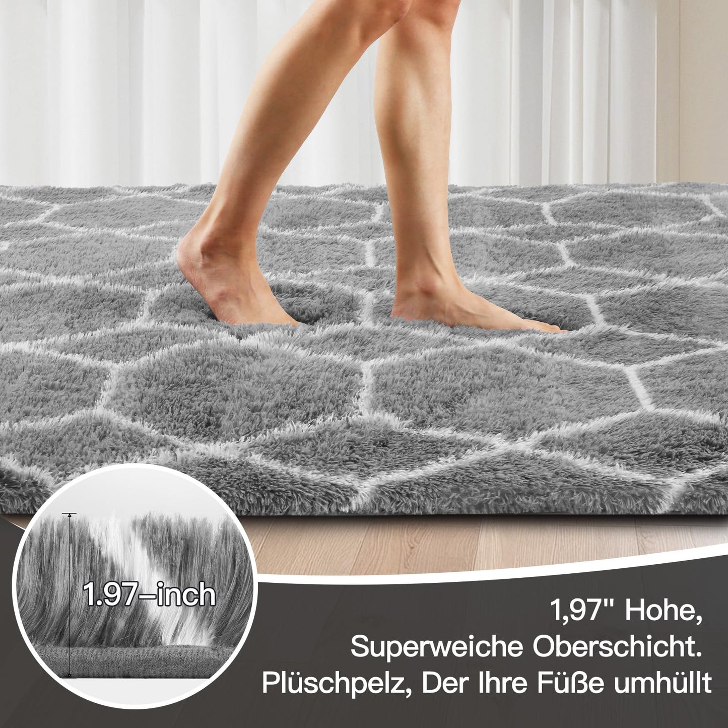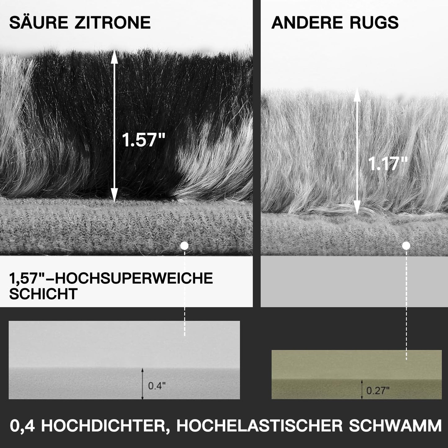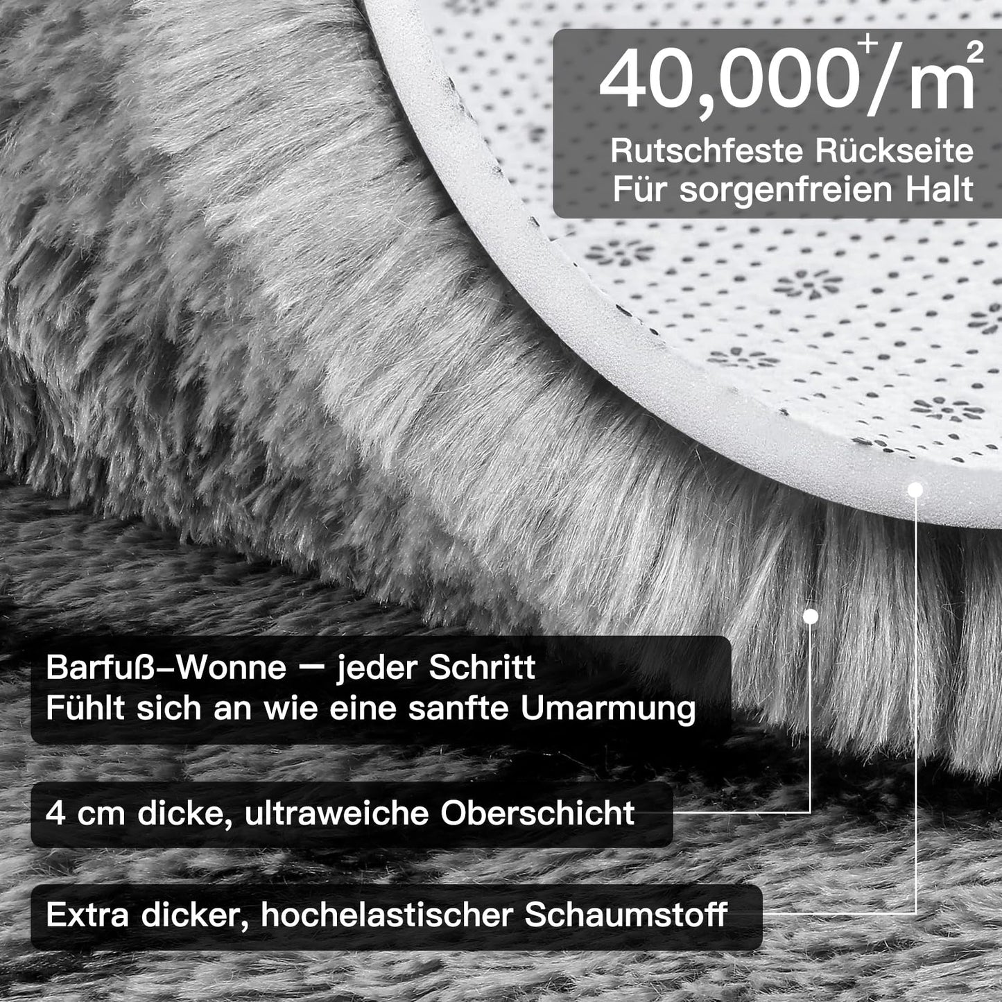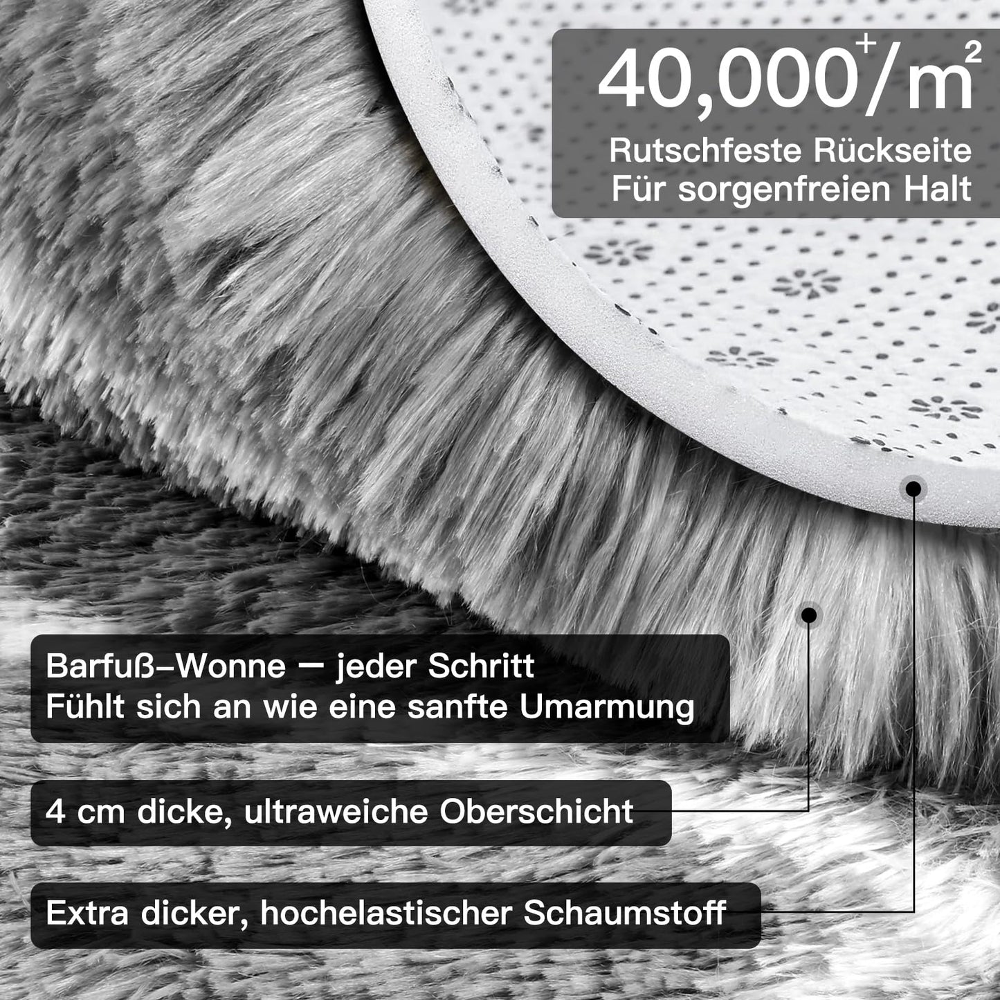 - 【RUTSCHFESTE UNTERSEITE】 – Der flauschige Wohnzimmerteppich ist mit Tausenden von Kunststoffperlenpunkten bedeckt. Diese erhöhen die Reibung zwischen Teppich und Boden und verleihen ihm eine gewisse Rutschfestigkeit. Die Unterseite ist rutschfest und schont den Boden. So bleibt der Teppich an Ort und Stelle.