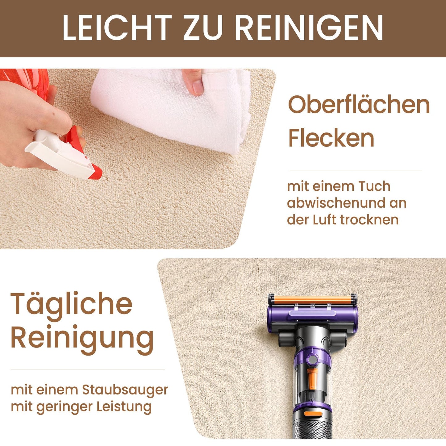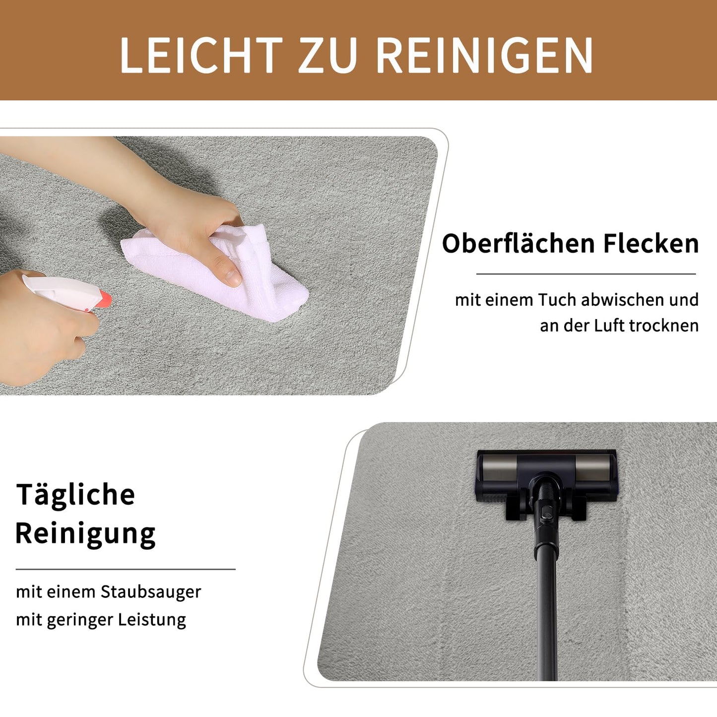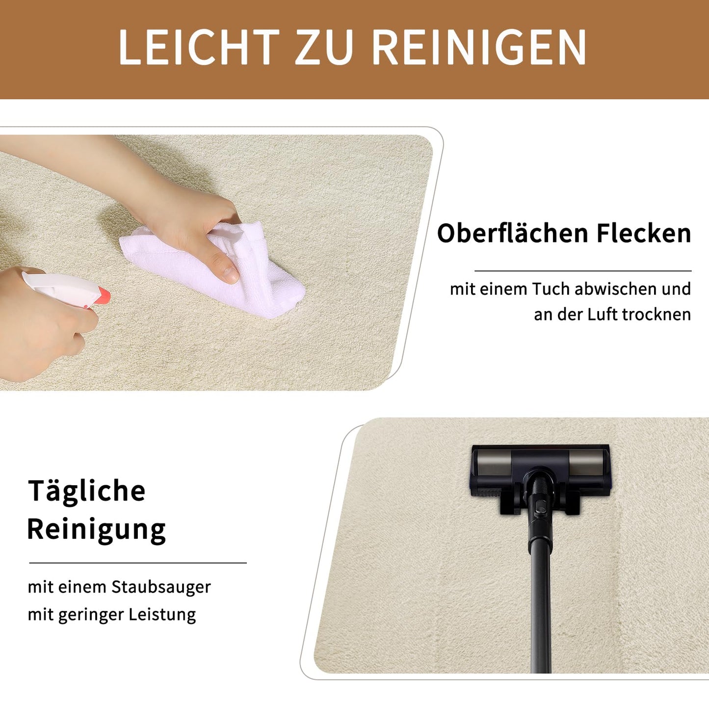 - 【Waschbarer Teppich】 - Staubsaugen Sie einfach täglich mit einem Handstaubsauger. Wenn Sie den Carpet gründlicher reinigen möchten, können Sie etwas Feinwaschmittel hinzufügen und den Bereich der flauschigen Teppiche vorsichtig mit den Händen waschen. Wählen Sie dann einen gut belüfteten Ort, legen Sie den Teppich aus oder hängen Sie ihn zum Trocknen auf. Bitte nicht in der Sonne ausstellen.