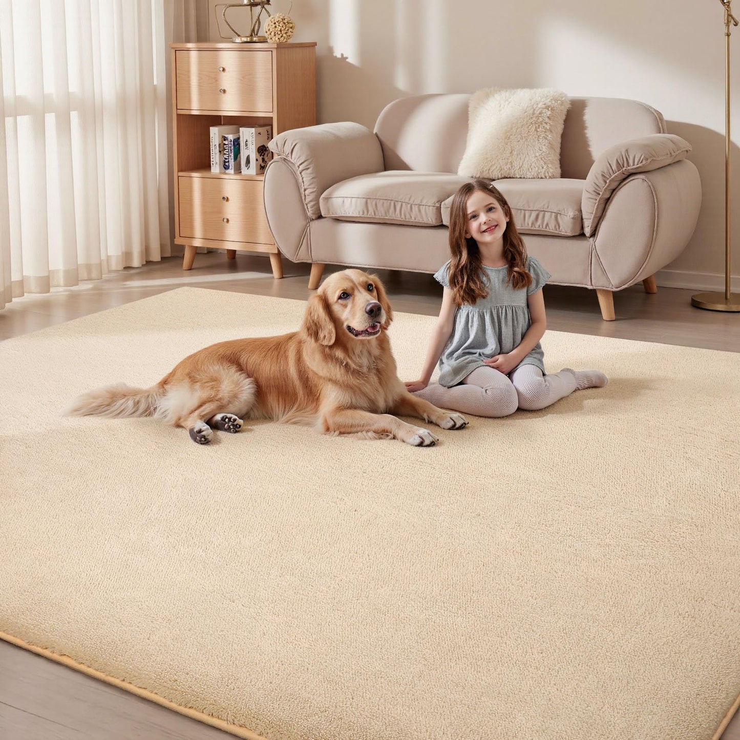 - 【Super Weiches Gefühl】- Die großen Teppich Schlafzimmer für Wohnzimmer besteht aus Fasermaterial, super weiches Gefühl. Der Schwamm mit hoher Belastbarkeit kann den Druck auf Ihre Füße reduzieren und die Weichheit verbessern. Sie können frei darauf liegen, um sich zu entspannen oder Spiele mit der Familie zu spielen.