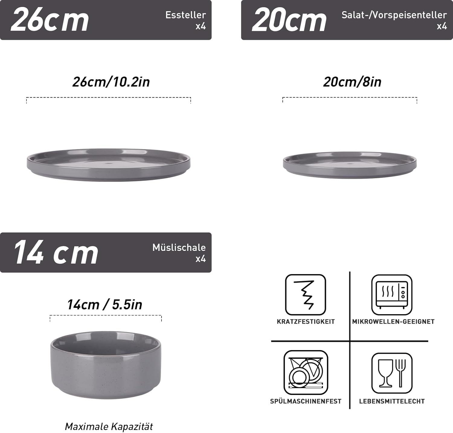 - [Scratch-resistant]: Our tableware set is made of high-quality ceramic and is fired at 2340°F for 13.5 hours to create a scratch-resistant surface. This preserves beauty and functionality for years