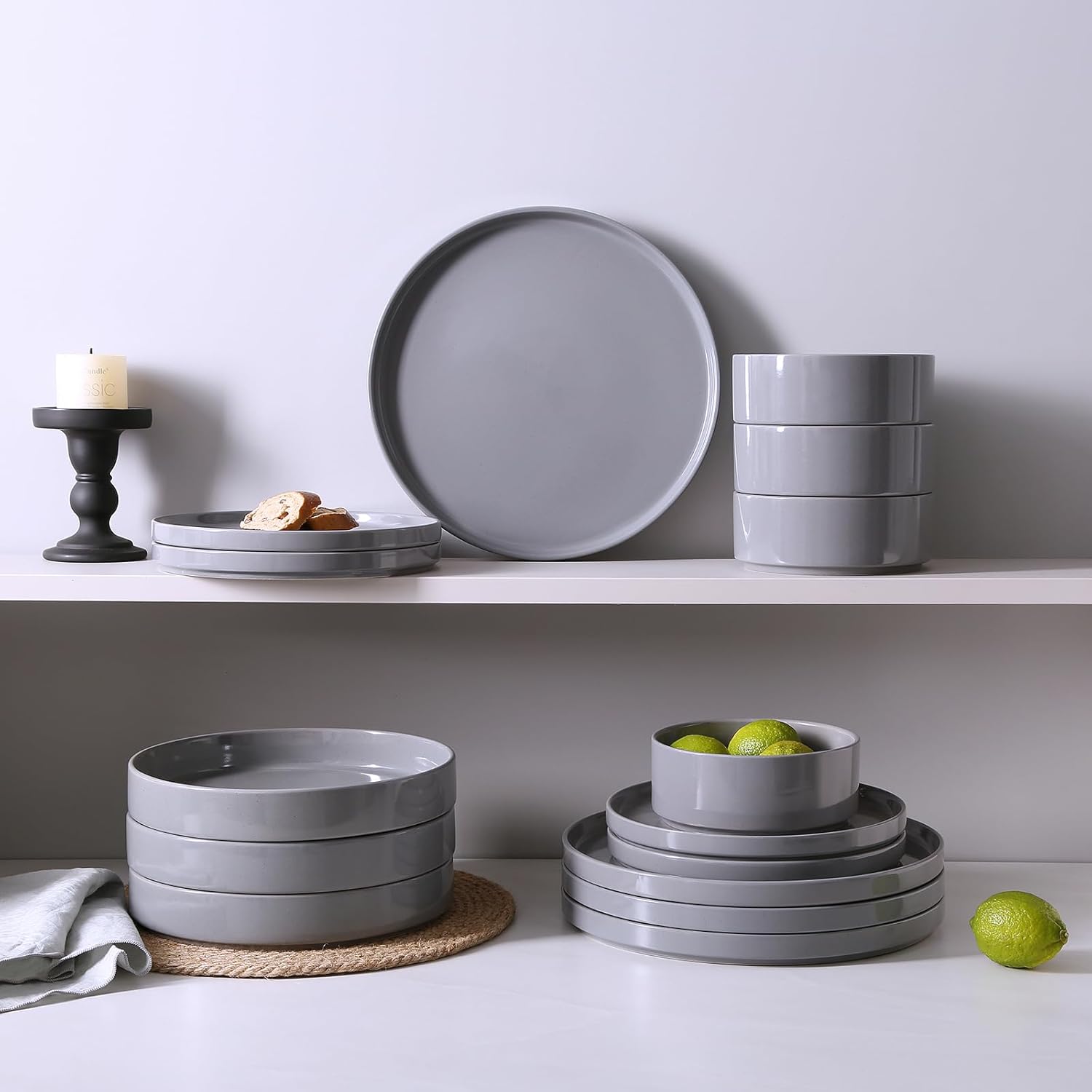 - Tableware set for 6 people: includes 6 x 25 cm dinner plates, 6 x 20 cm salad/appetizer plates, 6 x (14 cm/680 ml) cereal bowls. This dinnerware set is the perfect size to serve a variety of dishes, and a great addition to your kitchen accessories