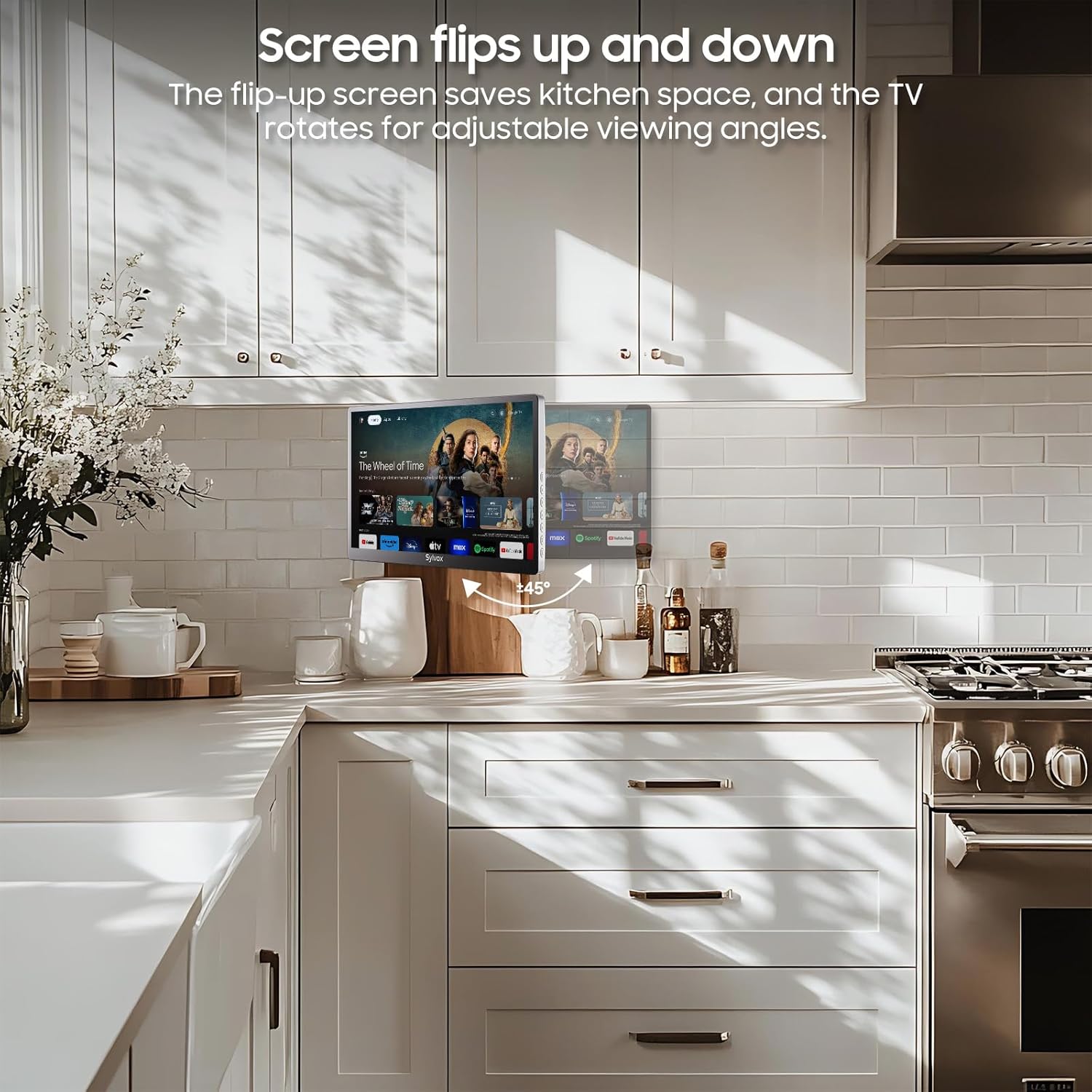 - 【High Quality Picture and Sound】: This smart kitchen TV is equipped with a 1080P display and built-in speakers, providing a clear visual experience and immersive sound. This guarantees a pleasant viewing experience when preparing meals or entertaining.