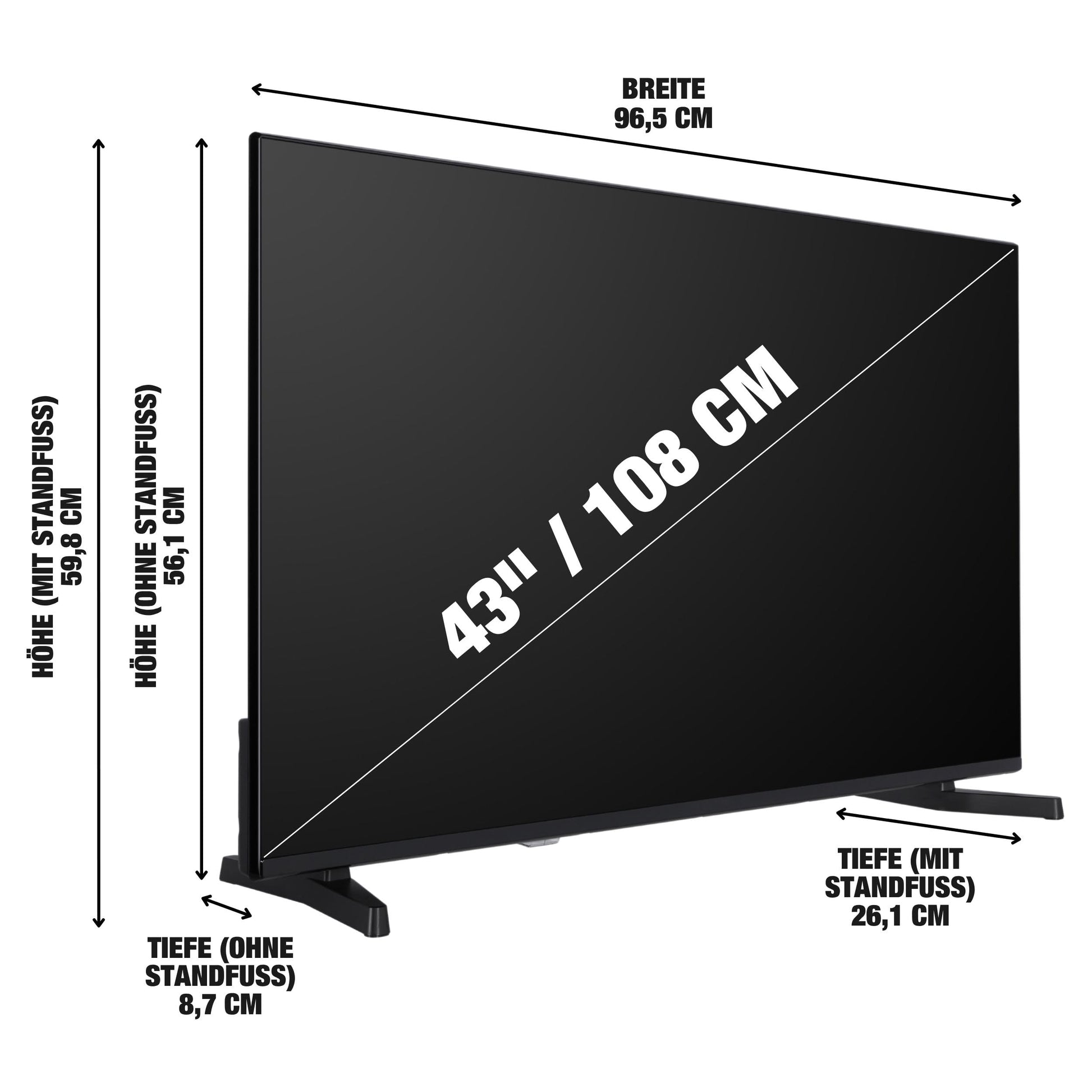- More than just a TV – the flat screen has a screen diagonal of 108 cm (43 inches). The integrated triple tuner allows you to receive programs via antenna (DVB-T2), cable (DVB-C) or satellite (DVB-S2) without additional receiver