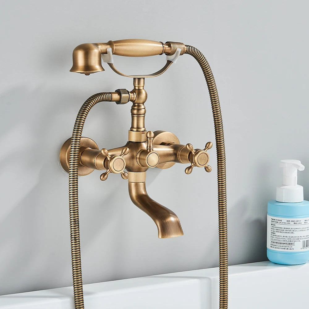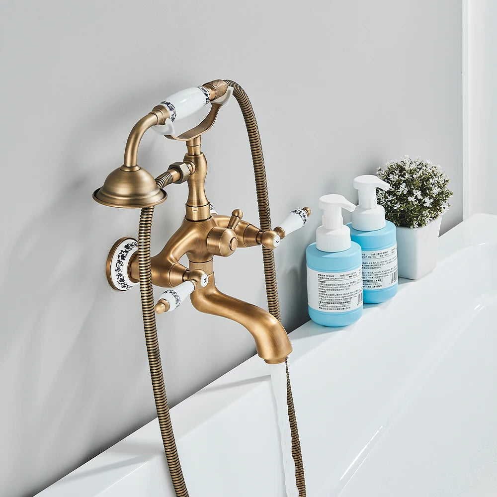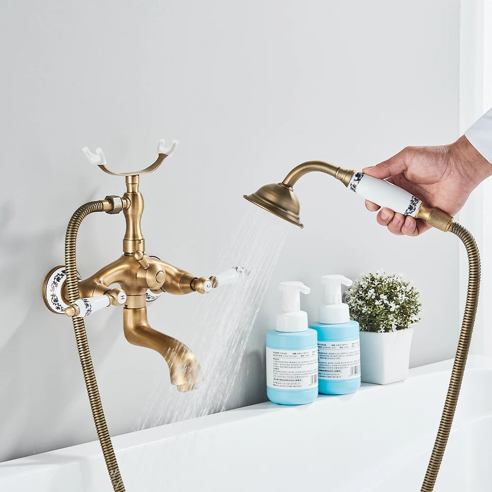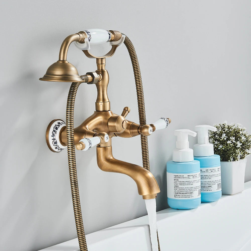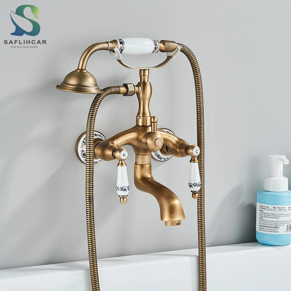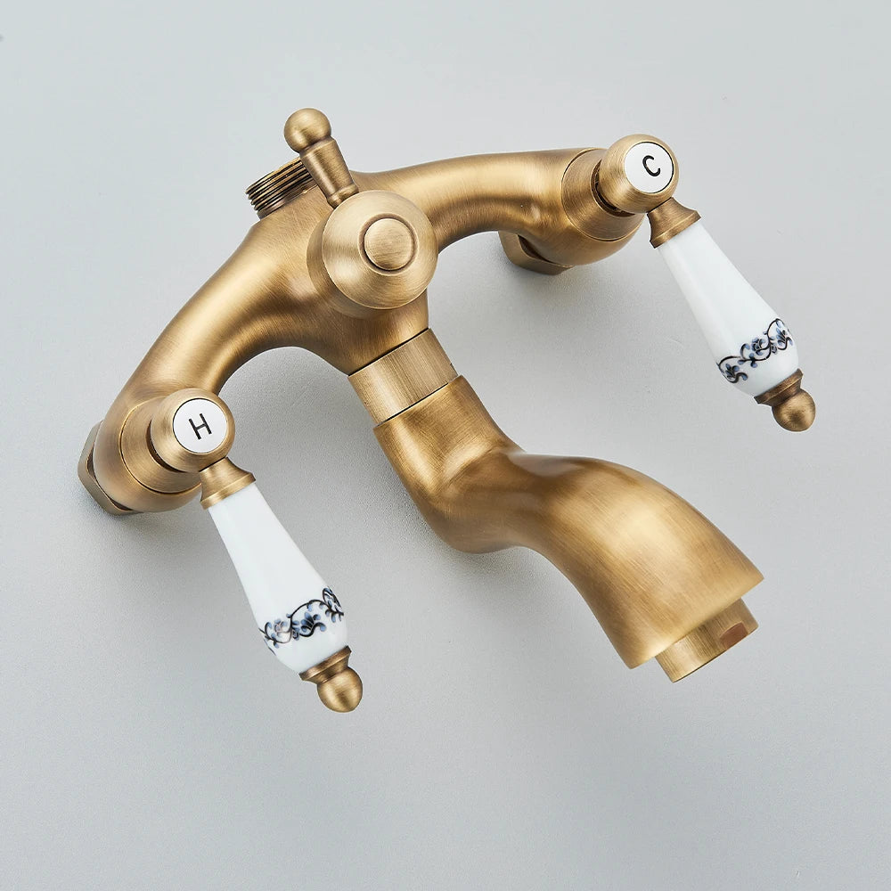 Telephone Style Antique Brass Waterfall Bathtub Faucet Bathroom Brass Bath Faucets Waterfall Rotatb Spout Hot&Cold Mixer Tap