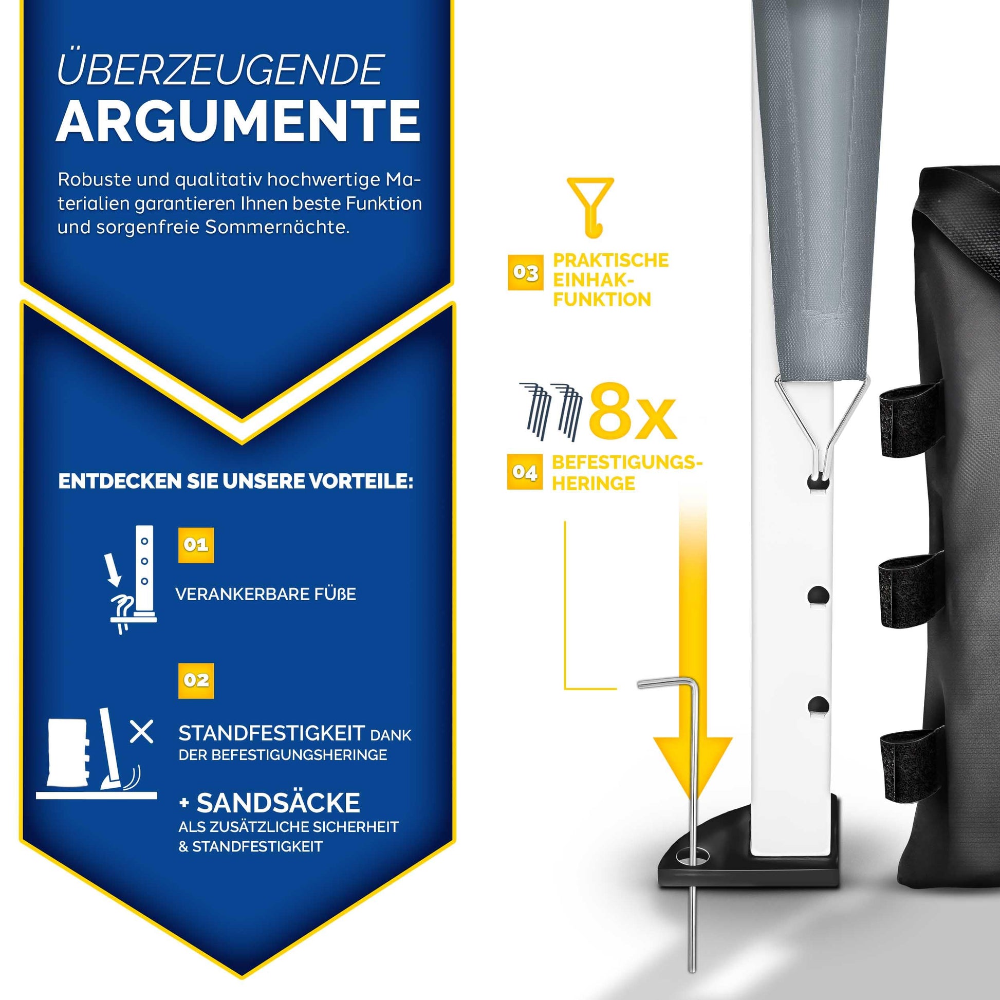 - Many applications: ideal gazebo for use as sun protection, for the terrace, balcony, pool, garden, camping, event, flea market or on your next trip.