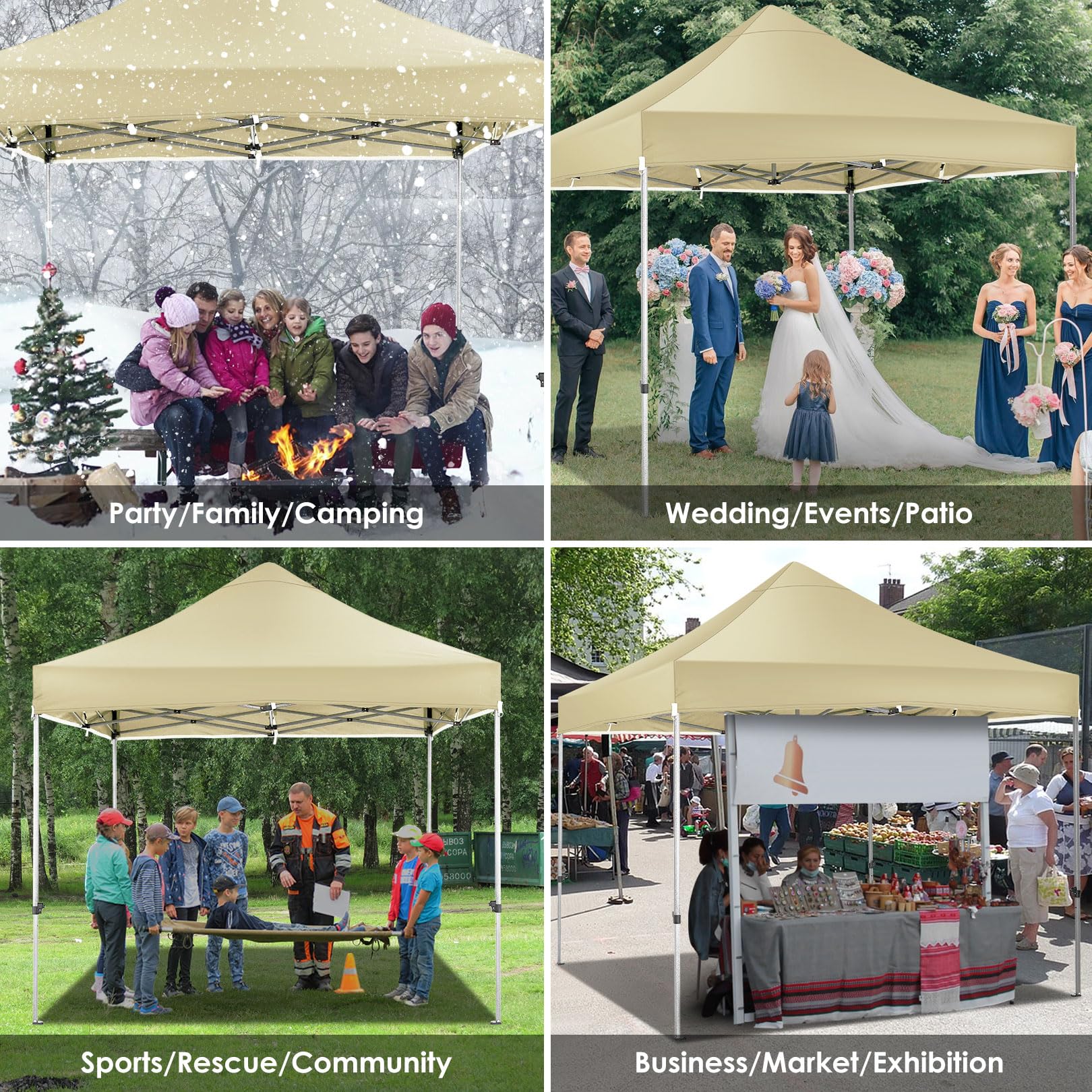 - Easy setup, 3 height positions: 1–2 people can set it up quickly in a short time, no tools required. The gazebo can be set to 3 heights, adjustable between 310, 319 to 328 cm, suitable for different usage scenarios, you can adjust your canopy according to your wishes. This commercial canopy is suitable for as outdoor events, camping, sports, weddings, picnics, barbecues and different commercial purposes.