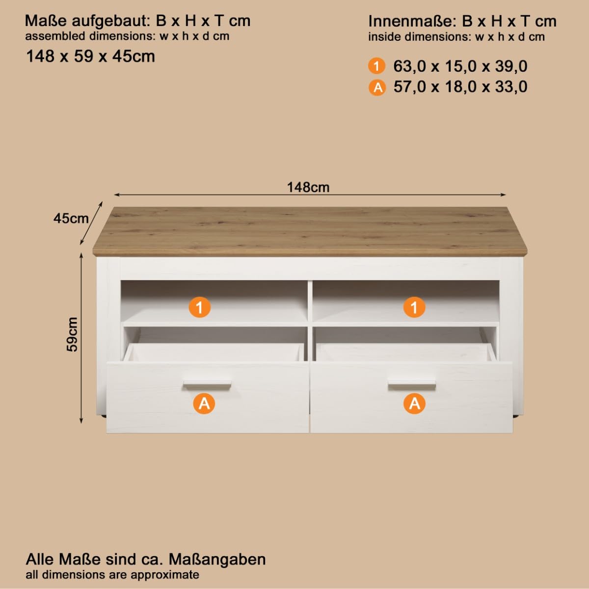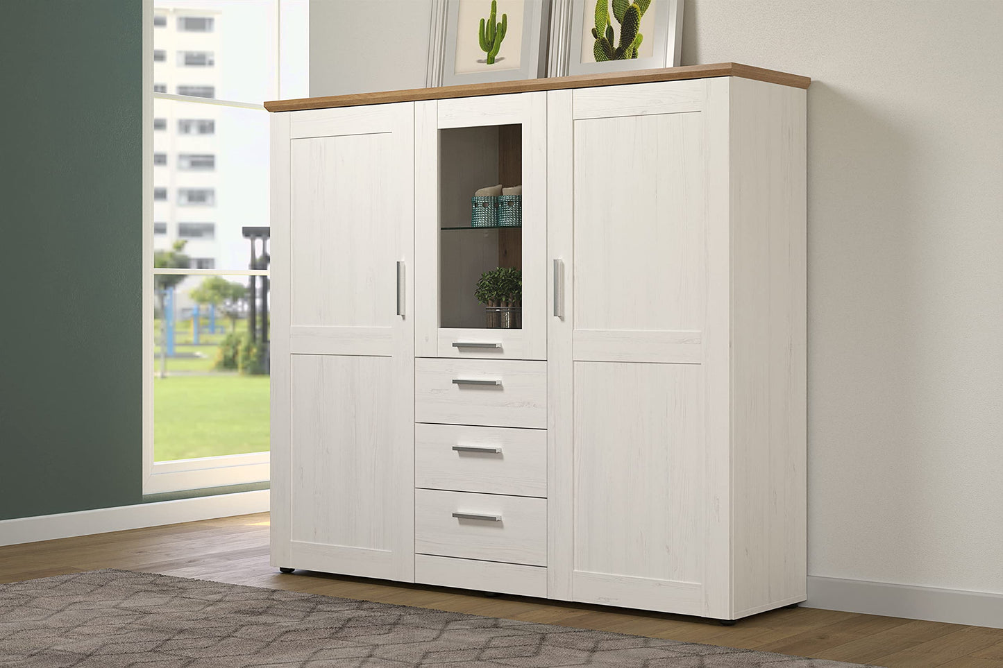 - Beschreibung - Shade Wohnen kombiniert klassische Eleganz mit einer ansprechenden Farbgebung aus Weiß und Braun, die Wärme und Ruhe in jeden Raum bringt. Mit praktischen Stauraumlösungen bietet es viel Platz für eine ordentliche und stilvolle Aufbewahrung von Alltagsgegenständen. Das klassische Design, schafft eine zeitlose Atmosphäre und passt sich mühelos verschiedenen Einrichtungsstilen an