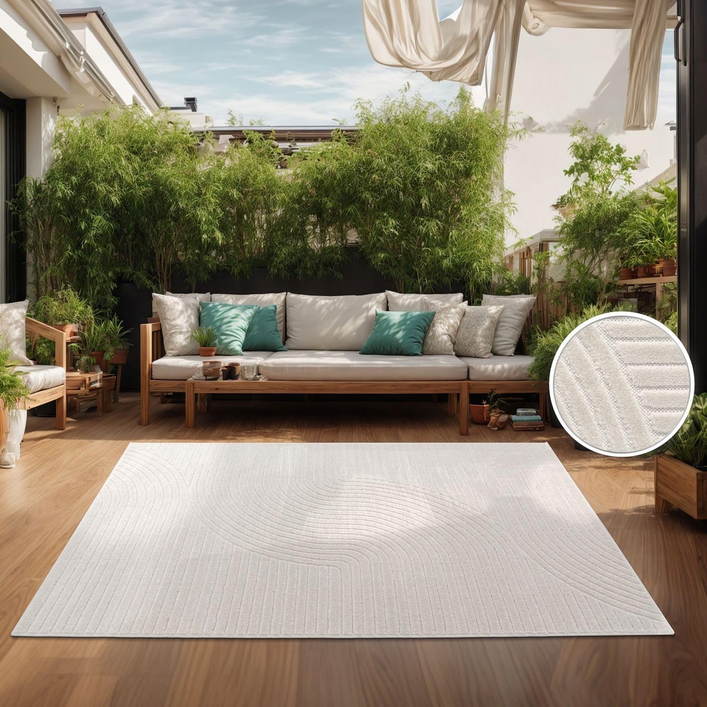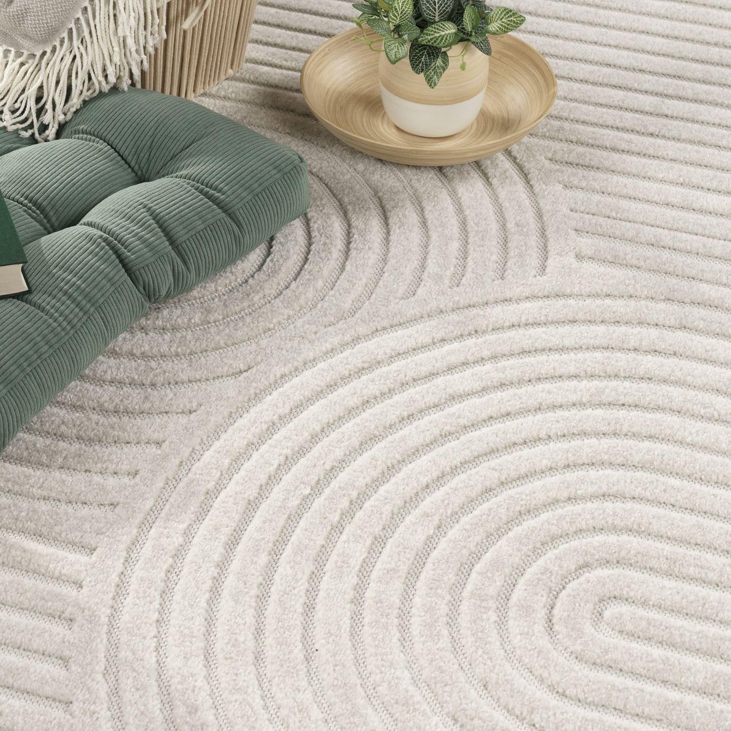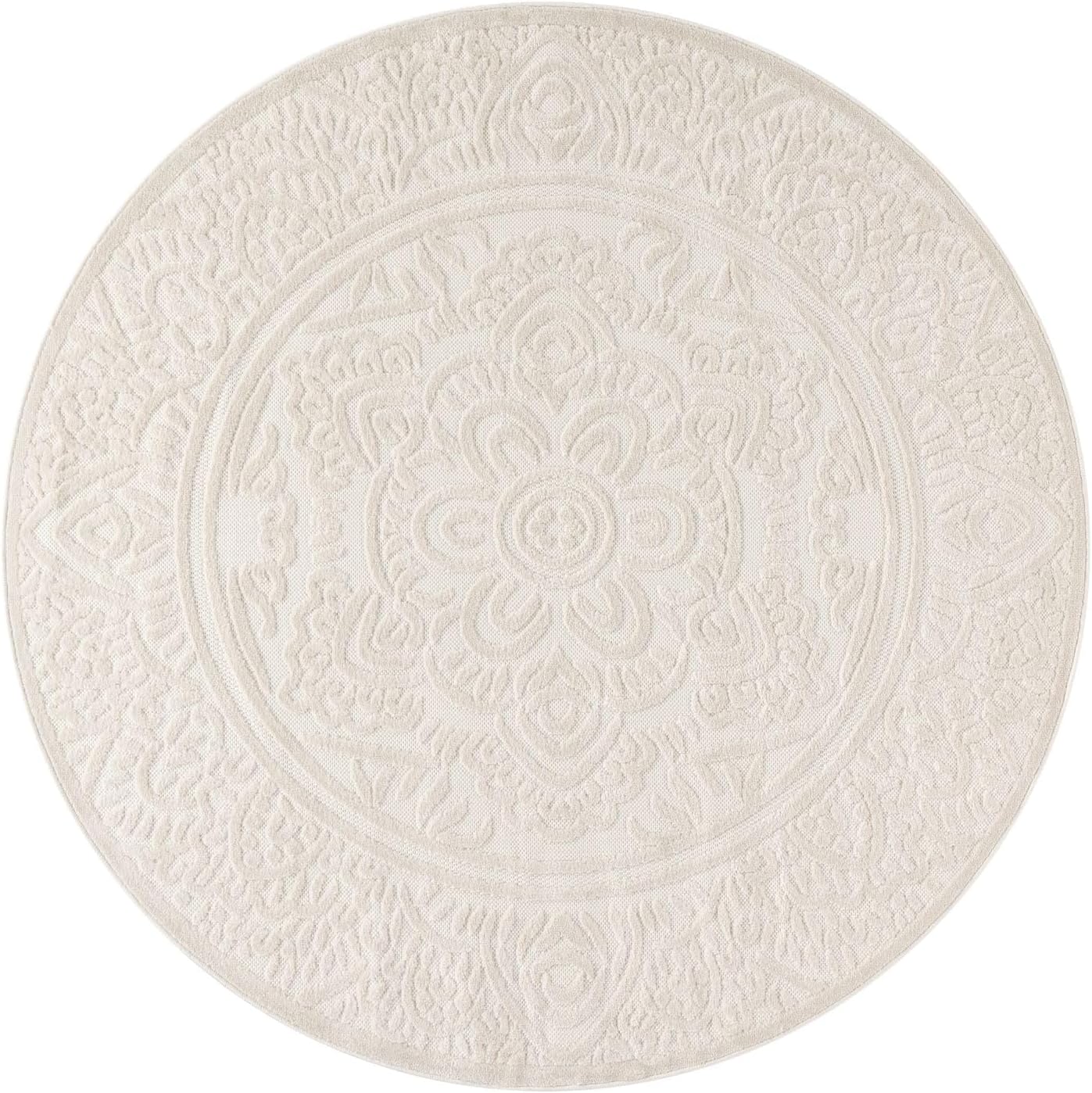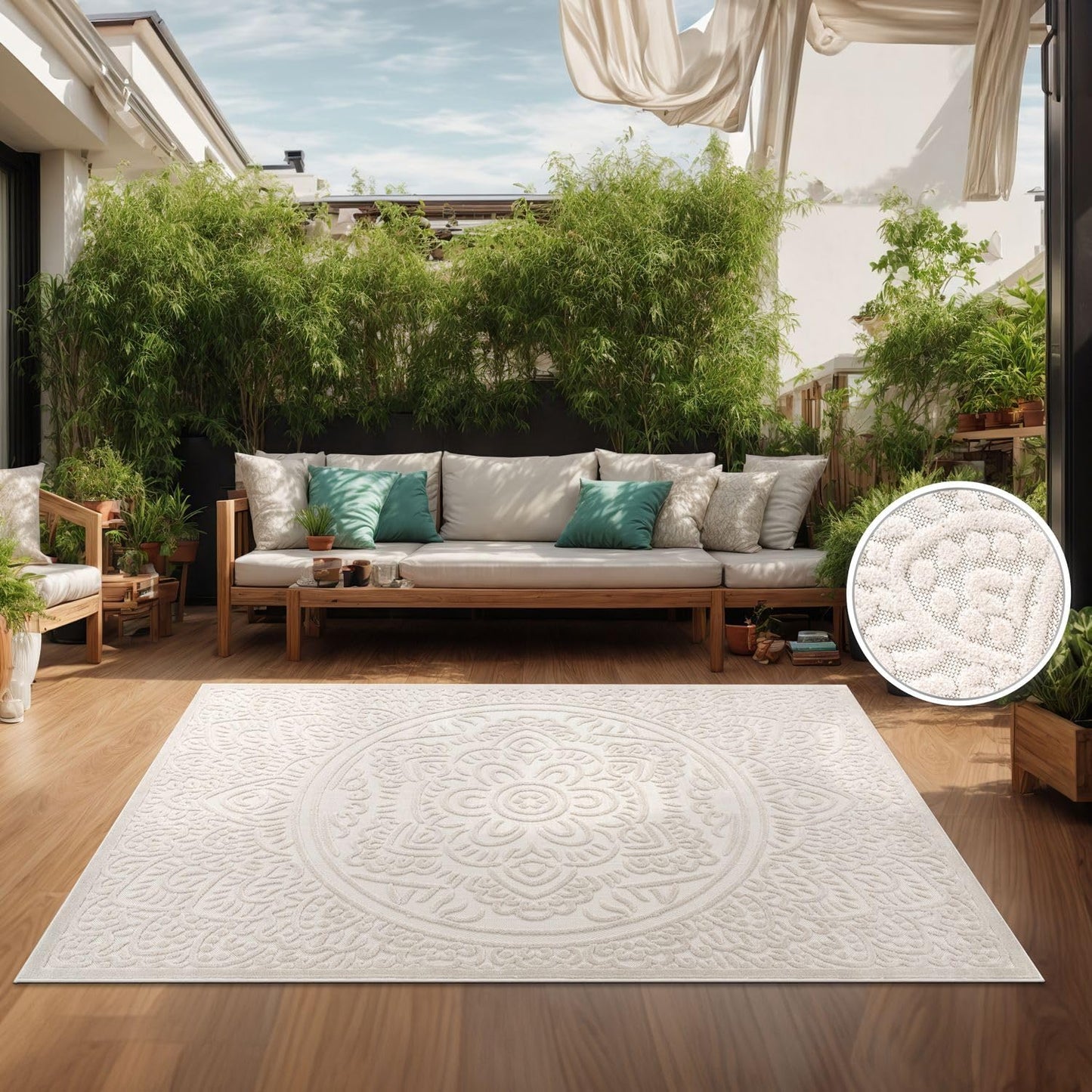 TT Home Indoor and Outdoor Rug Weatherproof Balcony Bedroom Boho Skandi Motif Plain Colours Colour: Cream 3, Size: 60 x 100 cm