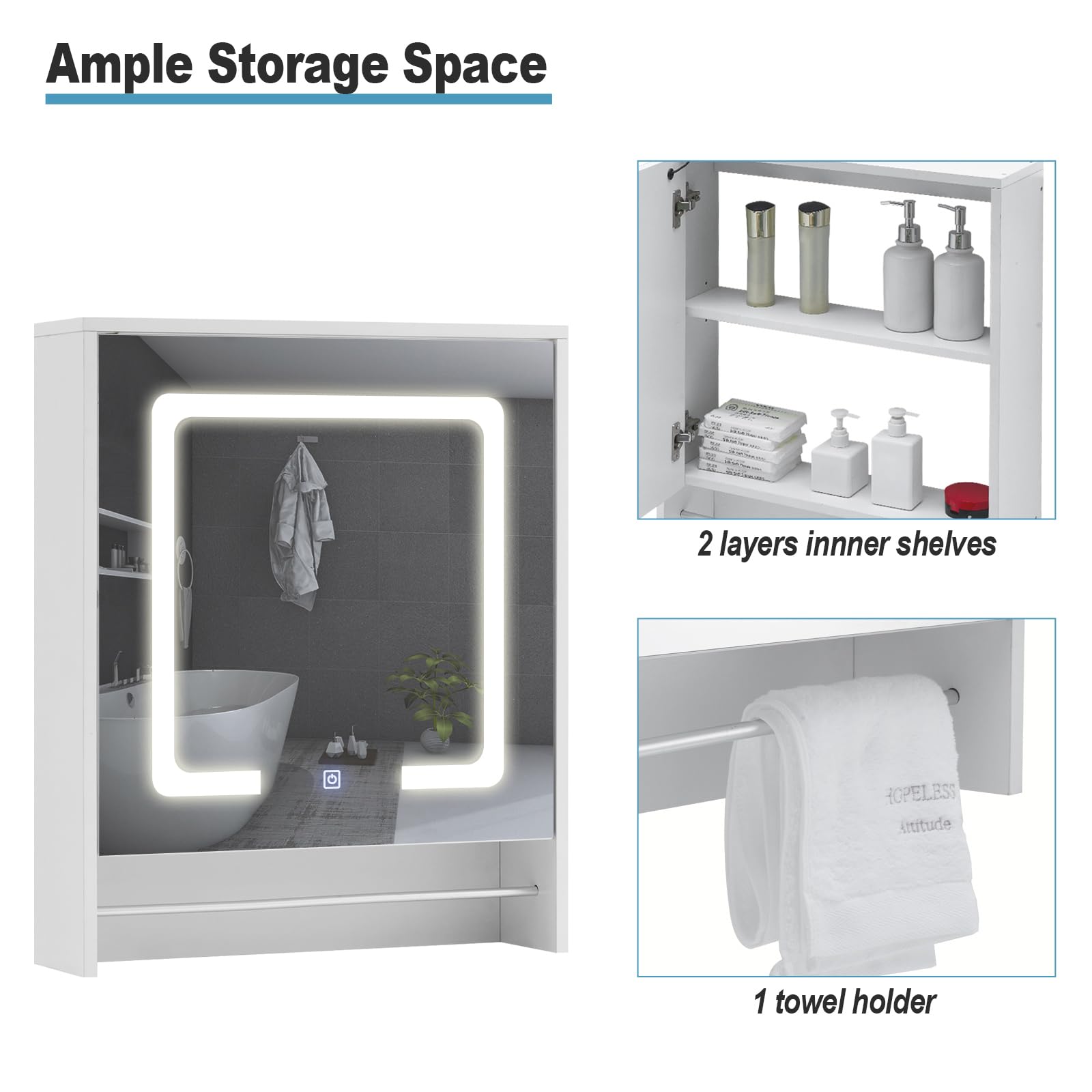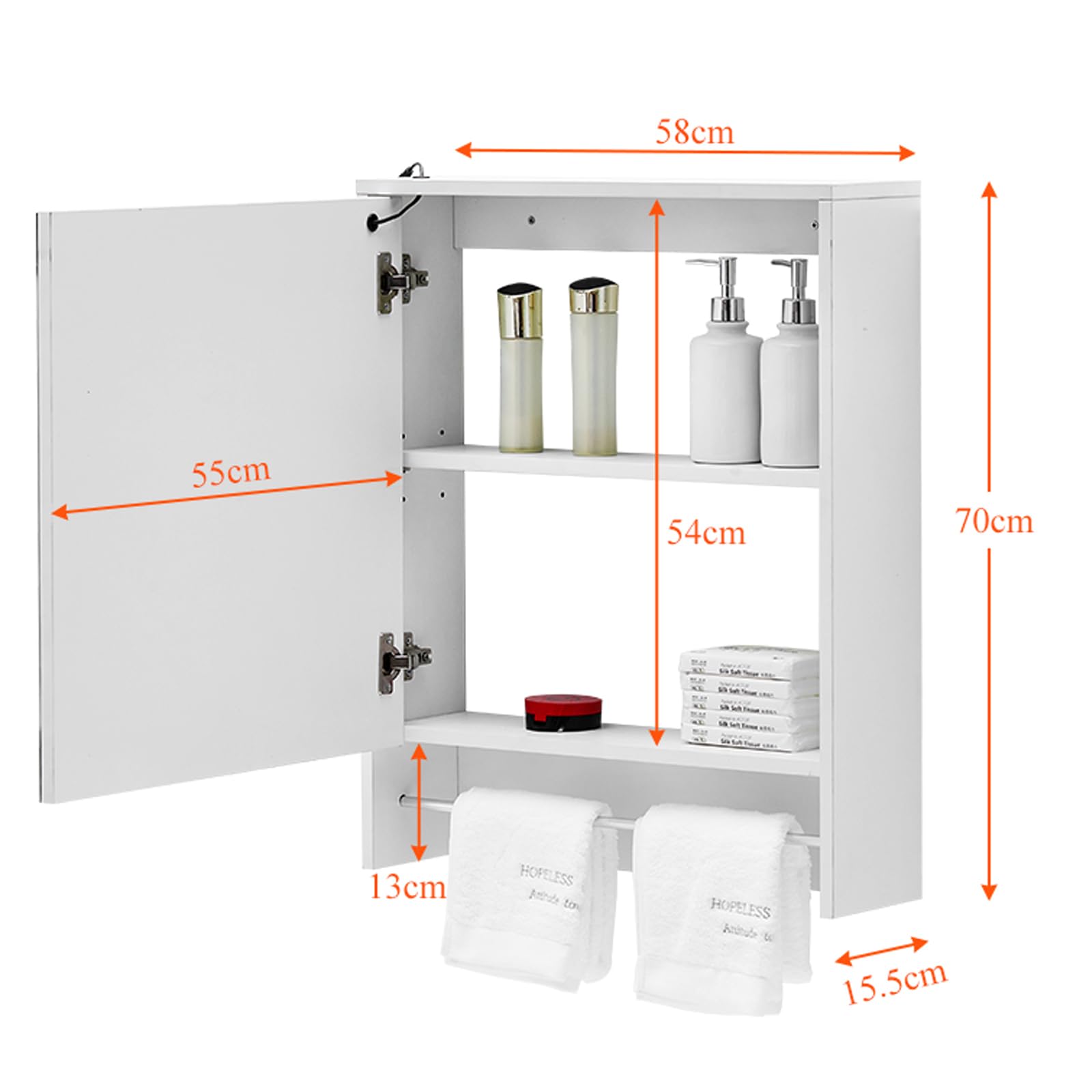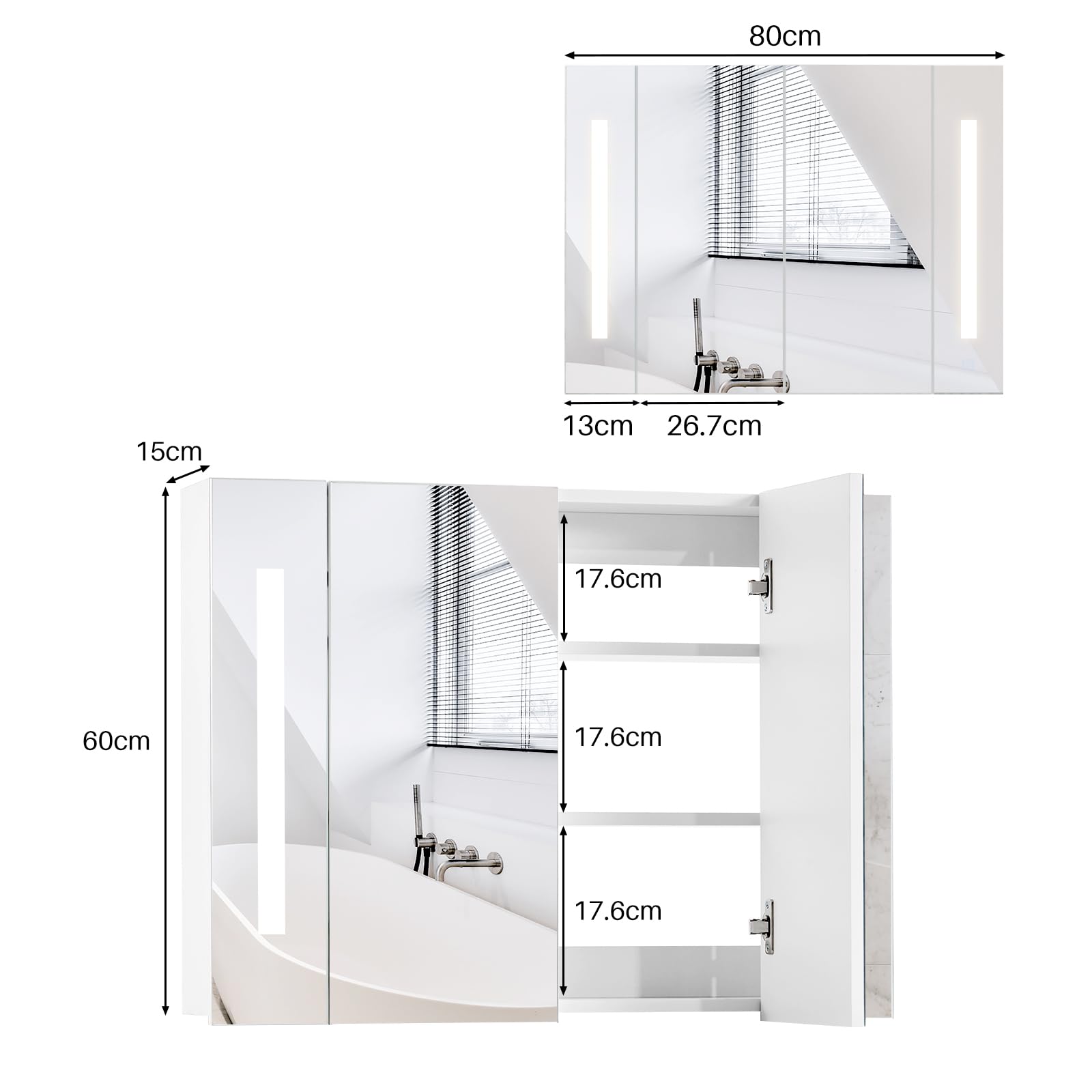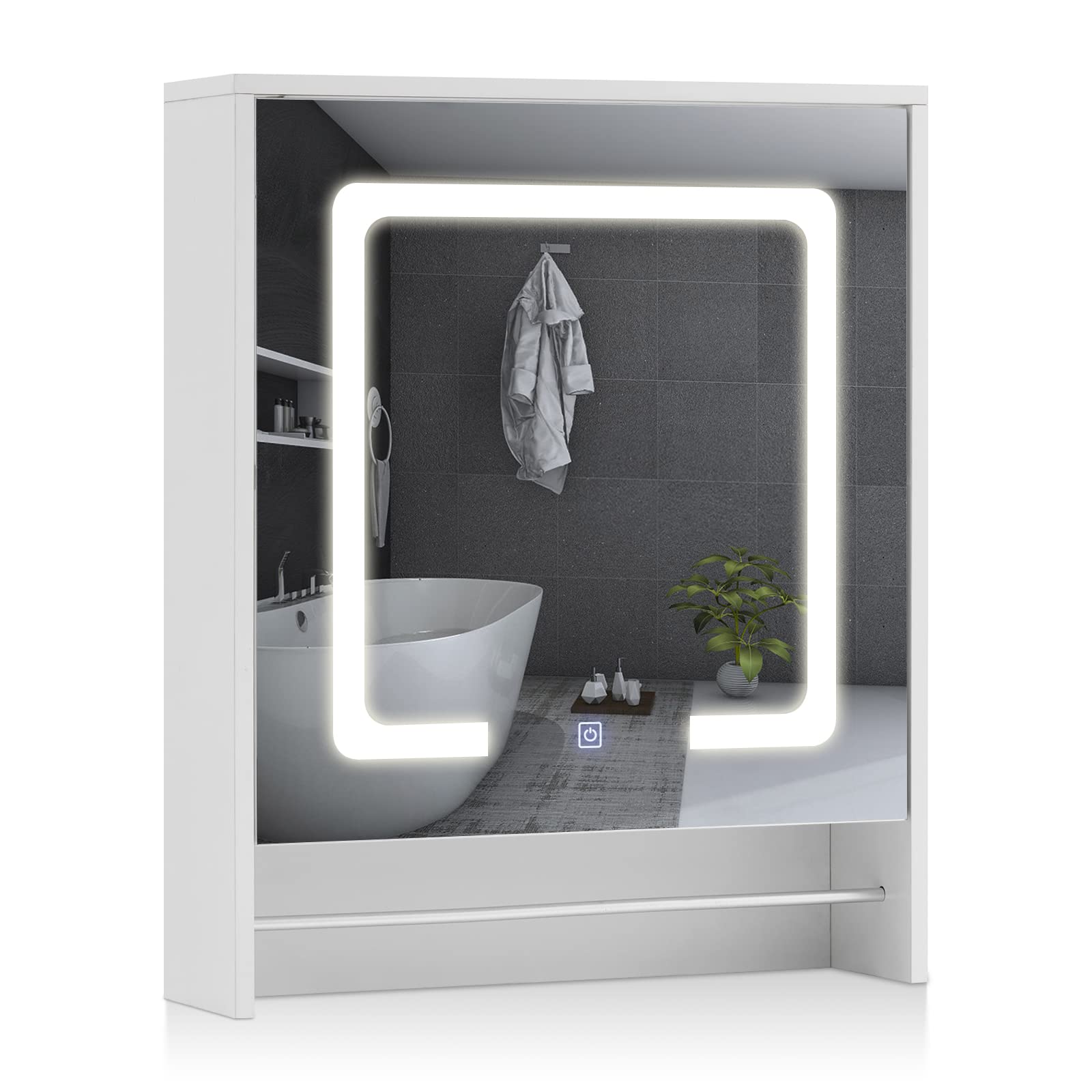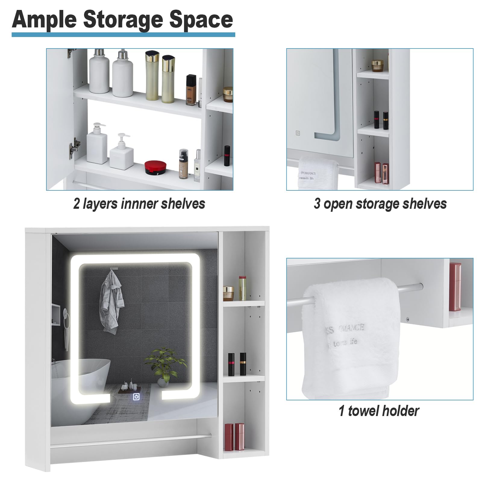 TUKAILAI Mirror Cabinet with LED Lighting, 6 Open Shelves and Adjustable Shelves, Bathroom Mirror with Touch Switch, Bathroom Mirror, Light Mirror, Wall Mirror, Bathroom Cabinet for Bathroom