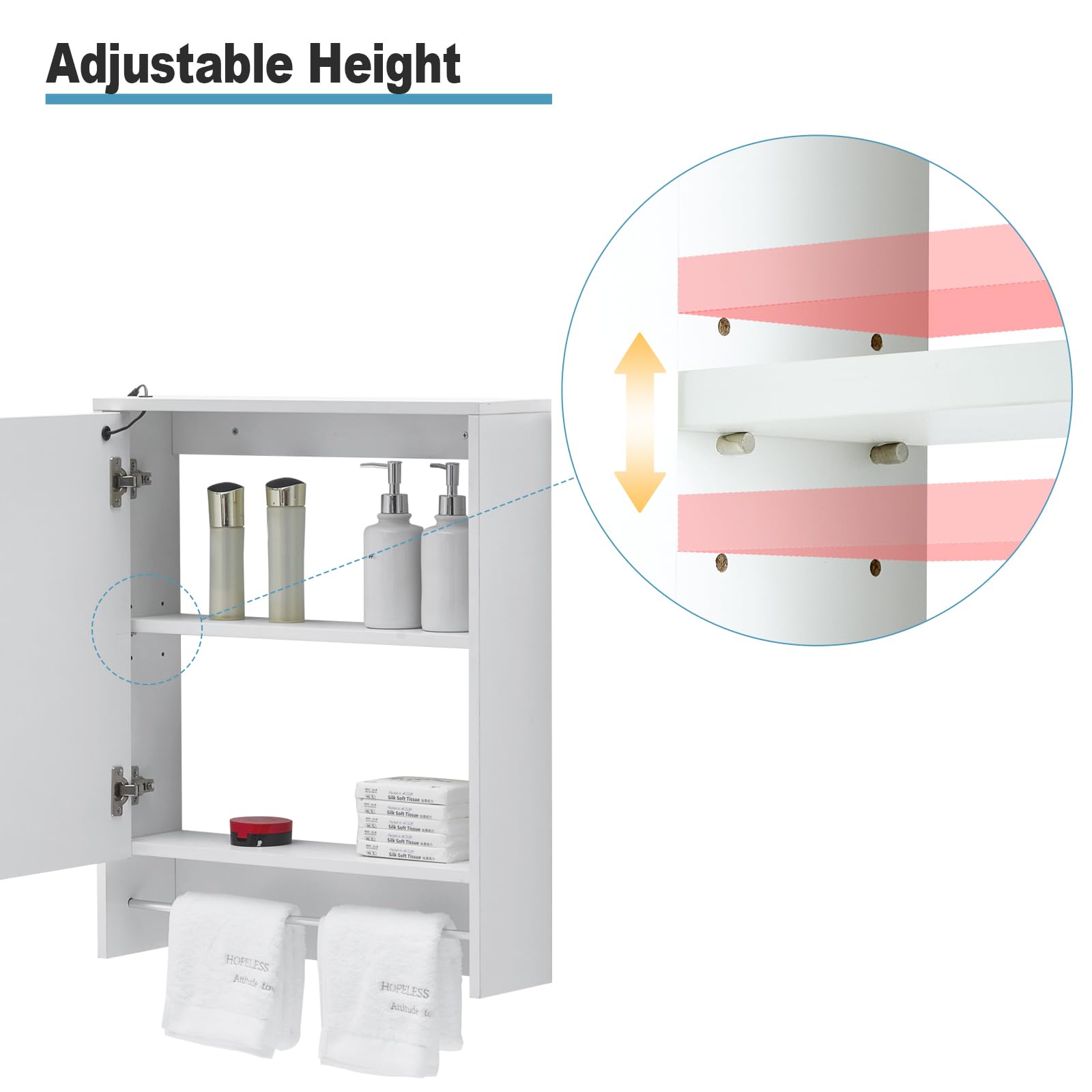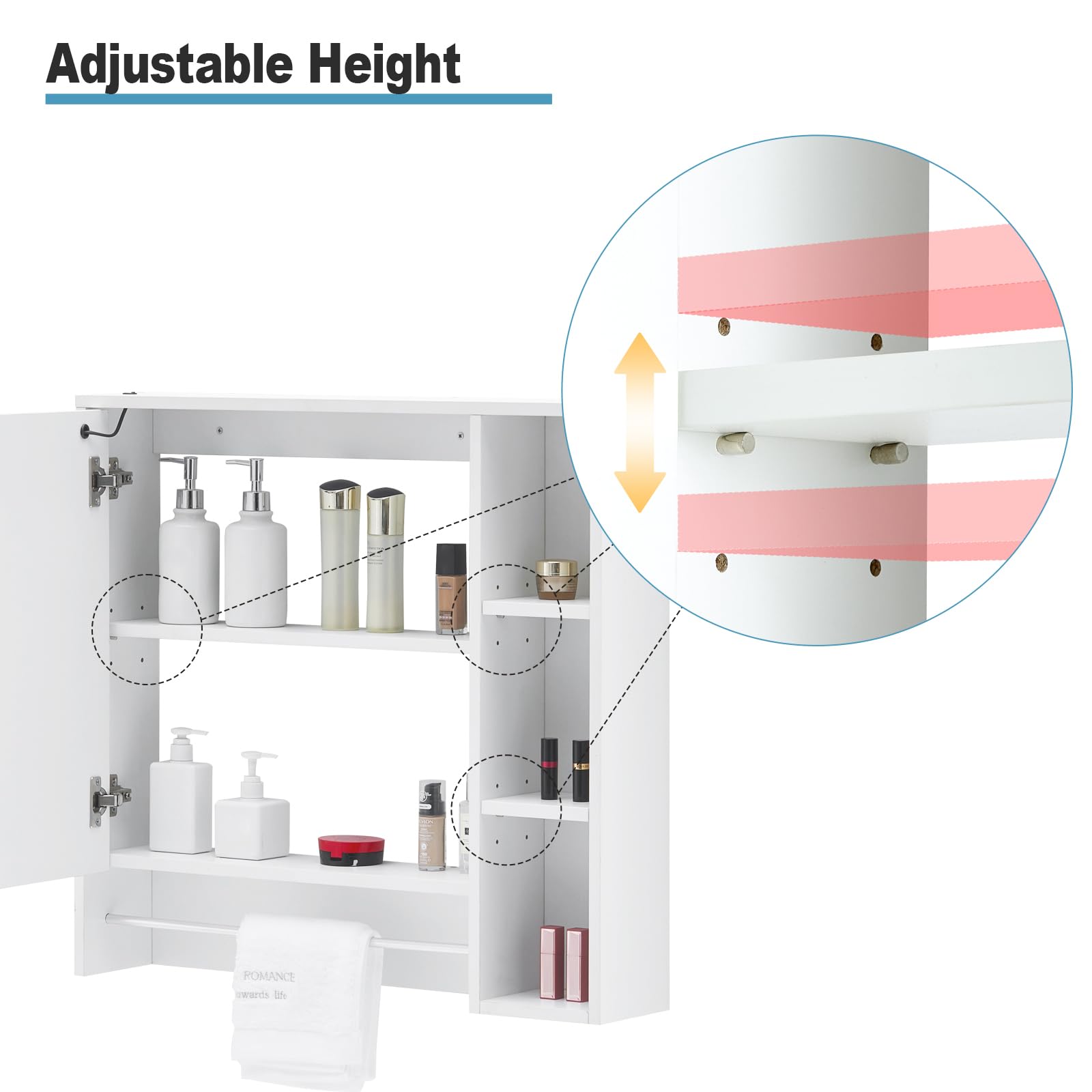 - Badezimmerschrank mit Verstellbare Ablagen: Das interne Regal kann auf drei verschiedene Ebenen eingestellt werden, was flexibel ist, um verschiedene Bade- und Körperpflegebehältergrößen zu speichern. Einfacher, um die Lagerbedürfnisse zu erfüllen.