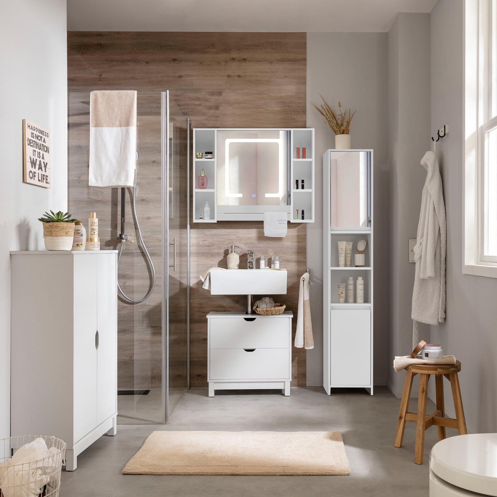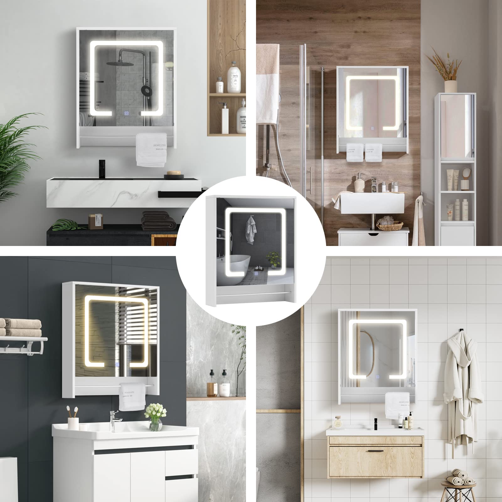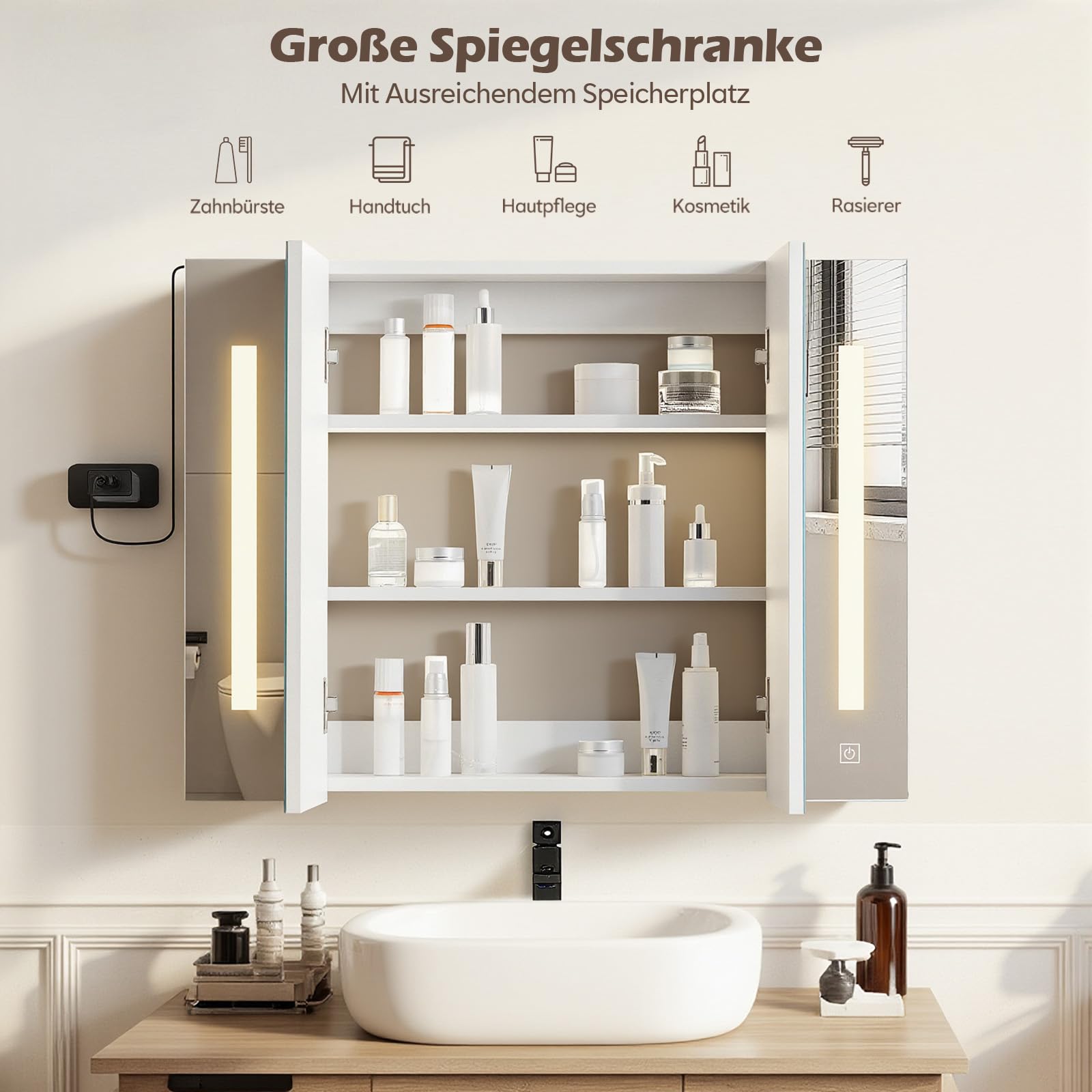 - Spiegelschrank mit Beleuchtung: Exquisiter Badezimmerschrank mit einstellbarer LED-Beleuchtung und drei Farben, die frei eingestellt werden können. Gleichzeitig kann die Helligkeit des Lichts nach Ihren Bedürfnissen eingestellt werden, so dass Sie beim Auftragen von Make-up klarer aussehen. Bitte beachten Sie, dass dieser Badspiegelschrank mit einem USB-Anschluss ausgestattet ist und eine eigene Vorbereitung des Steckers erfordert.