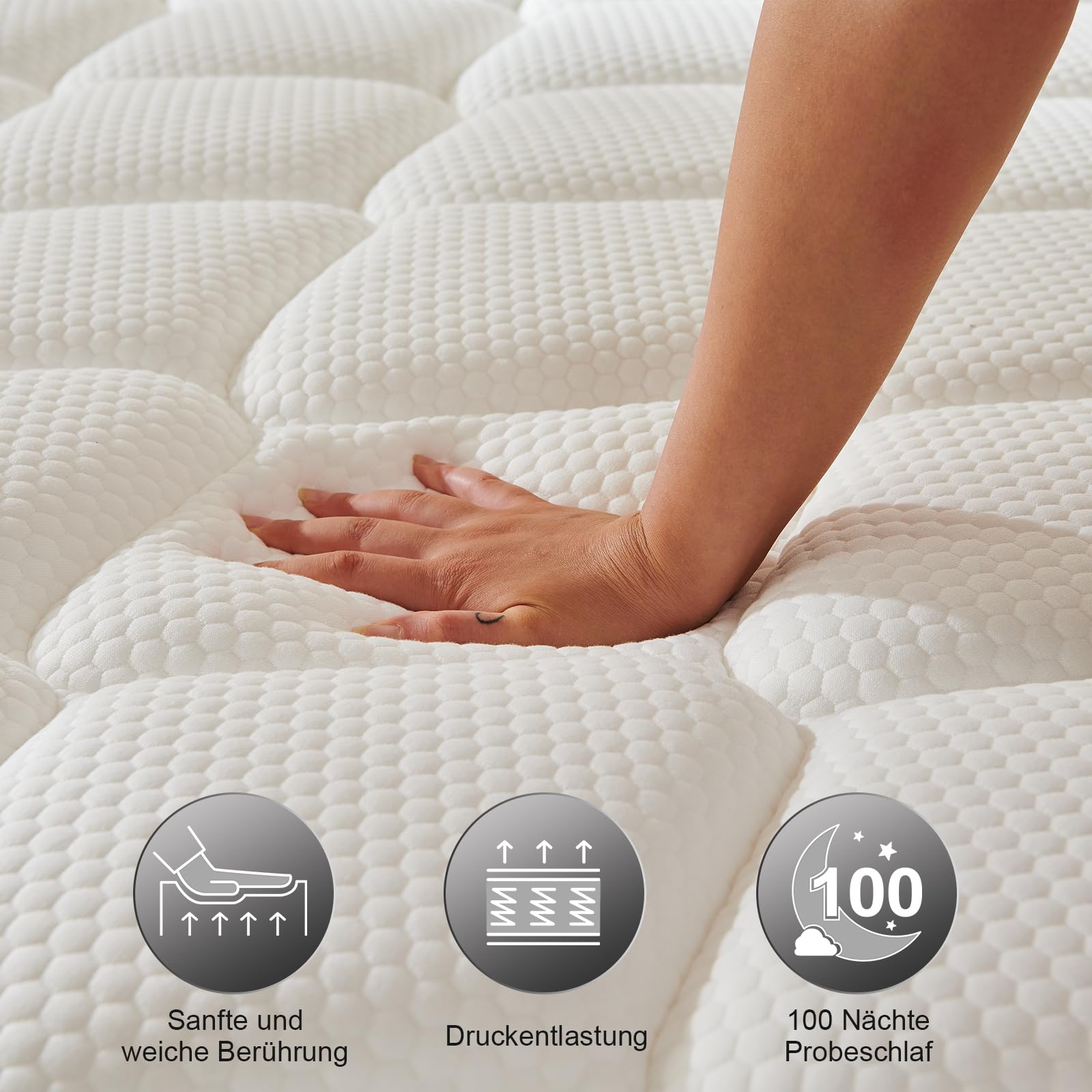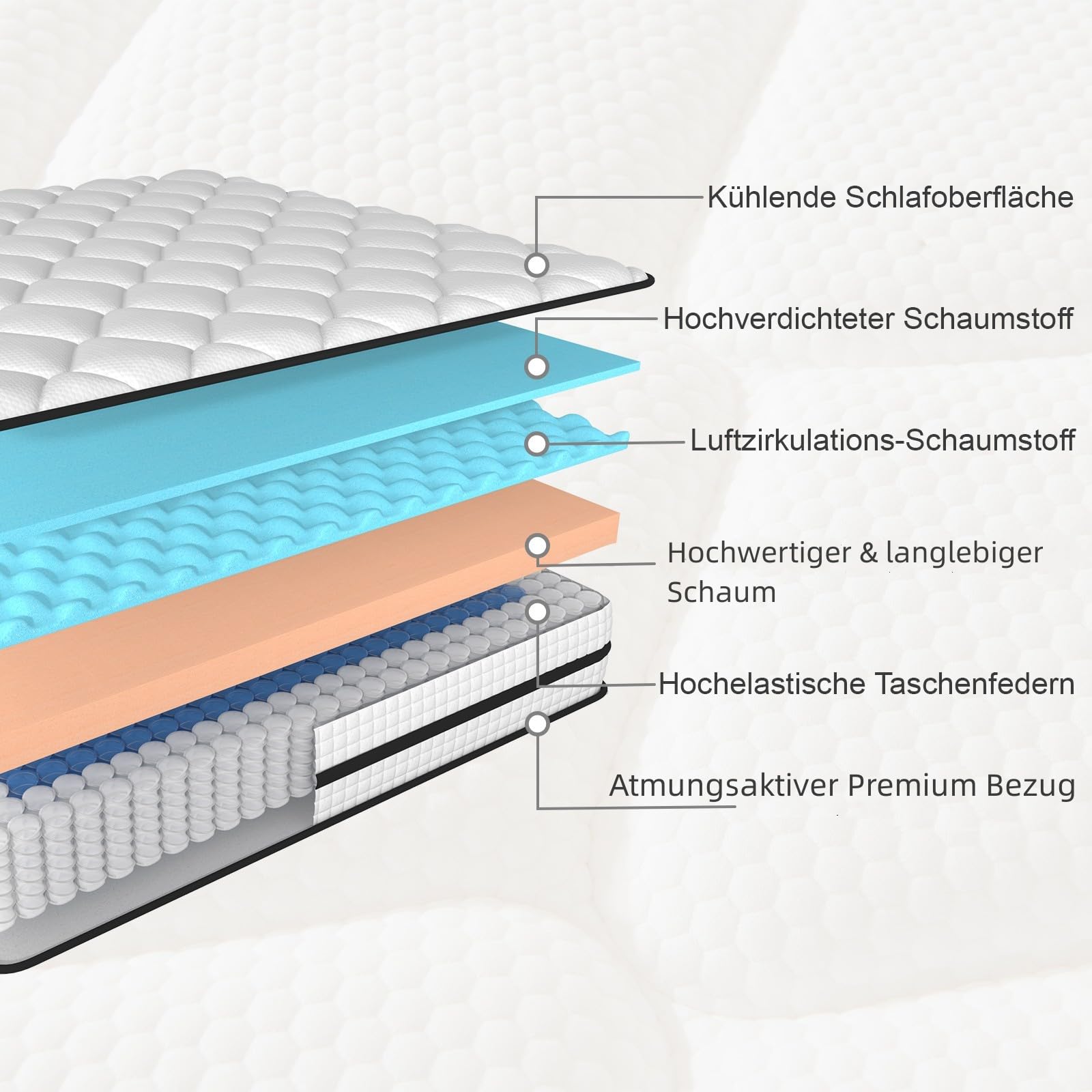 - HOCHWERTIGE MATERIALIEN: Wir verwenden hochwertige Taschenfedern. Jede Feder funktioniert unabhängig, wodurch nicht nur die Luft in der Matratze zirkuliert, sondern auch das Körpergewicht intelligent verteilt und eine ausgewogene Unterstützung geboten wird