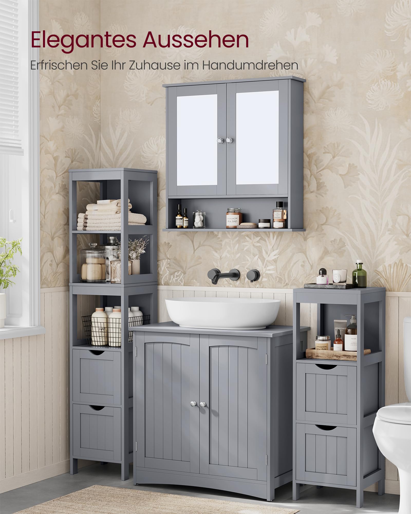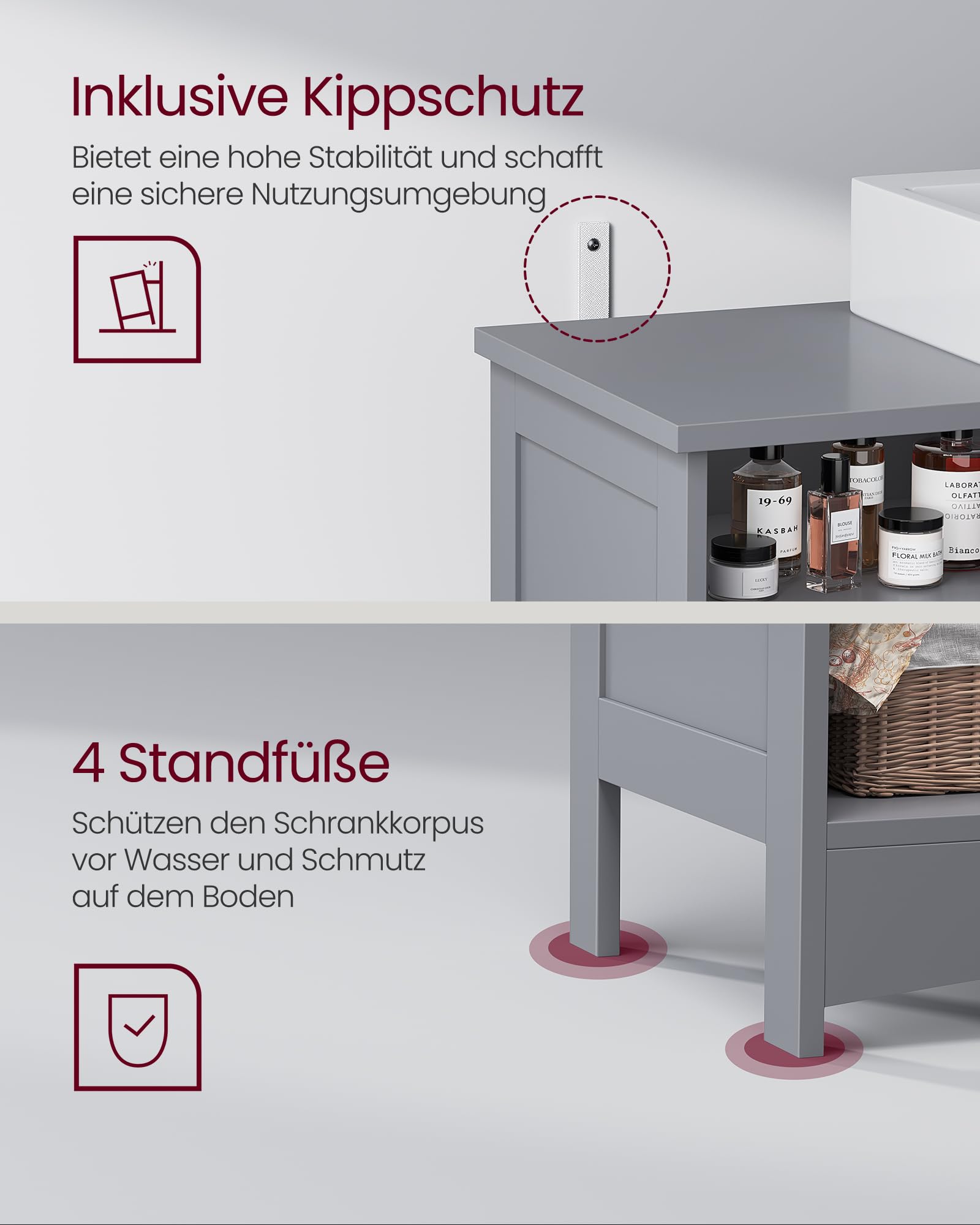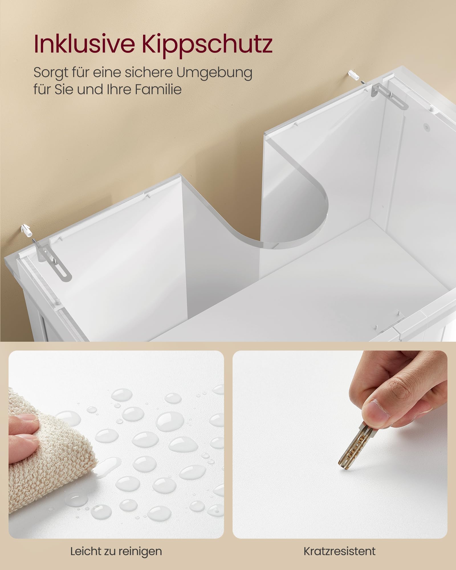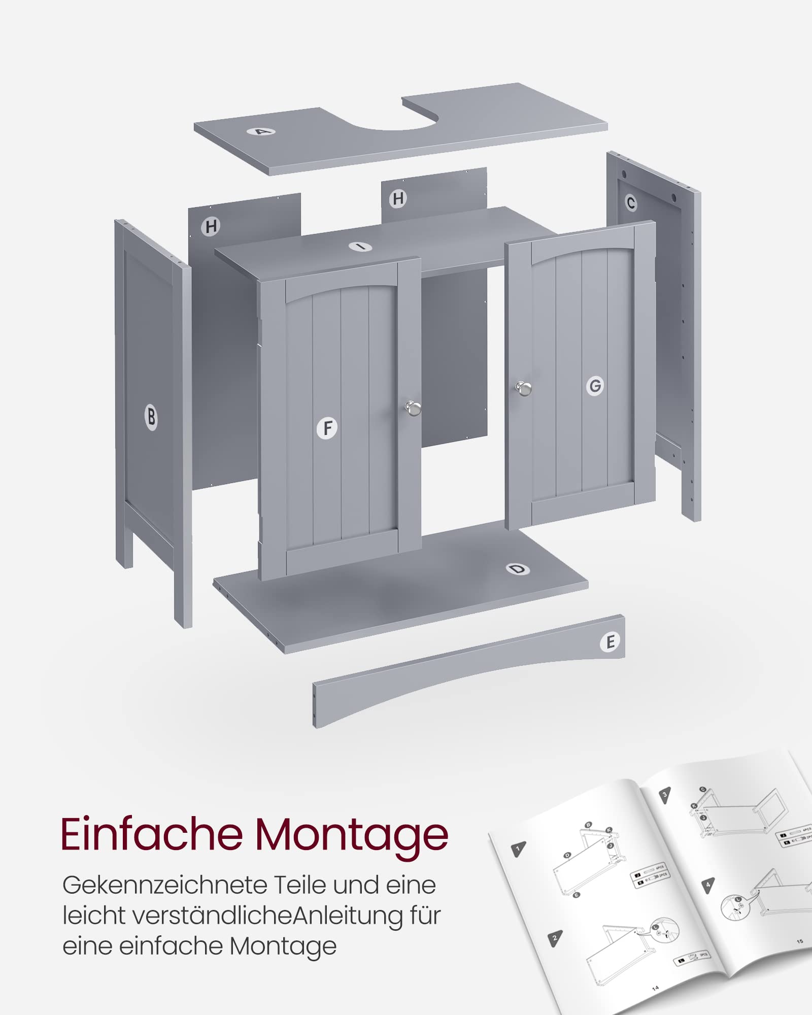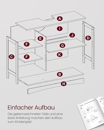 - [Small aids during assembly work wonders] We provide you with understandable, illustrated instructions (English language not guaranteed) and clearly marked individual parts to facilitate the assembly of this bathroom cabinet