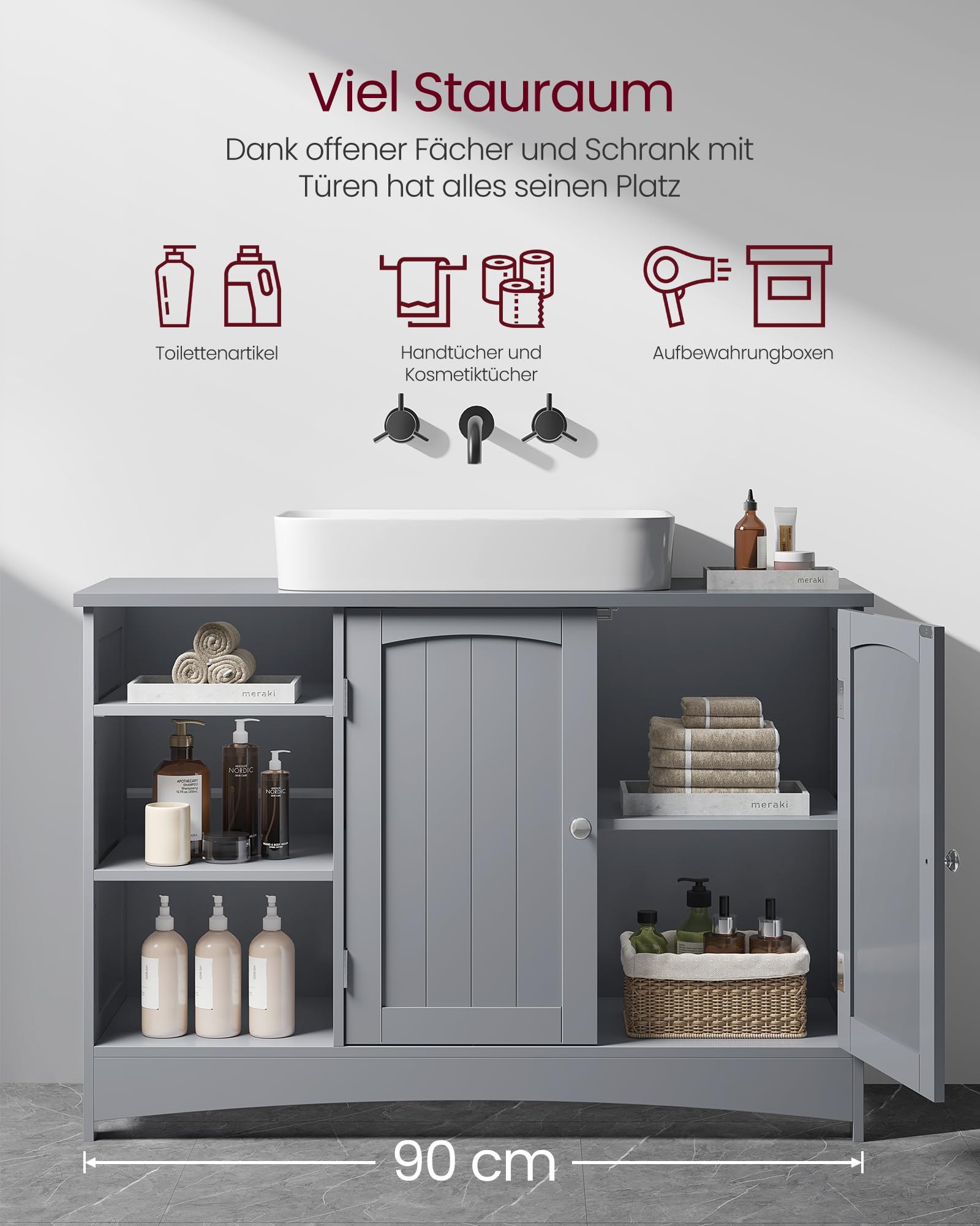 VASAGLE BBC410P31 Vanity Unit Extra Long 30 x 90 x 60 cm 2 Doors Bathroom Cabinet Open Compartments Height Adjustable Shelves White