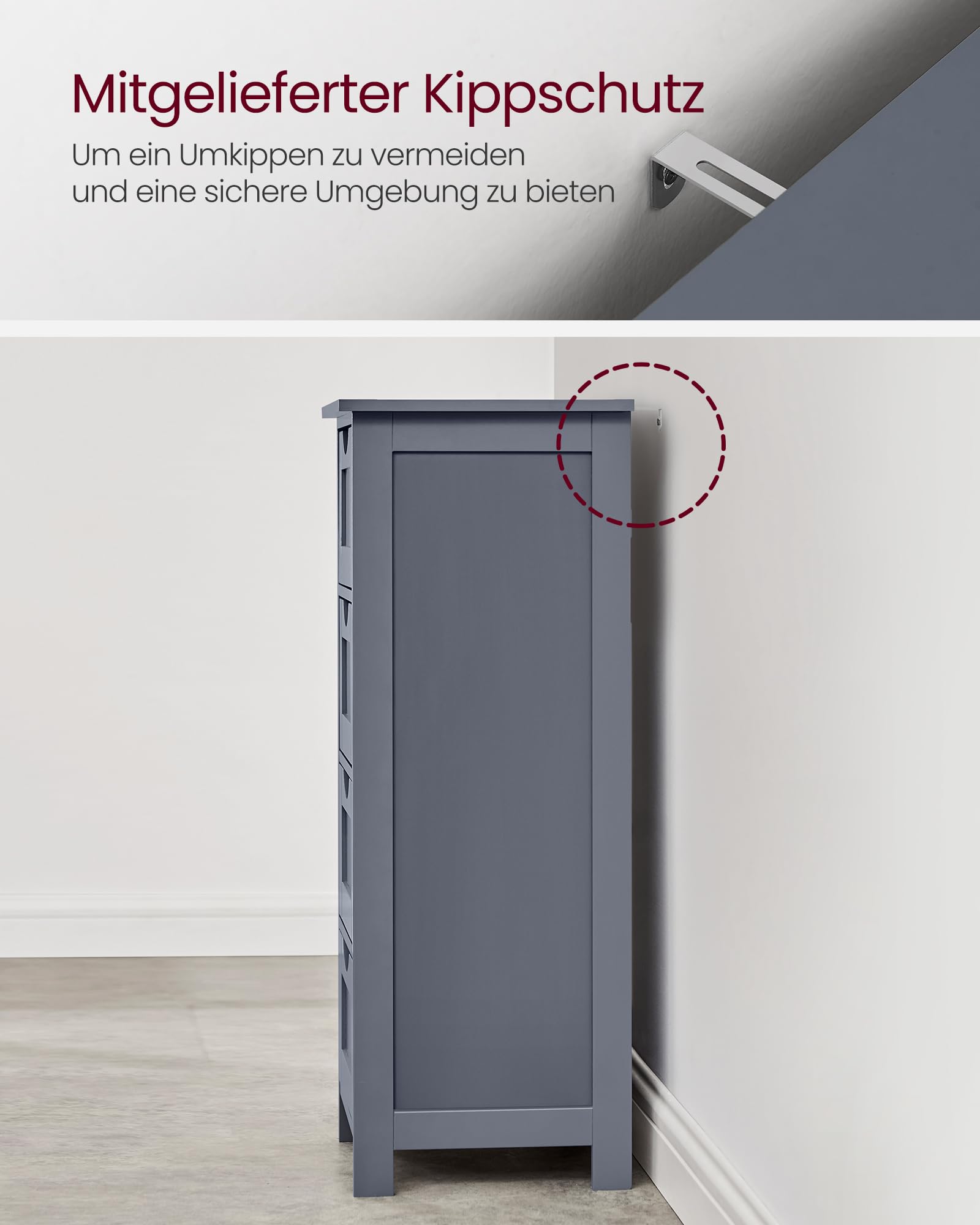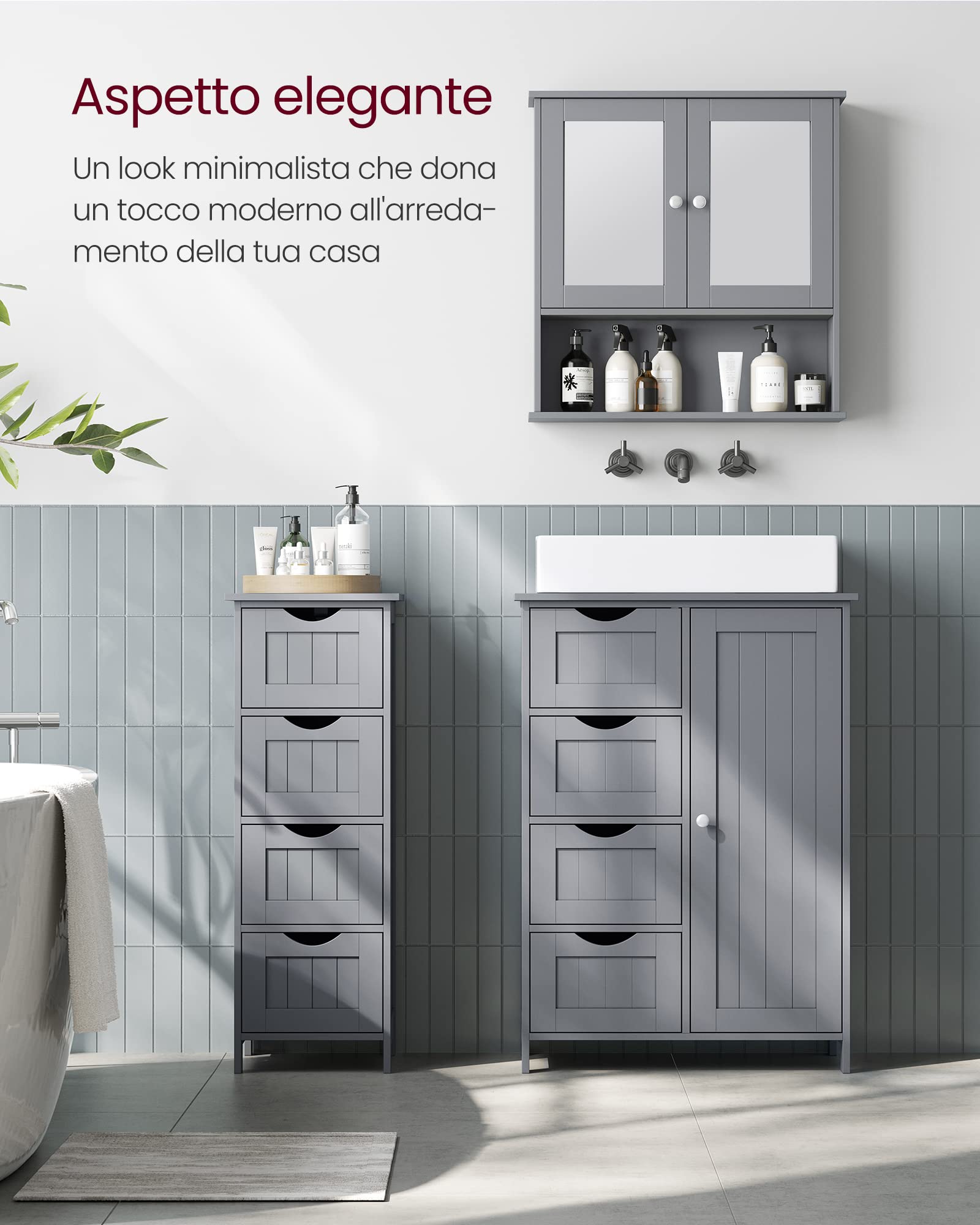 - Durable and sturdy: This bathroom furniture is made of robust medium-density fibreboard (MDF) panels that ensure a long service life; in addition, attach the cabinet to the wall with the included tilt protection to increase stability.