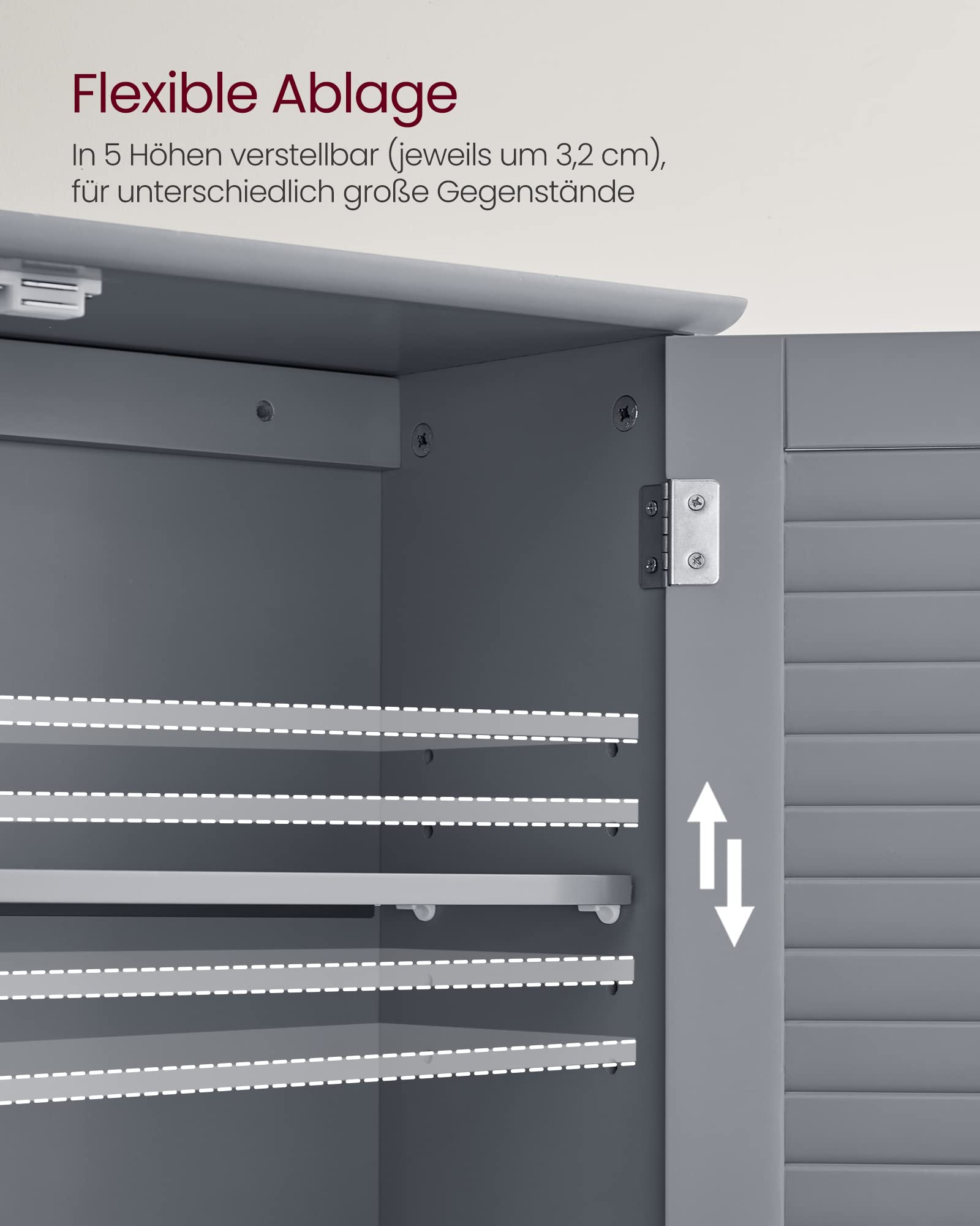 - Every room should have a cabinet like this: It has a double door and 2 chrome-plated metal knobs and is made from robust MDF panels (E1 class). This elegant cabinet fits perfectly in your bathroom, living room, hallway or other rooms