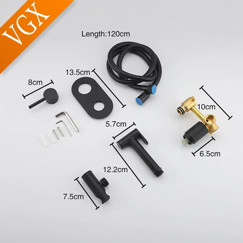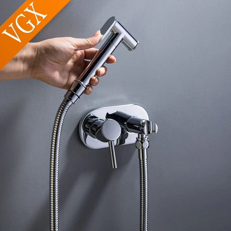VGX Brass Bidet Faucet Set Handheld Ducha Higienica Hot Cold Toilet Crane Women Washer Bathroom Shattaf Sprayer Hygienic Shower
