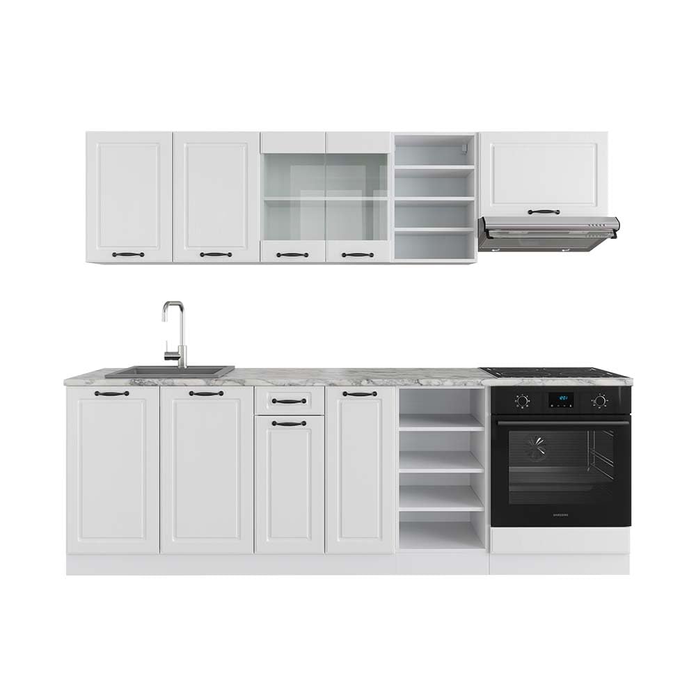 Vicco Küchenzeile R-Line, Küchenblock, Blau-Grau/Weiß, 240 cm ohne Arbeitsplatte