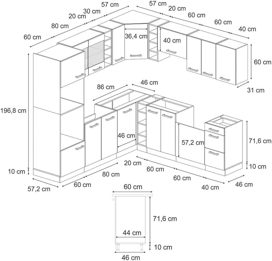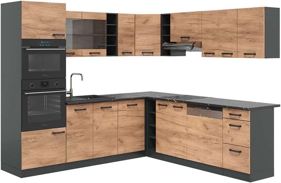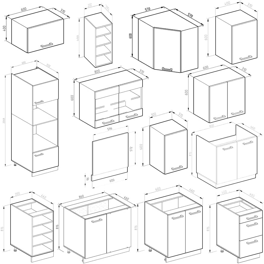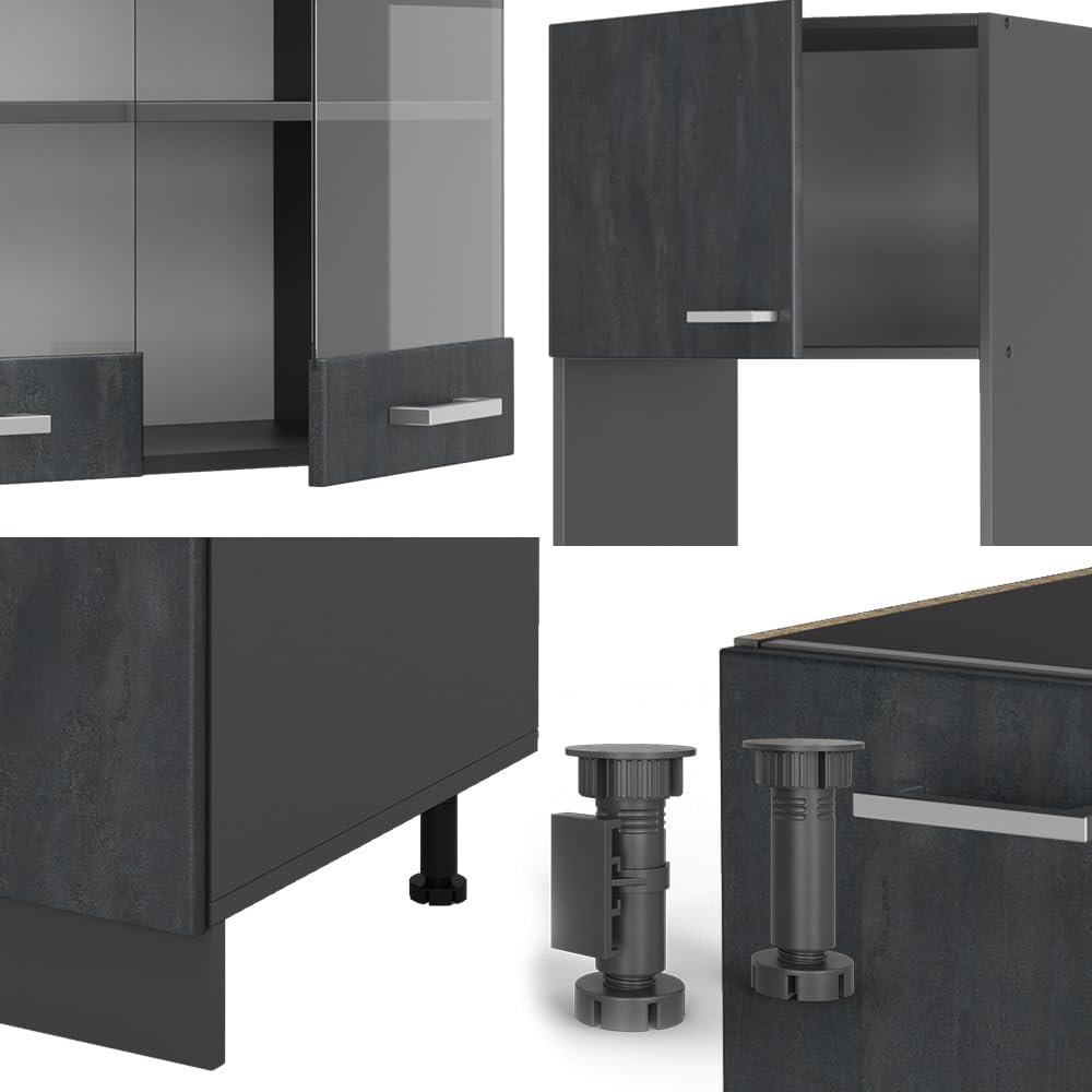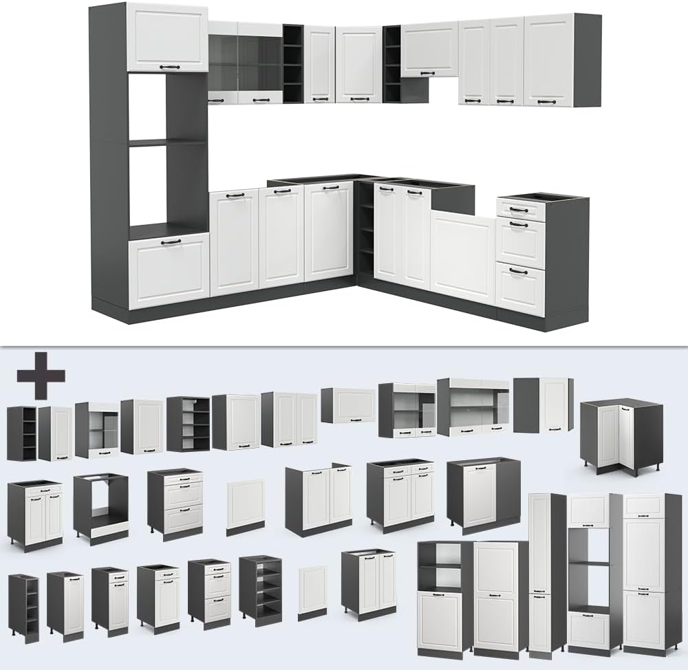 - Included are 15 individual kitchen cabinets, illustrated and easy-to-follow assembly instructions (English language not guaranteed) and the associated mounting materials.