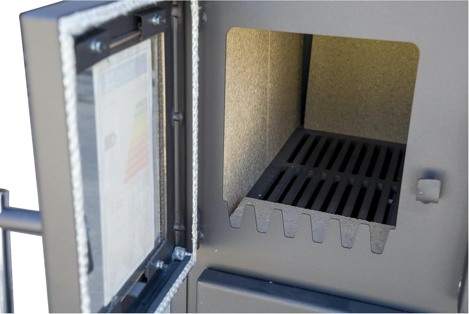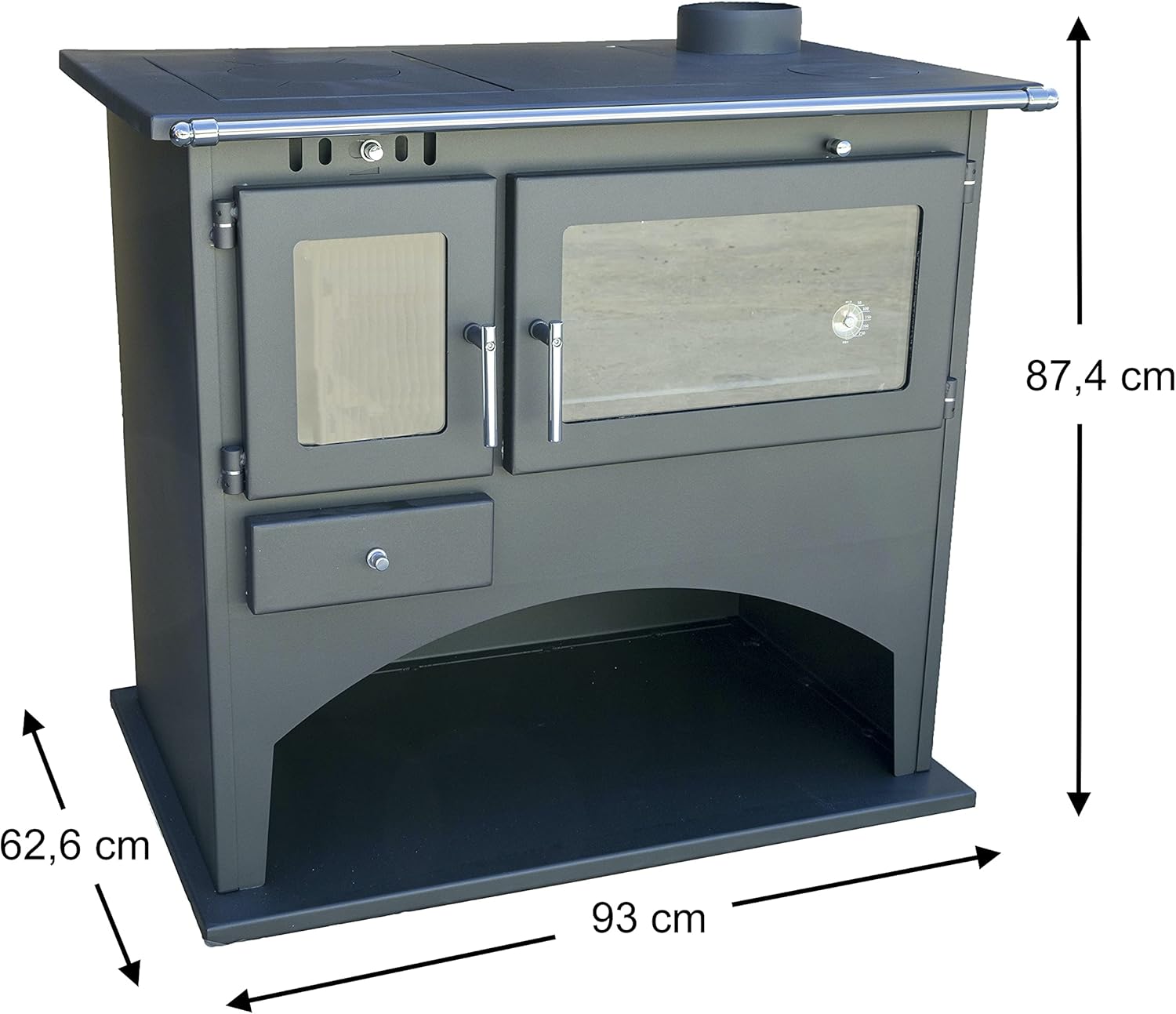 - With this high-quality wood stove, you can heat up properly at home. Thanks to its elegant and modern look, this heater blends seamlessly into any room. You can cook in the large baking chamber, some cooking, baking, roasting or even steaming. Can also be used as a pizza oven or for preparing cakes, pastries or hot desserts.