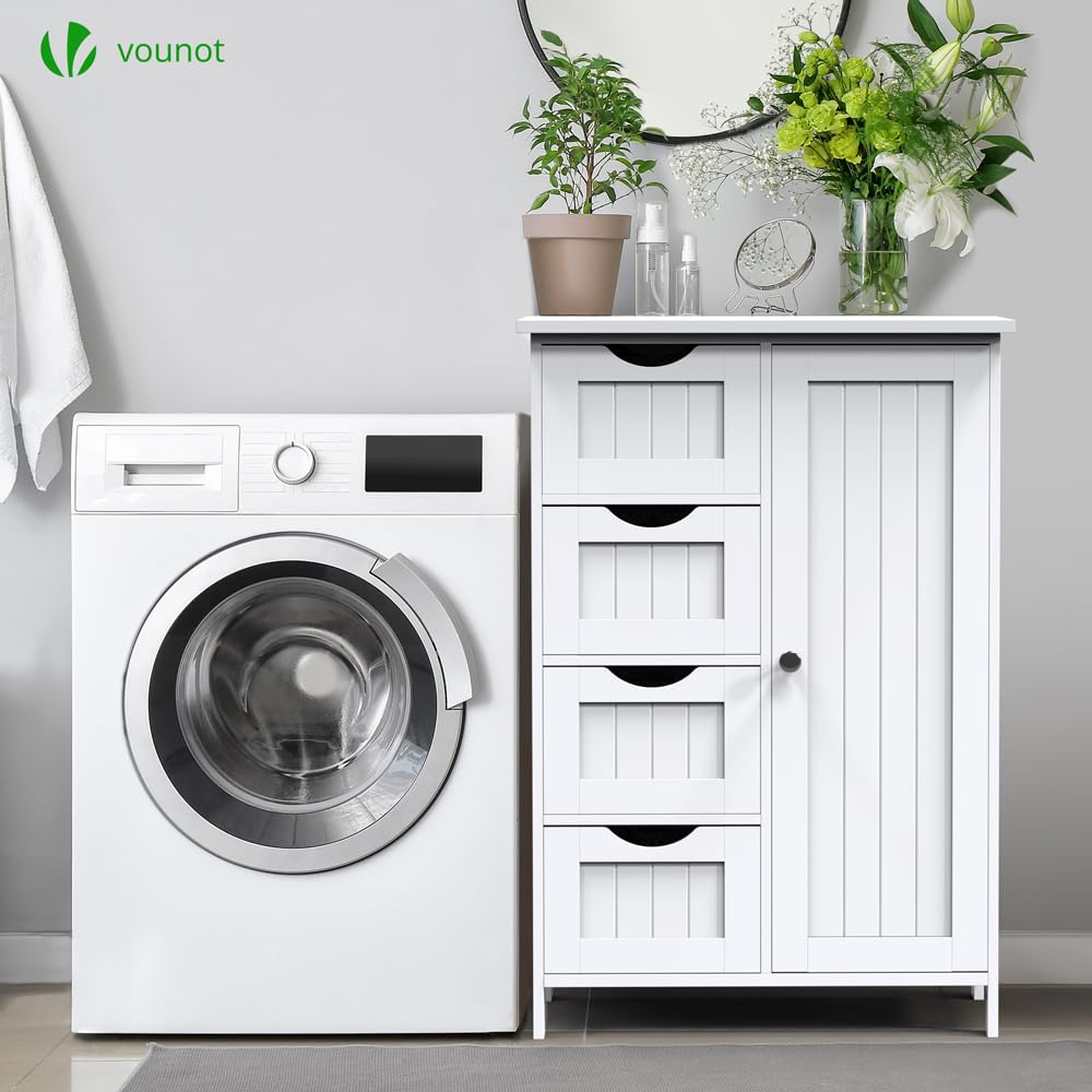 VOUNOT® Bathroom Cabinet, Side Cabinet with 4 Drawers, Cabinet Door & Adjustable Shelves for Bathroom, Living Room, Kitchen, Bedroom, 30 x 55 x 82 cm, Grey