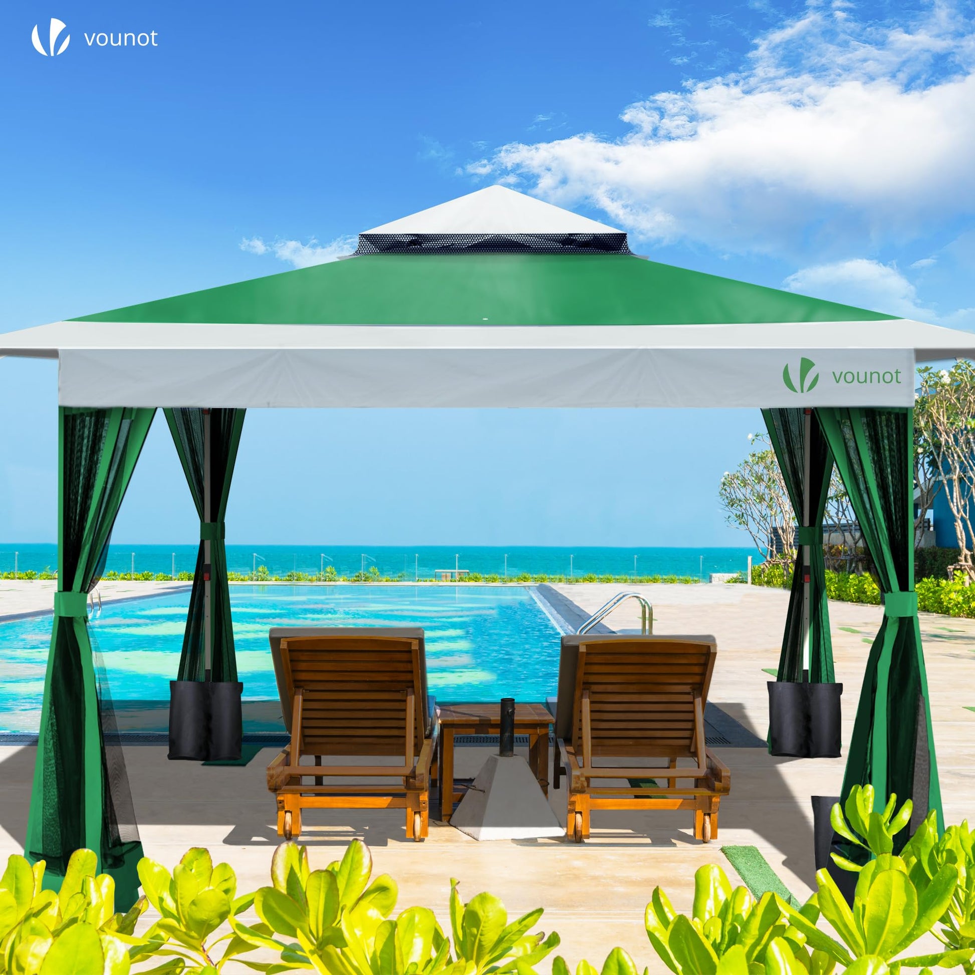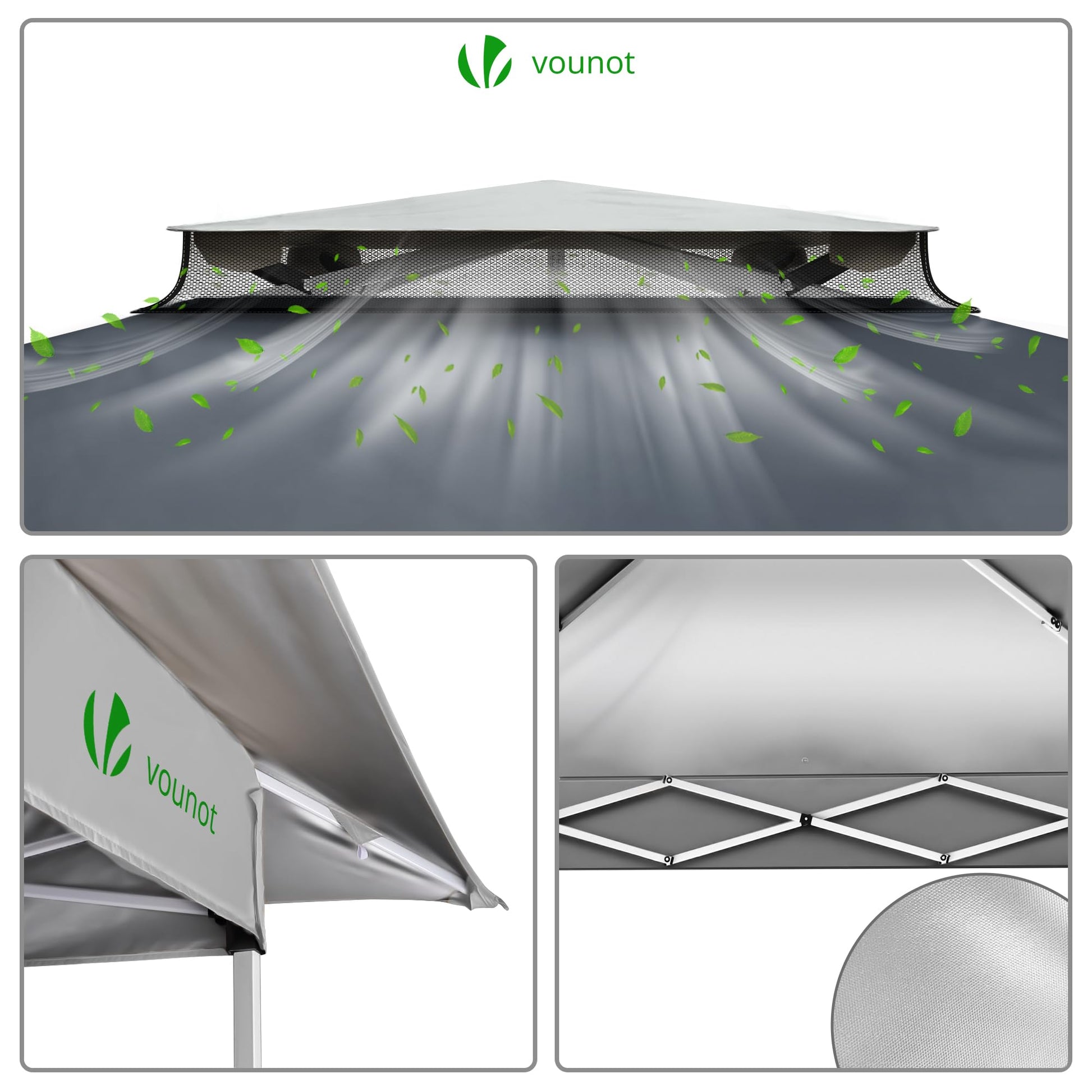 - Breathable and mosquito repellent: our folding gazebo has a sophisticated double-layer roof equipped with a mesh fabric that promotes optimal ventilation inside. This releases the trapped heat and allows the wind to circulate through the vents. In addition, this arbor provides maximum ventilation thanks to its removable mosquito window and protects you from unwanted insects at the same time