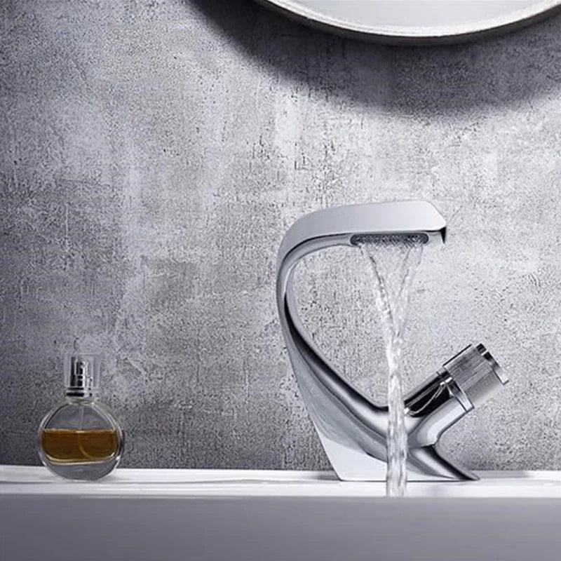 Waterfall faucet Stainless steel hot and cold water faucet G1/2 (20 mm) thread Wash basin faucet High-end art