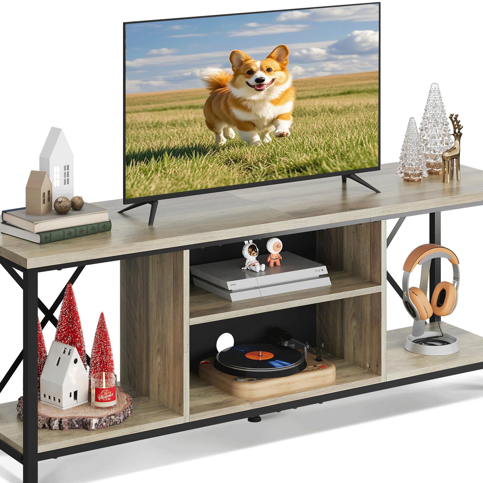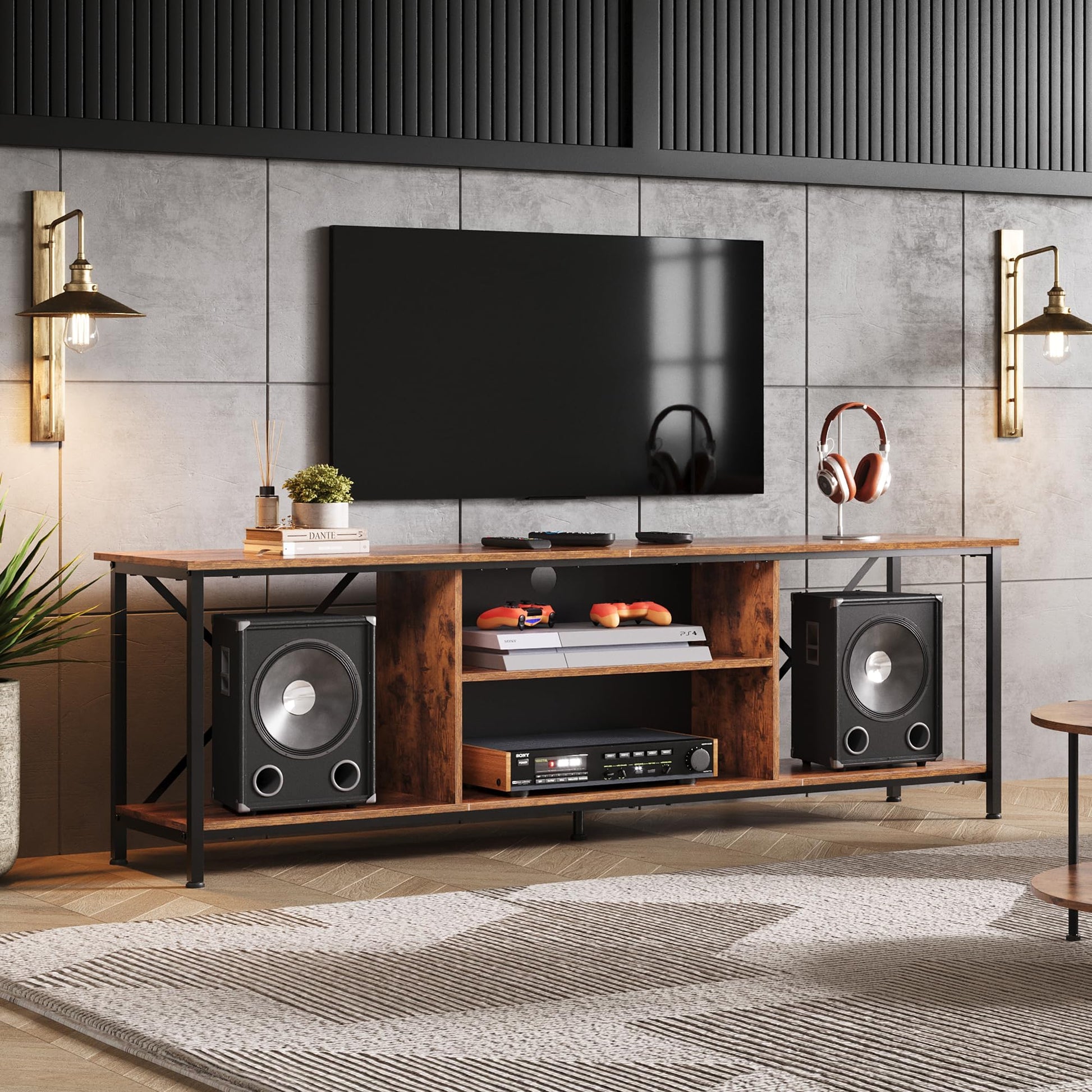 - Mehrere Speicheroptionen:Der Fernsehschrank ist mit ausreichend Stauraum ausgestattet. Die extra hohen offenen Ablageflächen auf beiden Seiten eignen sich für die Aufbewahrung großer Gegenstände wie z. B. Standlautsprecher und fördern gleichzeitig die Wärmeableitung für elektronische Geräte. Das offene, verstellbare Regal der TV Banks in der Mitte ist flexibel genug, um verschiedene Aufbewahrungsbedürfnisse zu erfüllen, von Büchern über Dekoration bis hin zu Elektronik ist alles in Ordnung.