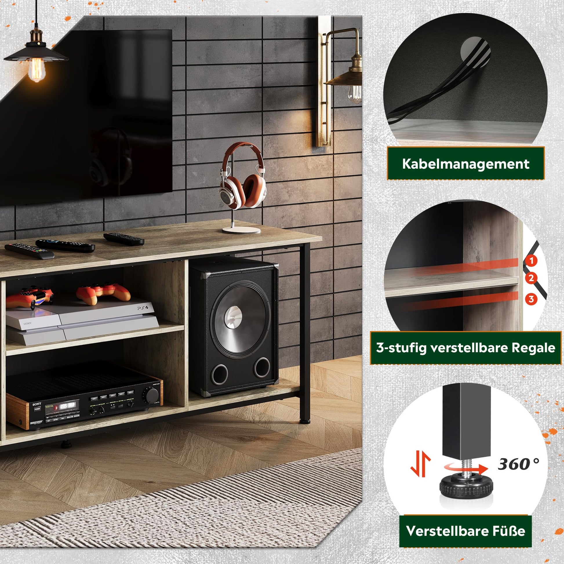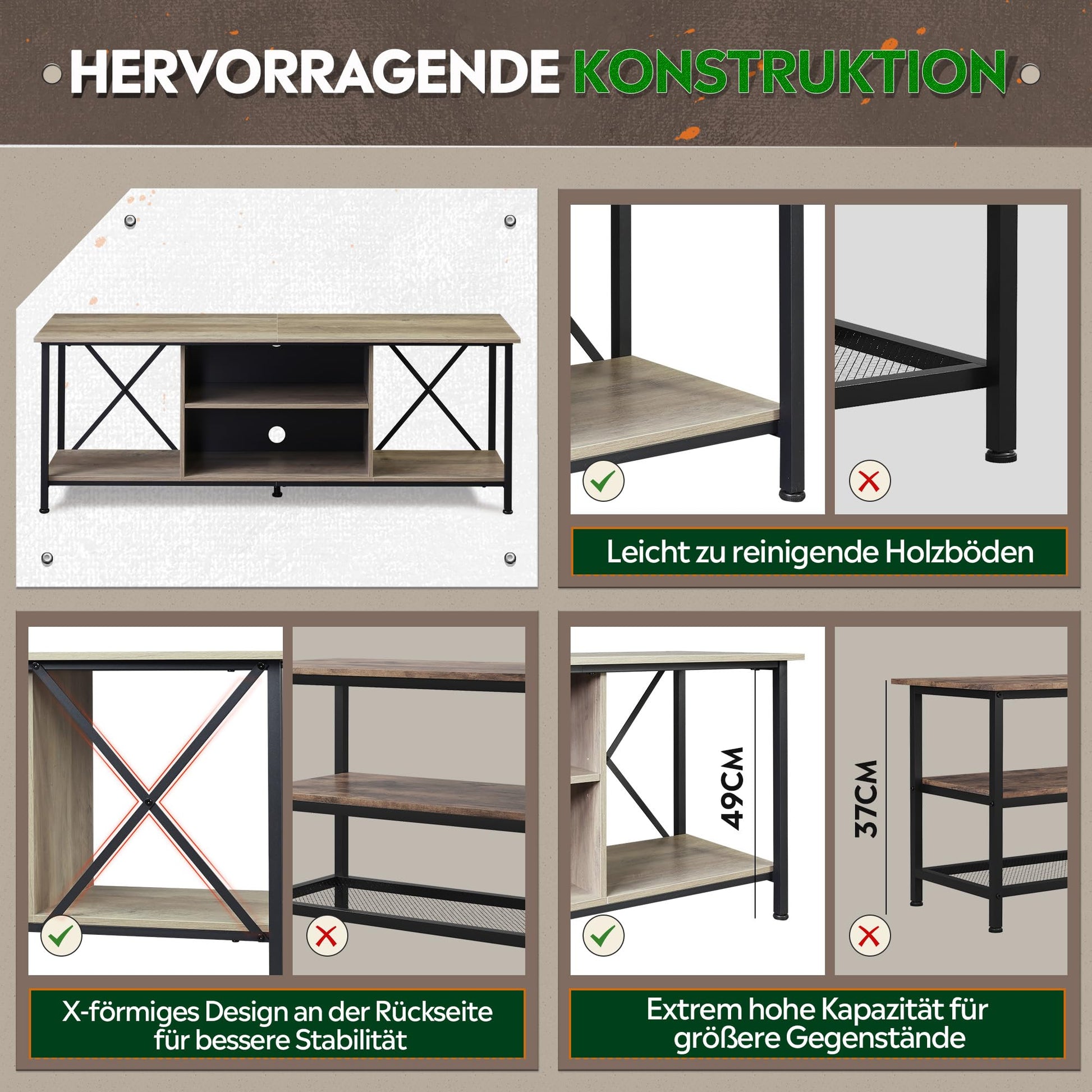 - Industrieller Stil:Dieser TV Schrank ist im modischen industriellen Stil gestaltet. Der X-förmige hintere Rahmen verstärkt nicht nur die Stileigenschaften, sondern sorgt auch für die Gesamtstabilität. Mit den Maßen 139,8 x 39,80 x 51,2 cm ist der Fernsehtisch für Fernseher bis zu 65 Zoll geeignet und erfüllt sowohl dekorative als auch Aufbewahrungsbedürfnisse.