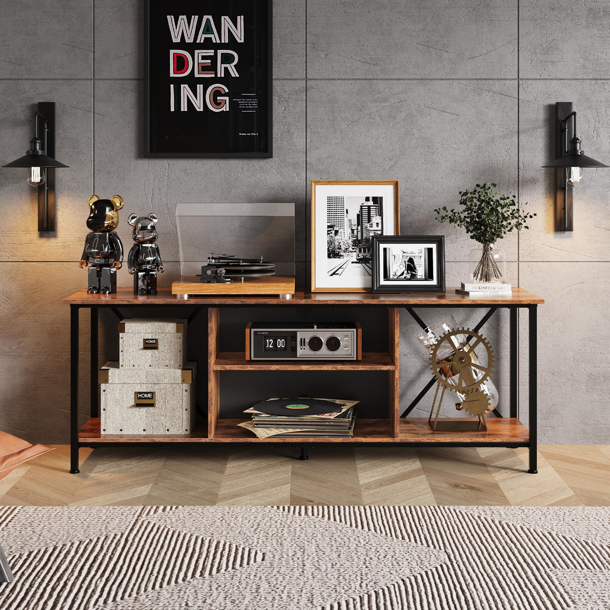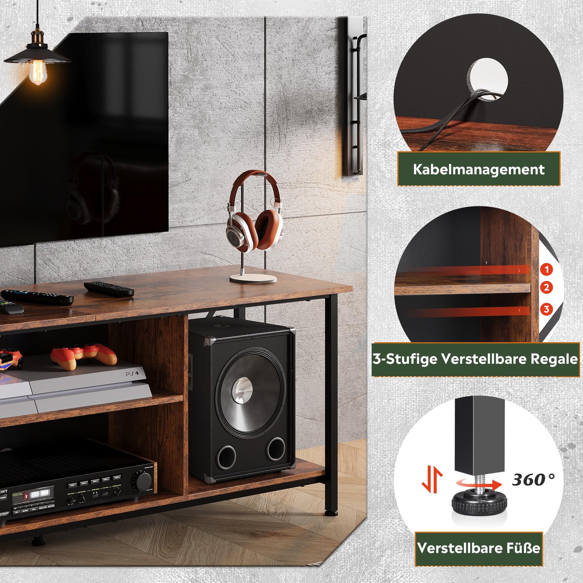 WLIVE TV Schrank, TV Lowboard für Fernseher bis zu 65 Zoll, TV Board Fernsehschrank mit Offenen Stauraum, 140 x 40 x 49 cm, Fernsehtisch für Wohnzimmer und Schlafzimmer, Vintagebraun-Schwarz