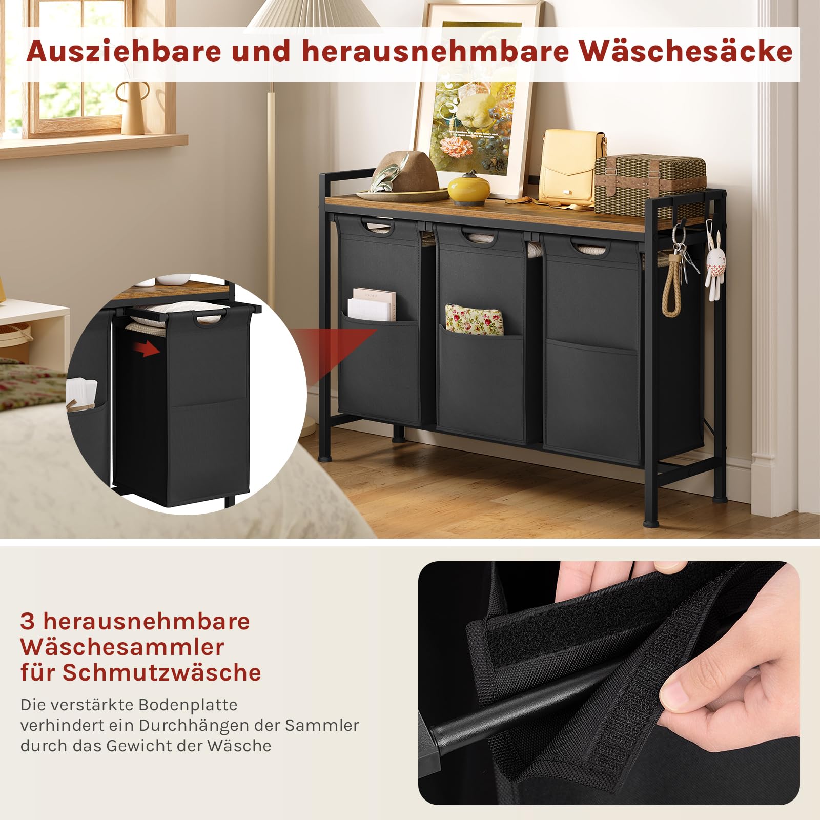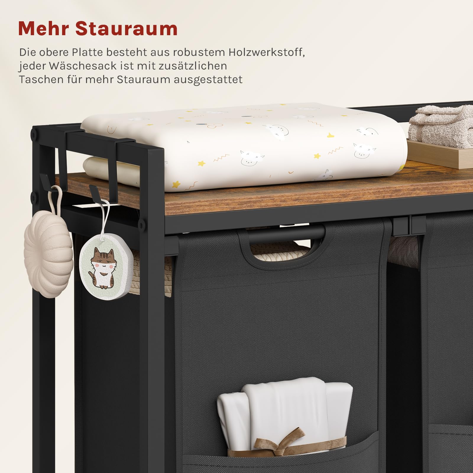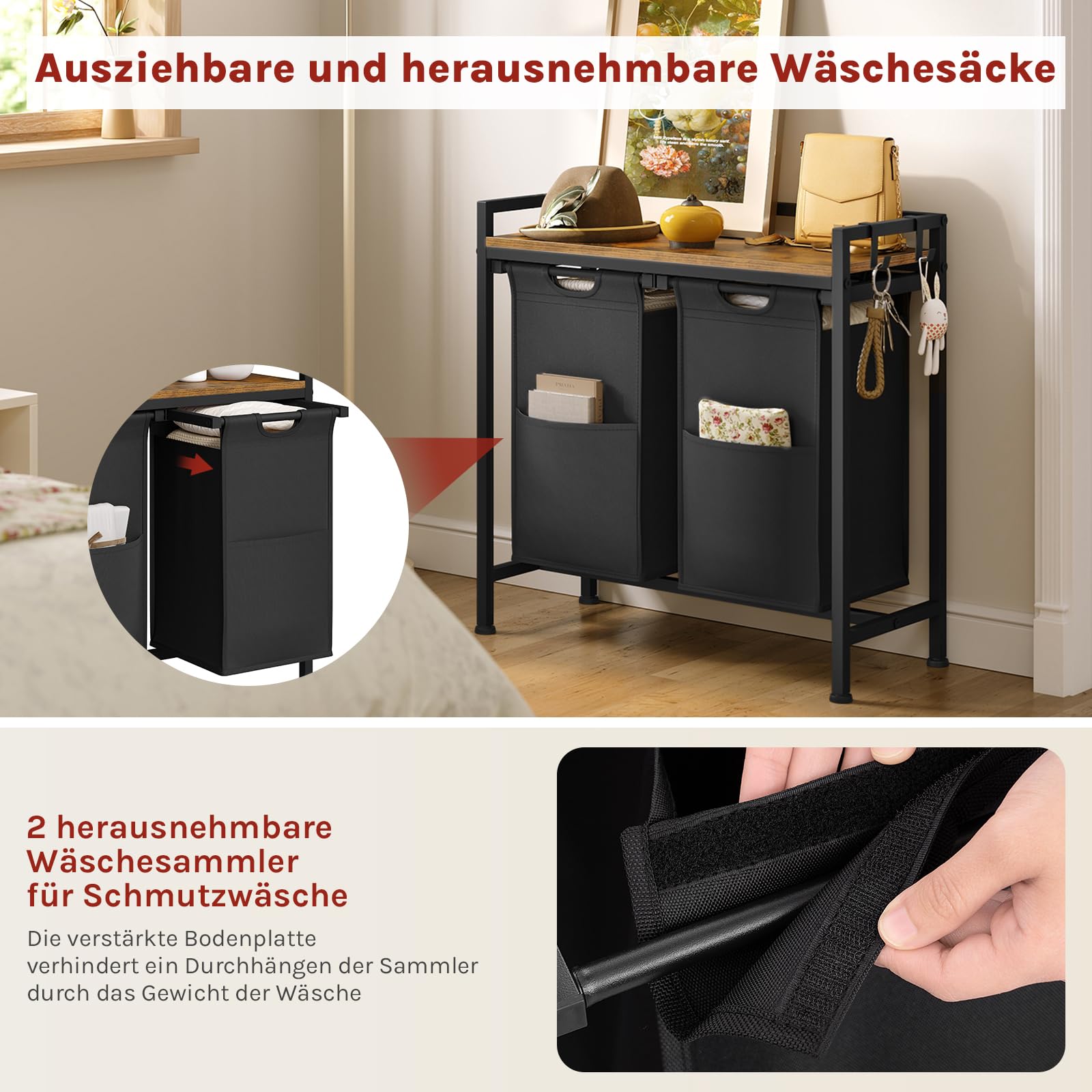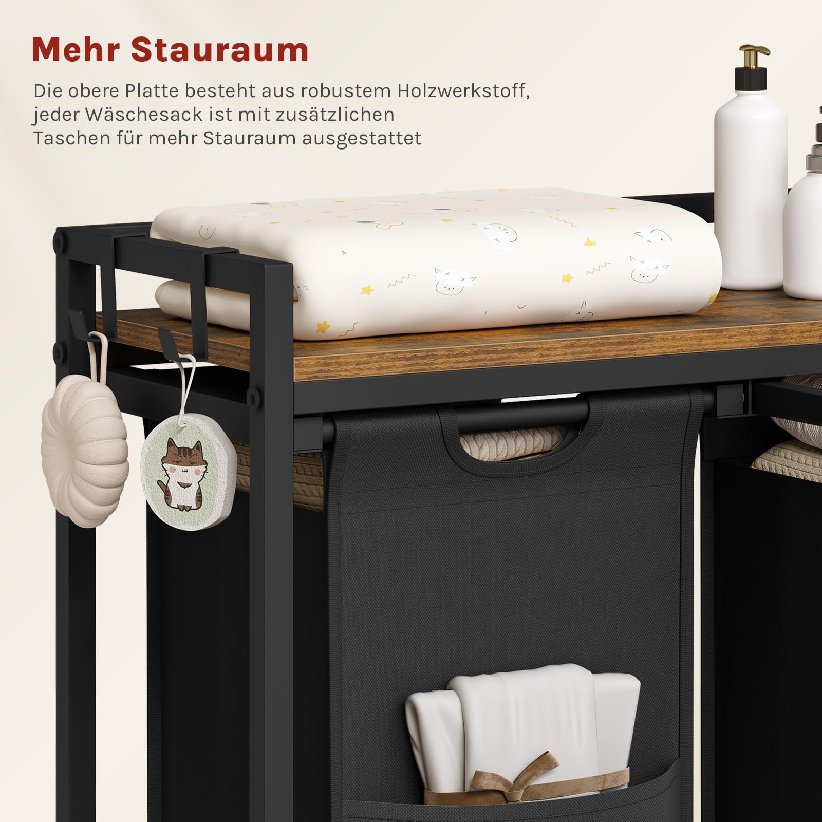 - Wear-resistant and durable: made of melamine veneered FSC-certified wood, powder-coated metal tubes and Oxford fabric, the laundry baskets are robust, stable, rust-proof, durable, water-repellent and easy to clean. The lower crossbar reinforces the structure and prevents the baskets from sinking. The adjustable feet ensure that the device stands stable even on uneven ground