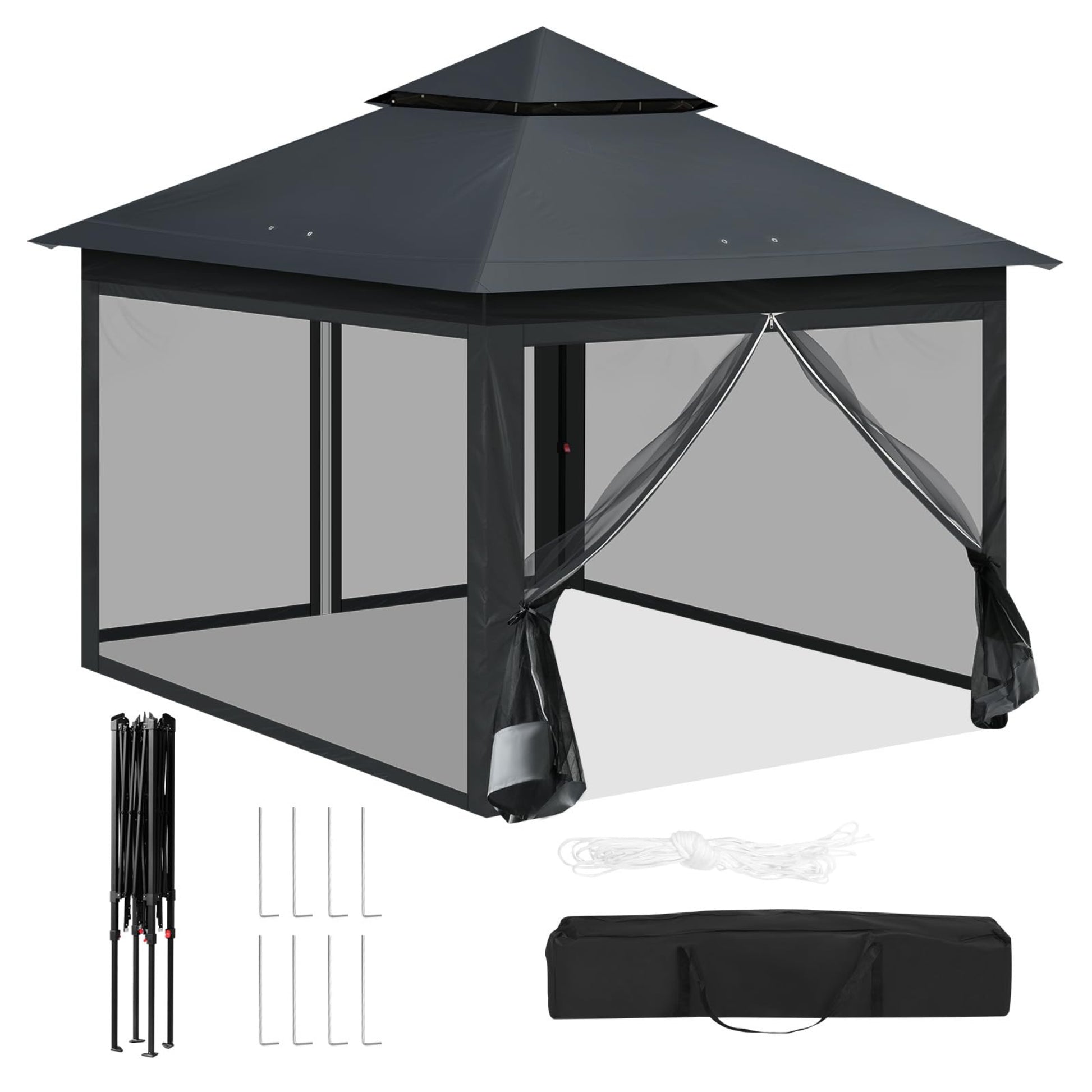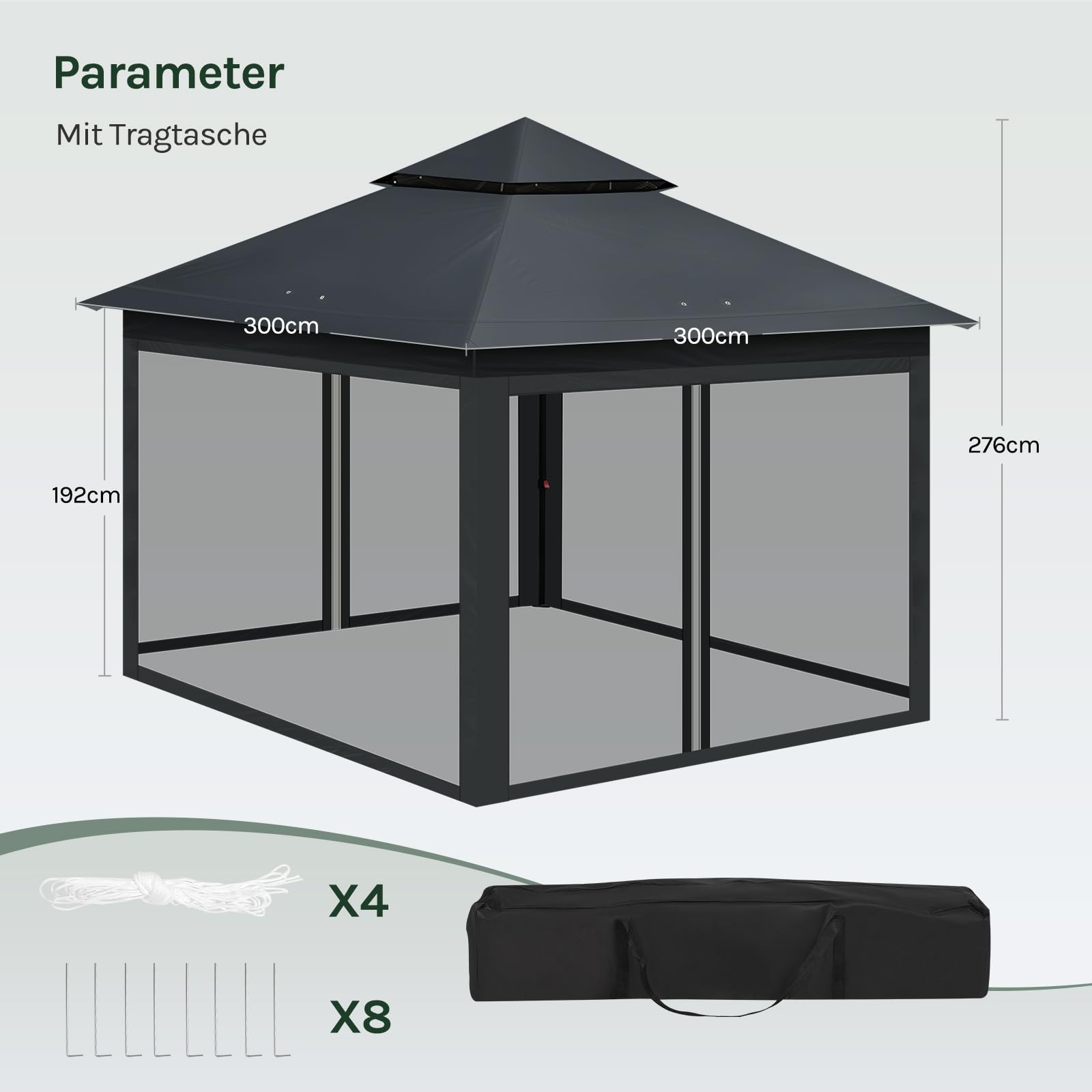 WOLTU Pavillon 3x3 m, Faltpavillon mit Moskitonetz, Partyzelt wasserdicht stabil, höhenverstellbares Partyzelt UV-Schutz, Gartenpavillon mit 4 Seitenteilen, Festzelt mit Tragtasche, Anthrazit