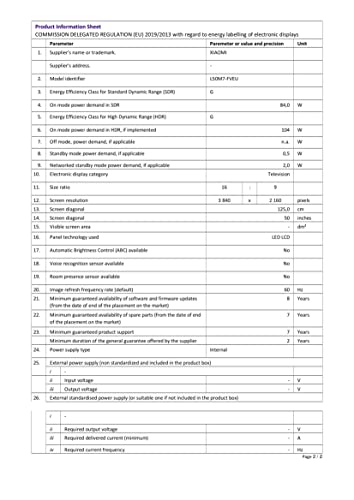 | Included components | Bluetooth remote control, Power cable., Power cord, Safety and installation instructions, Screen, Screw set, base parts See more |