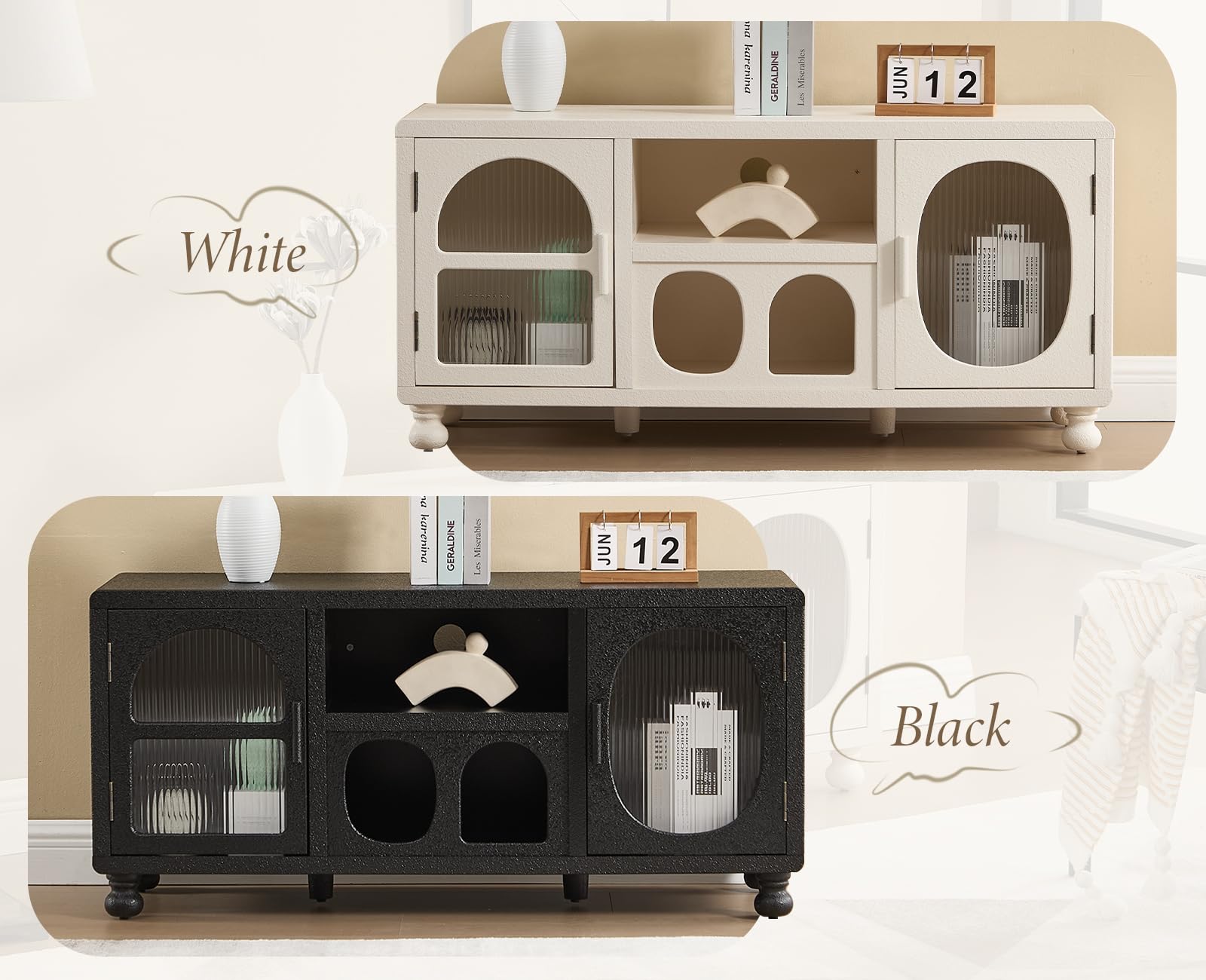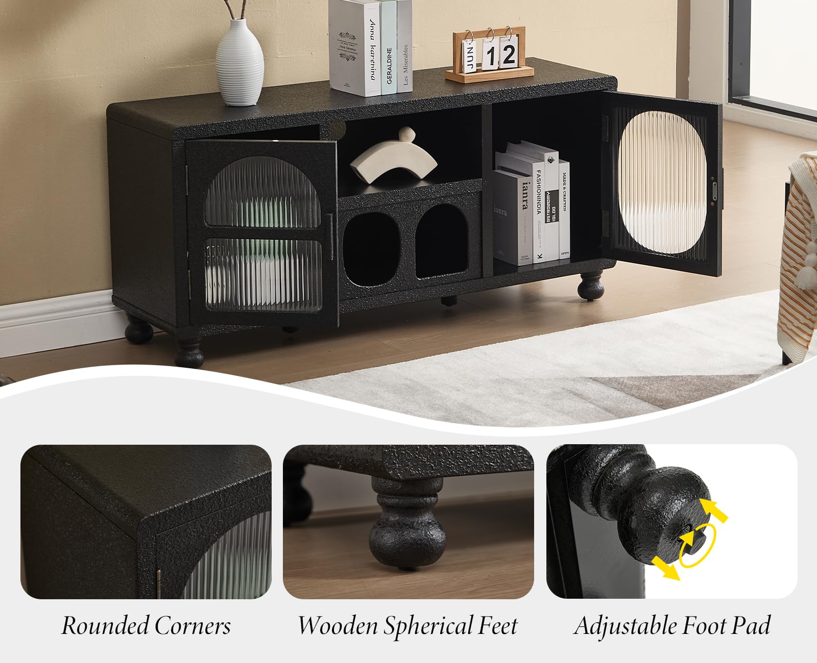 - 【Pdratic and safe design】The sideboard is equipped with hidden holes to manage the cables invisible. Rounded corners prevent bumps and injuries, the solid wood ball feet firmly support the overall structure and lift the cabinet to allow the free passage of the sweeping robot.