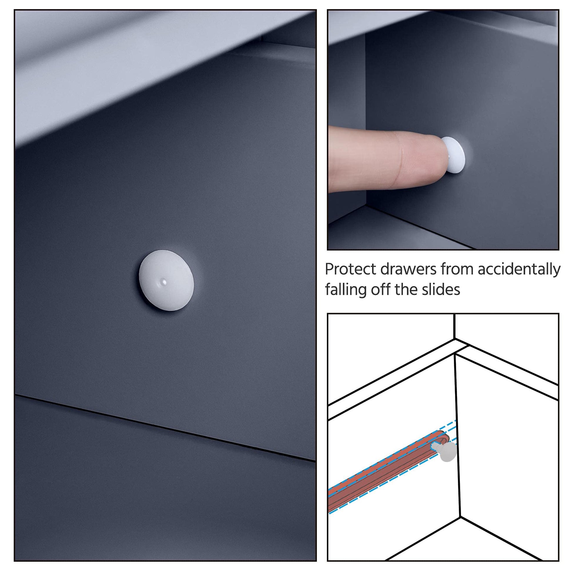- Safe Use Each drawer is equipped with a stopper to prevent accidental falling out. With the tilt protection, you can attach the cabinet to the wall and thus create safe use
