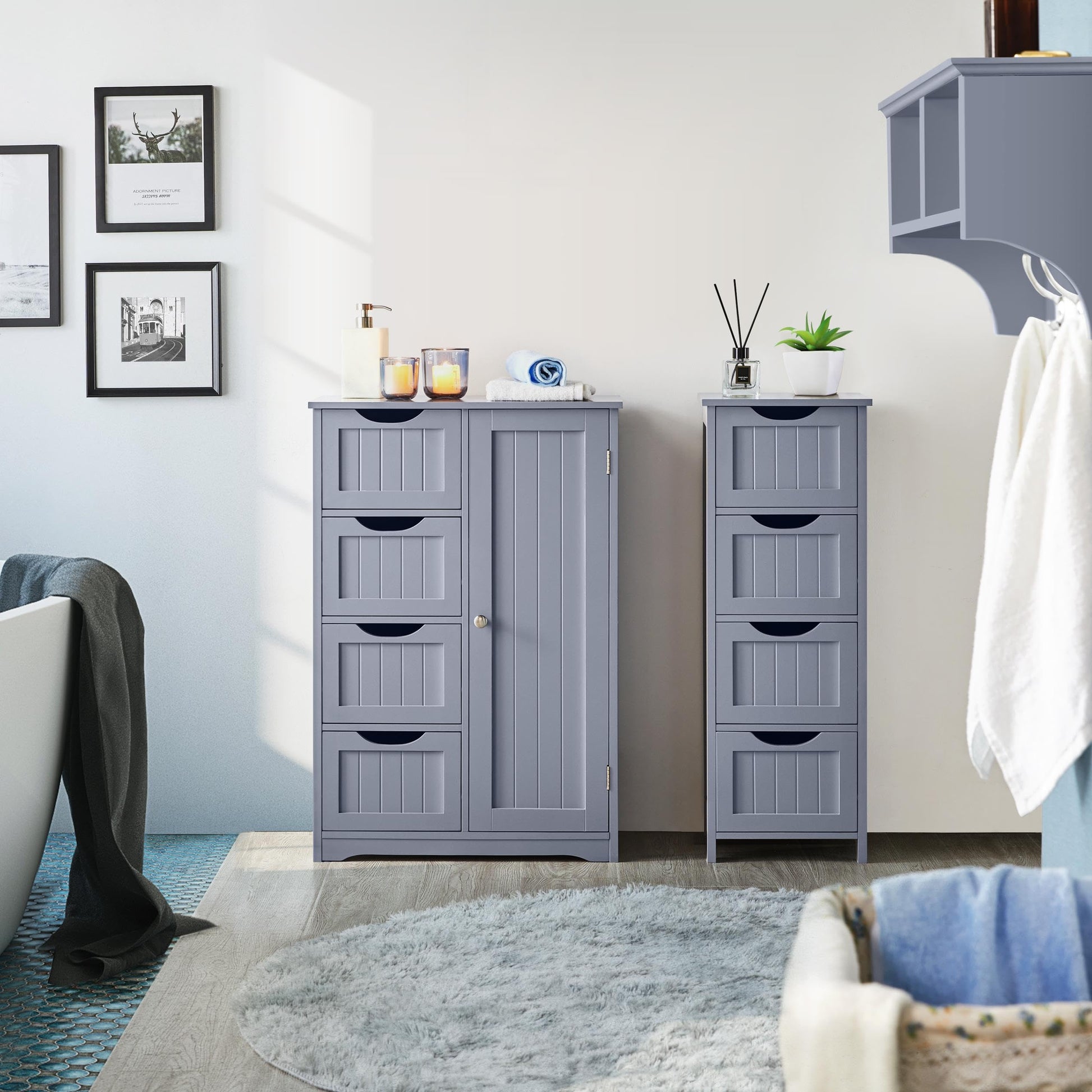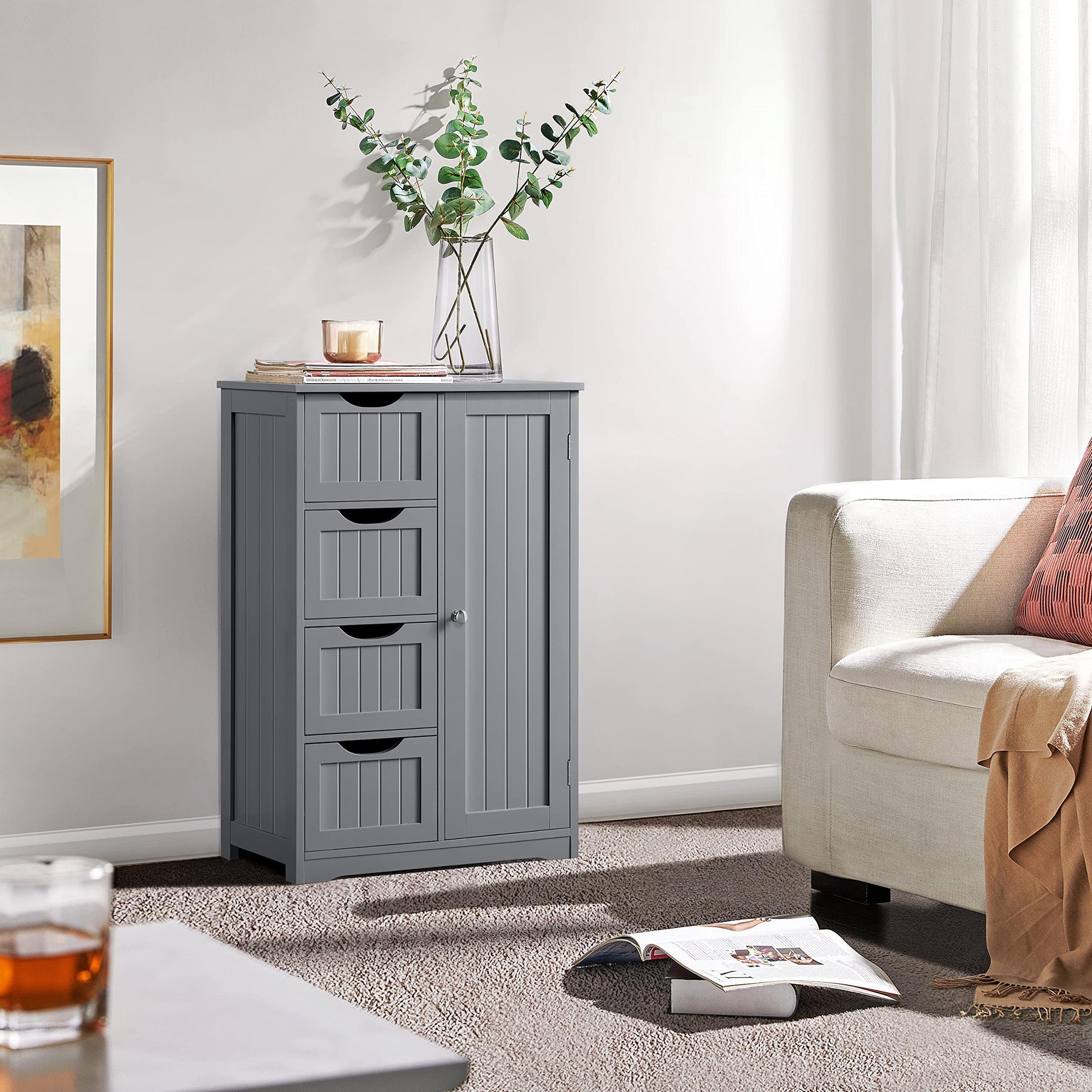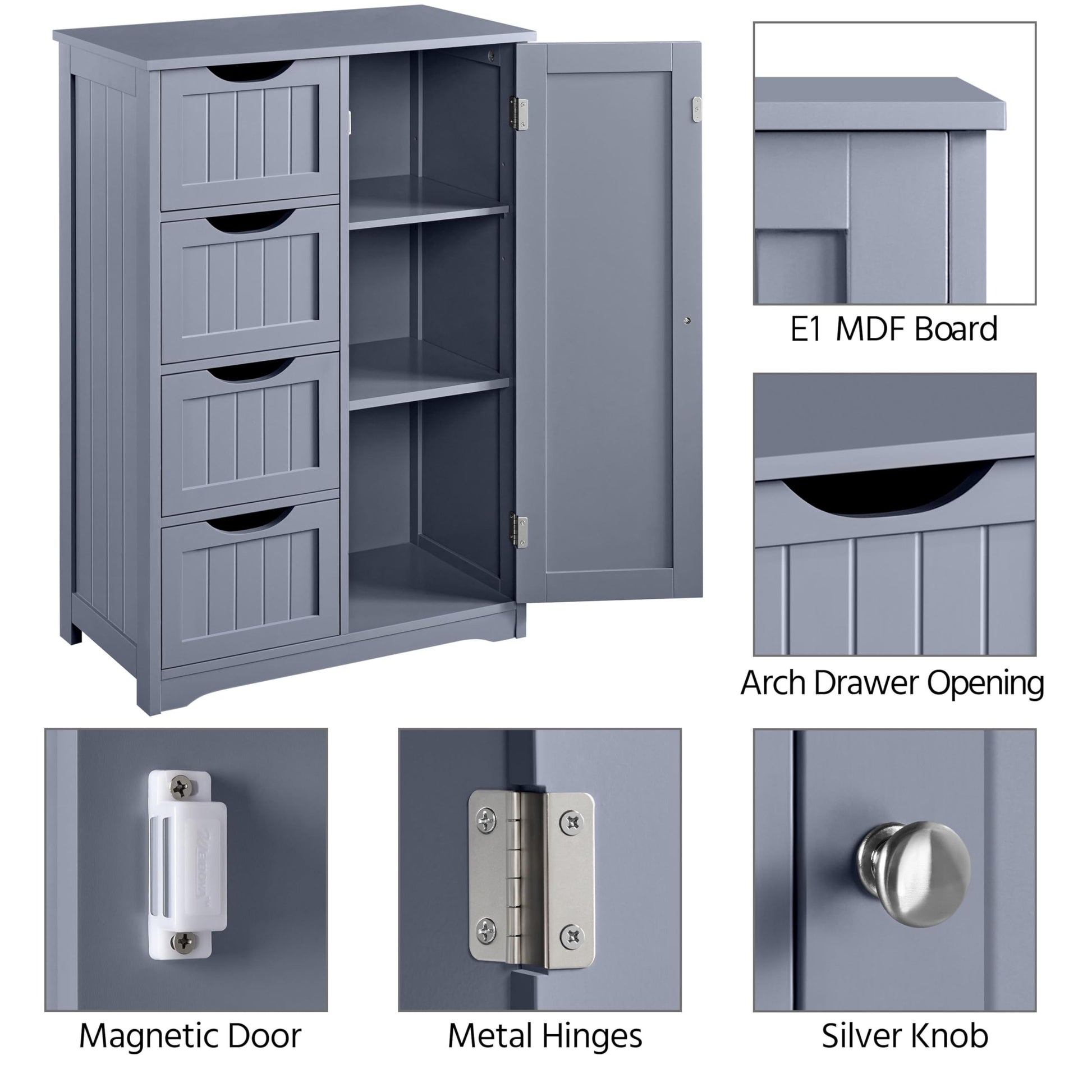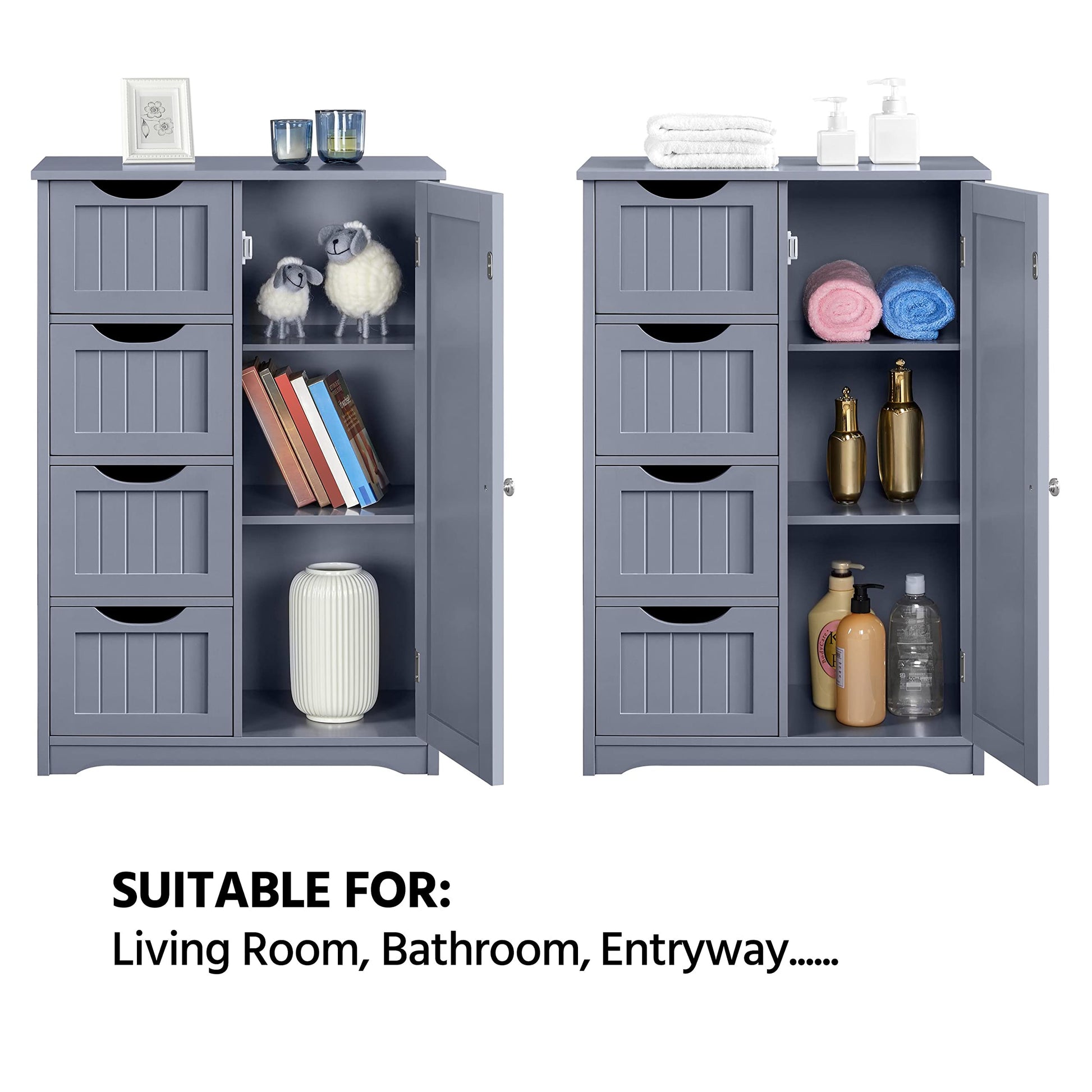 - LARGE STORAGE SPACE This floor cabinet features a wide table top, 4 drawers and a cabinet with 2 storage compartments. They ensure that the utensils are stored in different compartments and keep your bathroom tidy and tidy