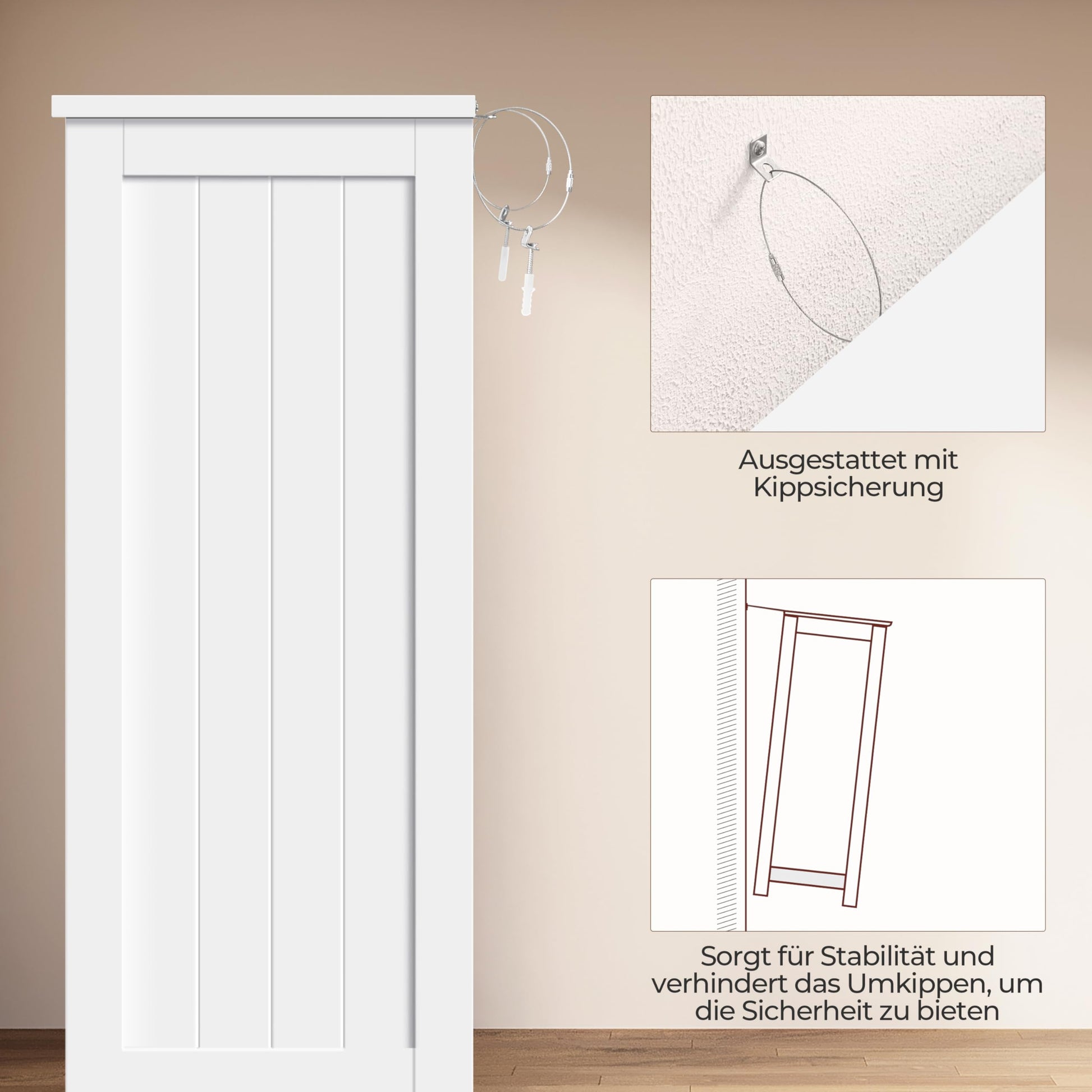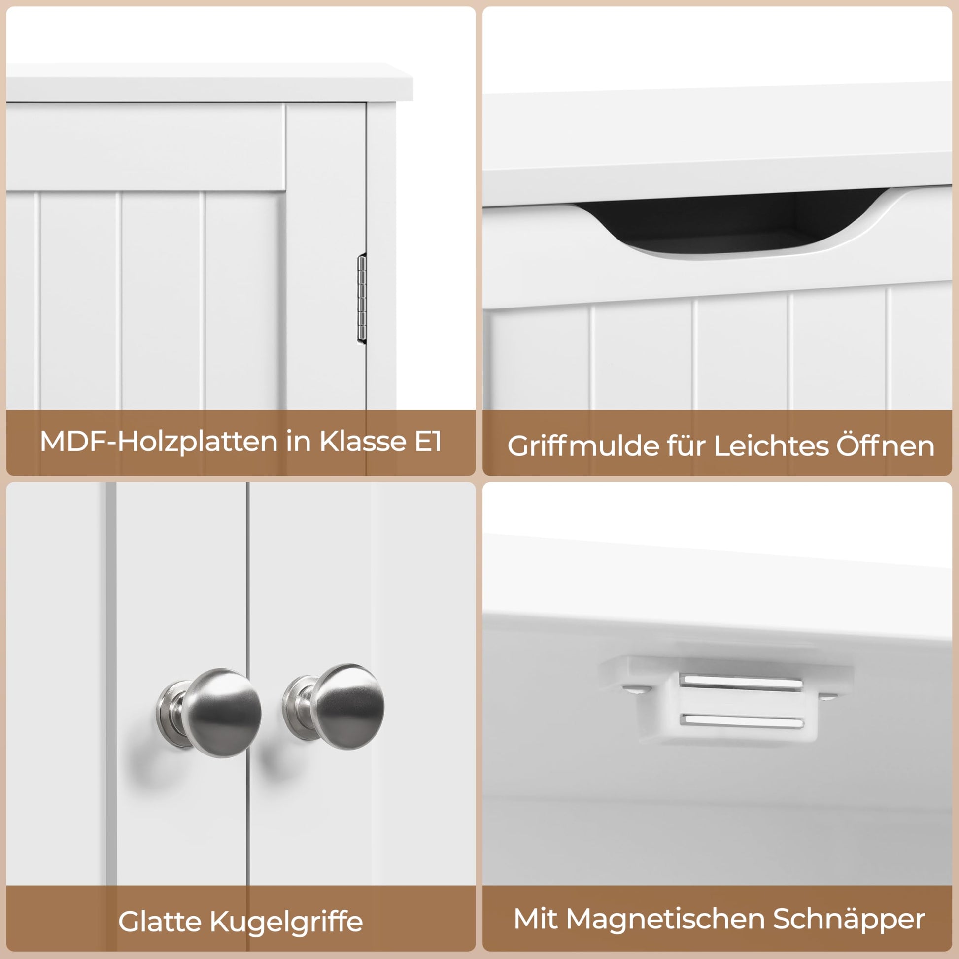 - MULTIFUNCTIONAL CABINET This floor cabinet with plenty of storage space brings order to the bathroom. It is also an ideal organiser in the kitchen, living room, hallway or entrance area