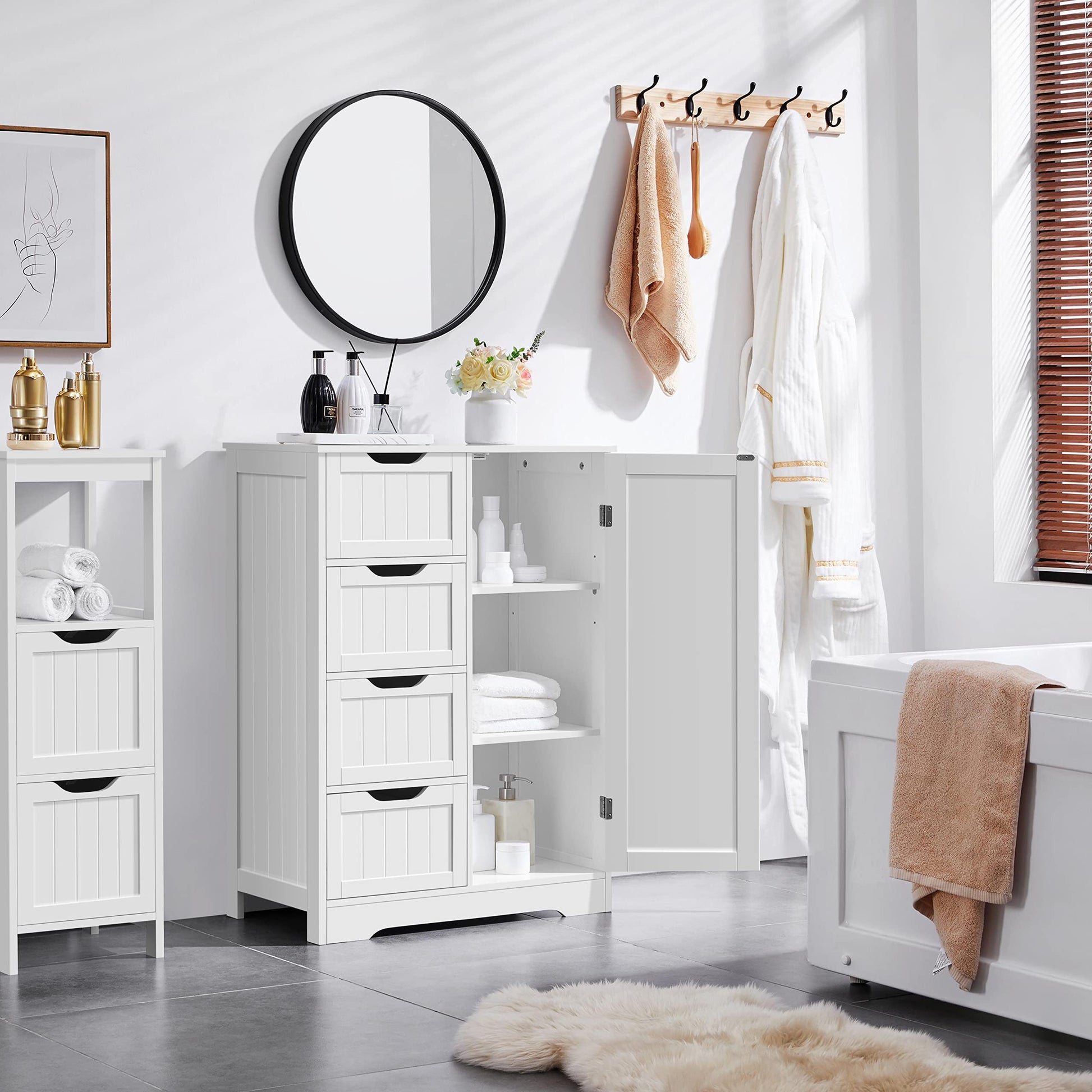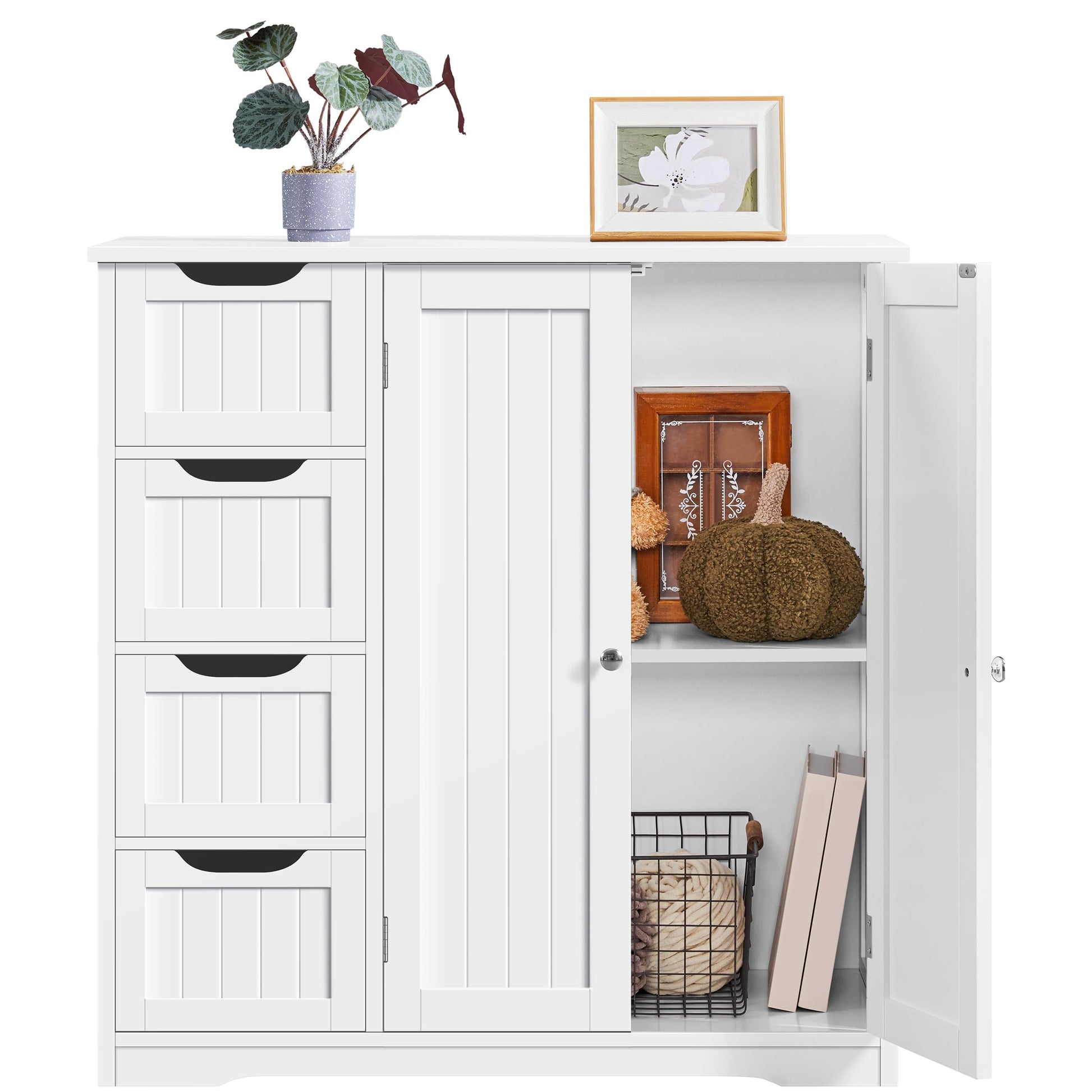 Yaheetech Bathroom Cabinet Floor Cabinet with 4 Drawers and 2 Doors Bathroom Cabinet Floor Cabinet with Height-Adjustable Shelf for Bathroom Living Room Hallway Kitchen White