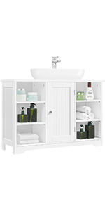 - DURABLE MATERIALS This bathroom cabinet is made from FSC certified MDF wood panels. The surface is water-repellent coated. They ensure high durability, long service life and safe use