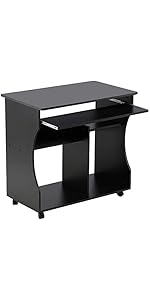 Yaheetech Desk with Printer Shelf Computer Desk Black PC Table with 4 Wheels 80 x 50 x 132 cm