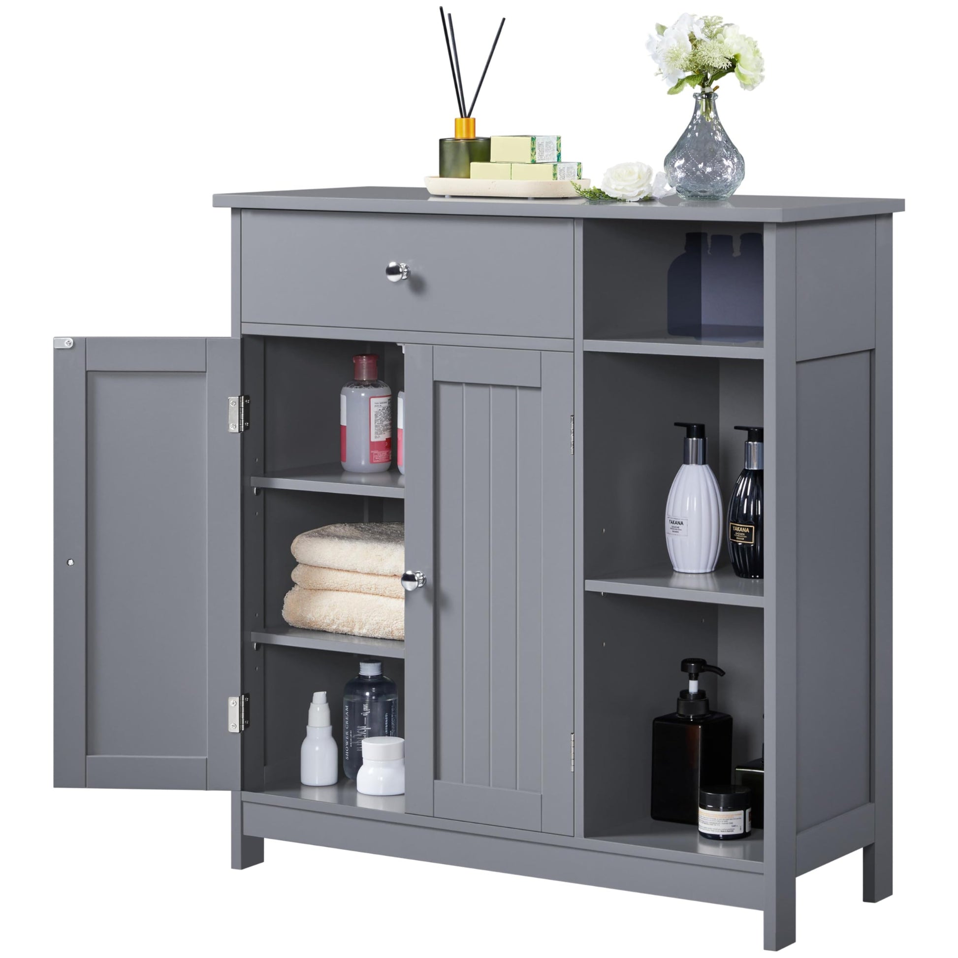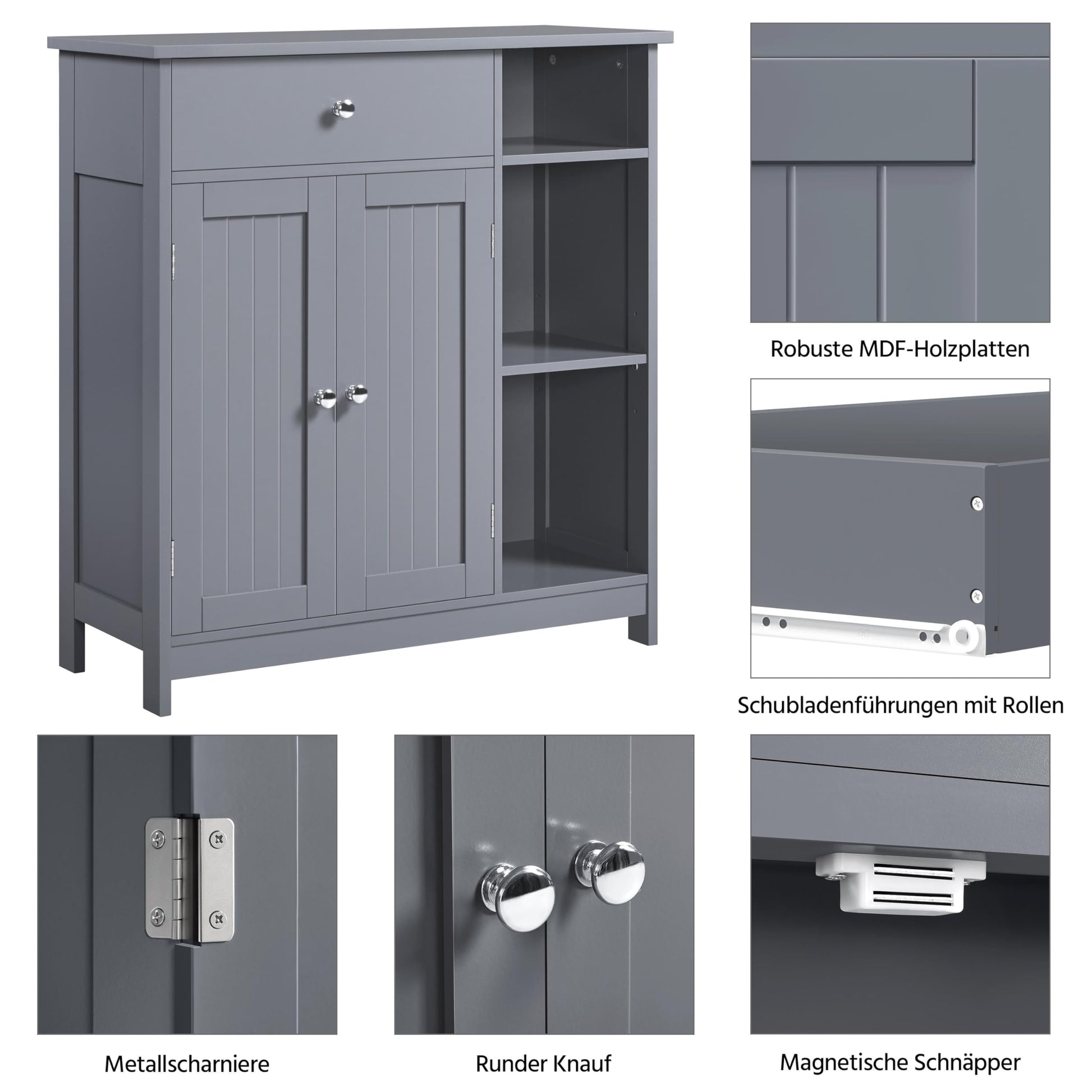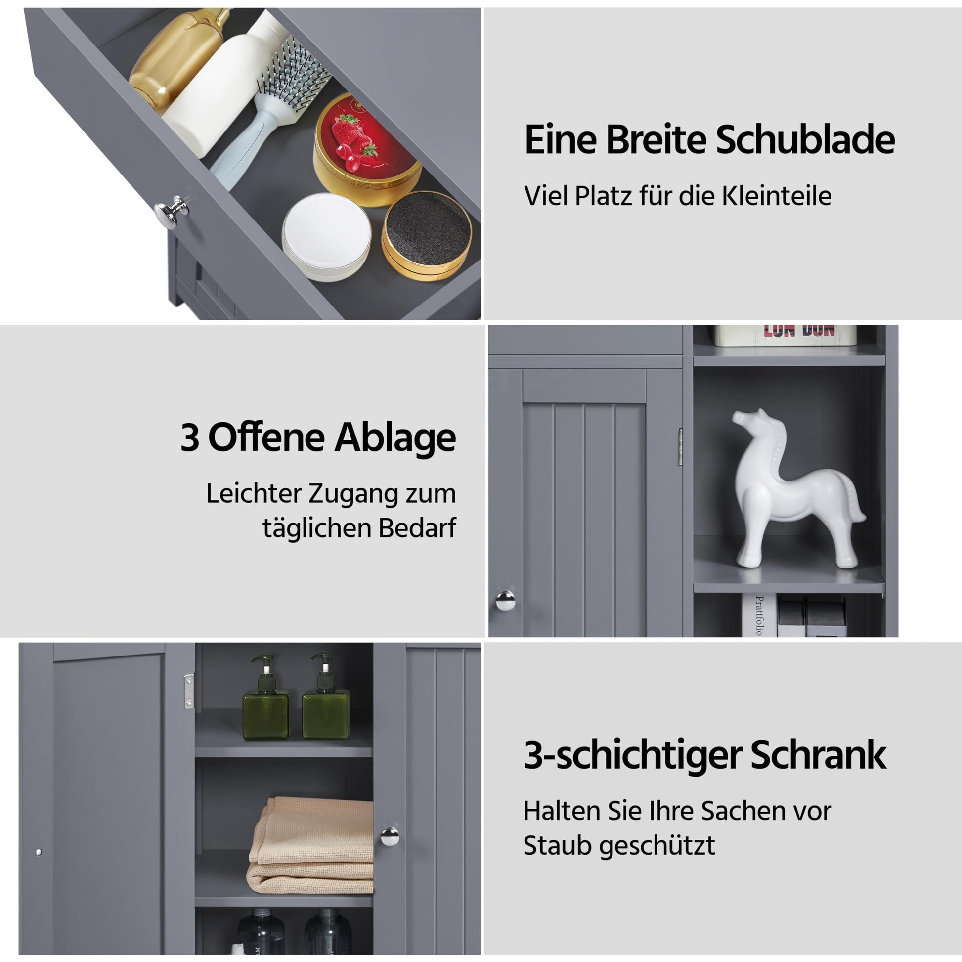 Yaheetech Unterschrank Badezimmerschrank Badkommode Badschrank mit 1 Schublade & 2 Türen & 3 Regalen Baderegal Bodenschrank mit verstellbare Einlegeböden, viel Stauraum, Dunkelgrau
