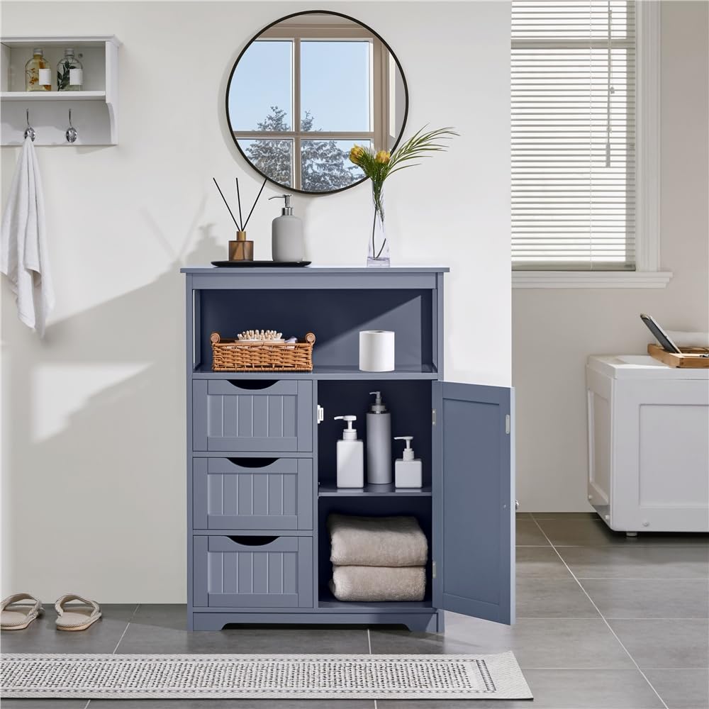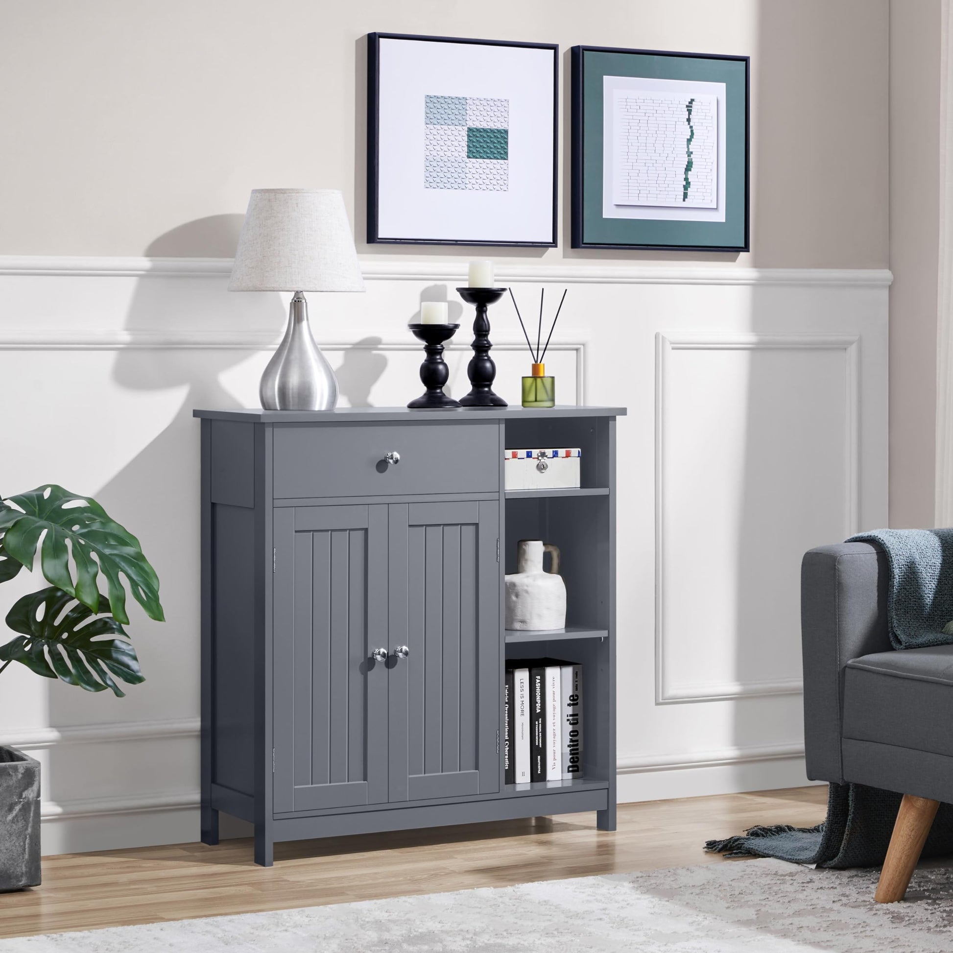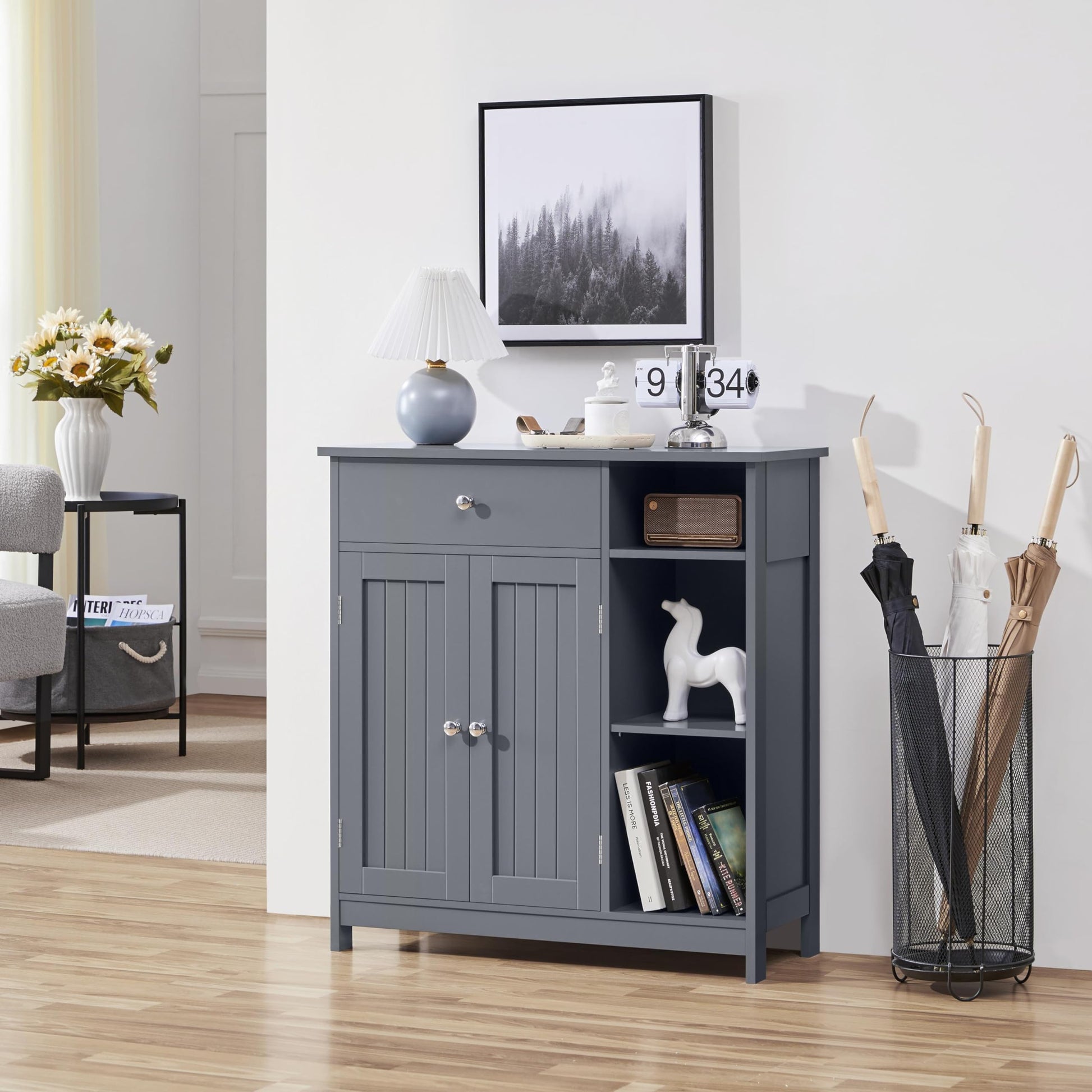 Yaheetech Unterschrank Badezimmerschrank Badkommode Badschrank mit 1 Schublade & 2 Türen & 3 Regalen Baderegal Bodenschrank mit verstellbare Einlegeböden, viel Stauraum, Dunkelgrau