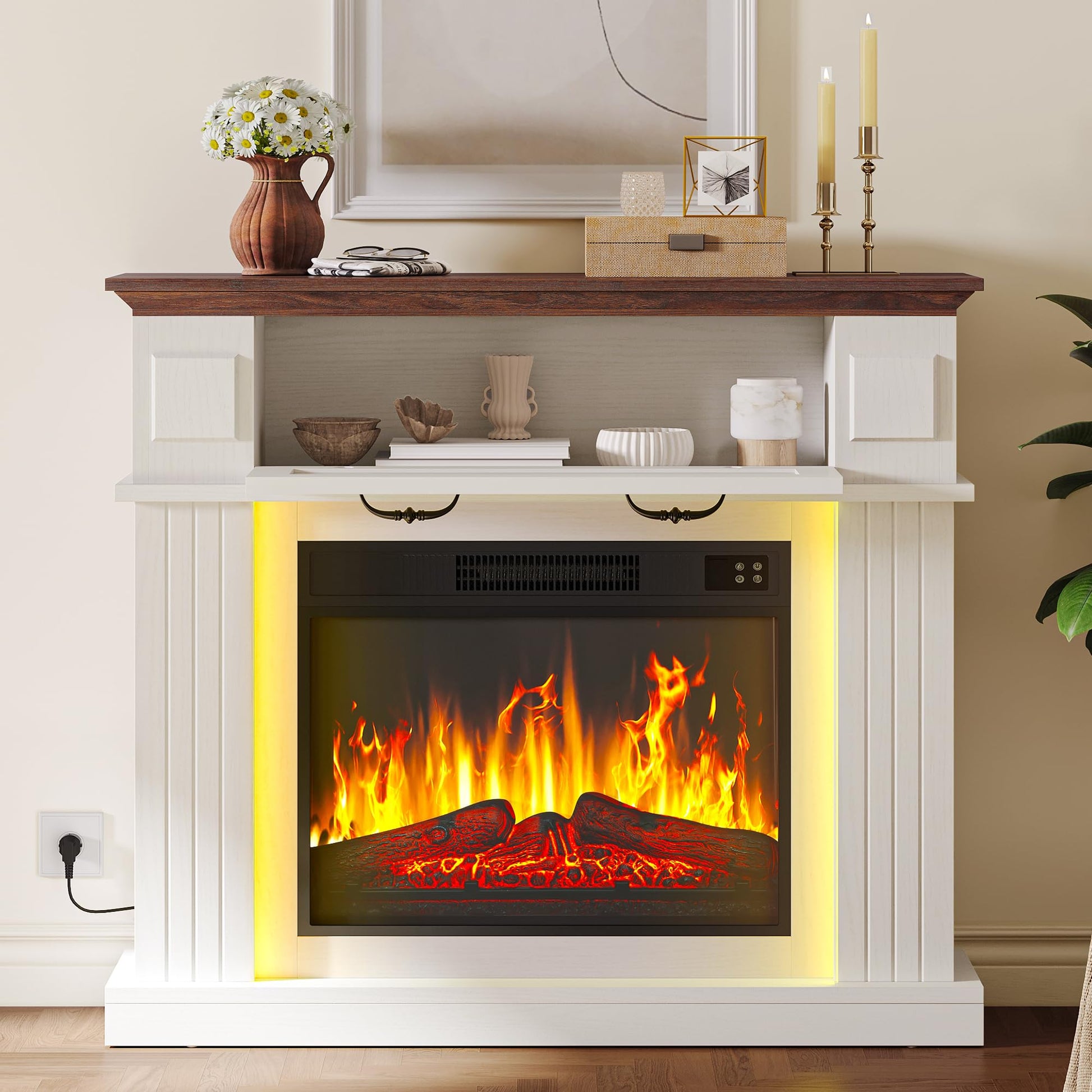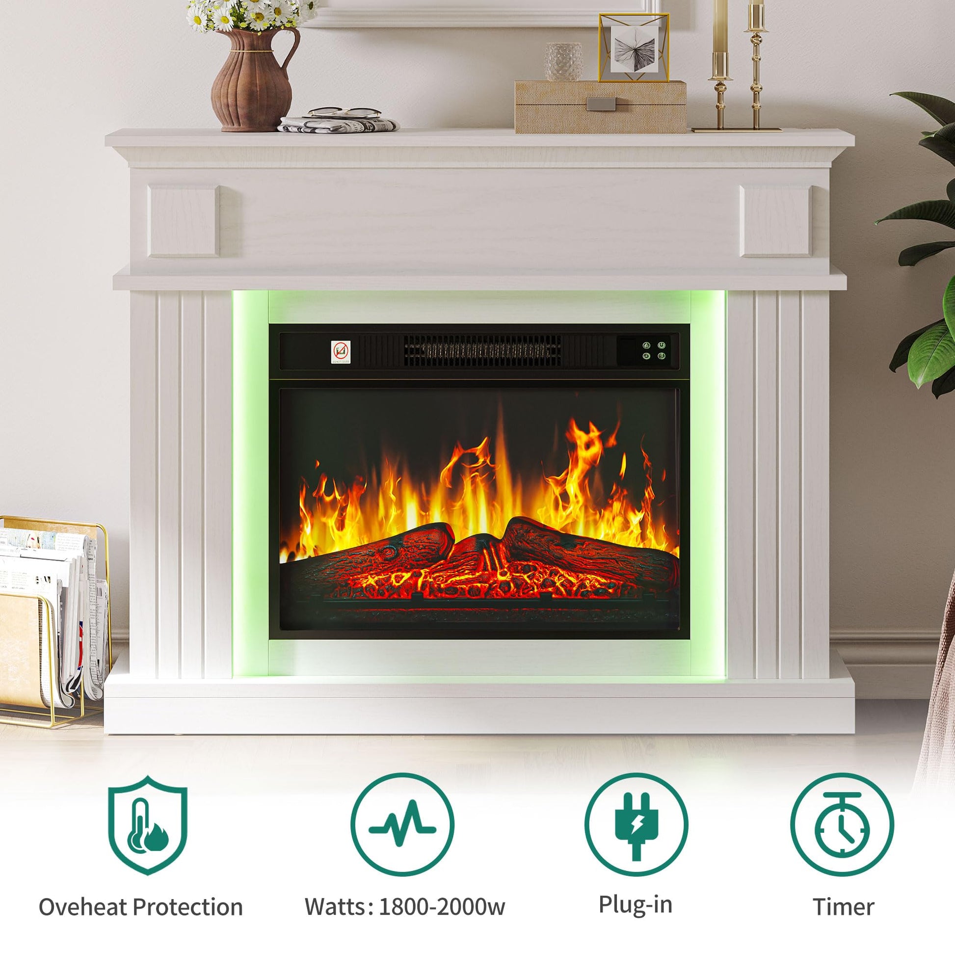 YITAHOME Electric Fireplace, 23 Inch Realistic 3D Flame Effect, Heat-Free Standing Electric Fireplace with Timer and 24-Colour LED Light Strip and Remote Control