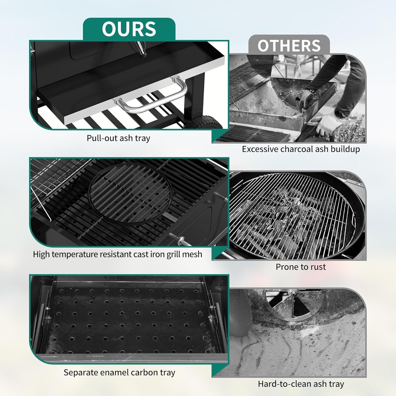 - INSULATED RACK & ASH DRAWER DESIGN The constant insulated rack made of highly conductive chrome-plated material is connected to the stove body. It keeps food warm on the rack, away from the coal, and maintains a level position even when the lid is closed; the drawer-like ash drawer allows easy cleaning and prevents the accumulation of coal ash in the oven body.