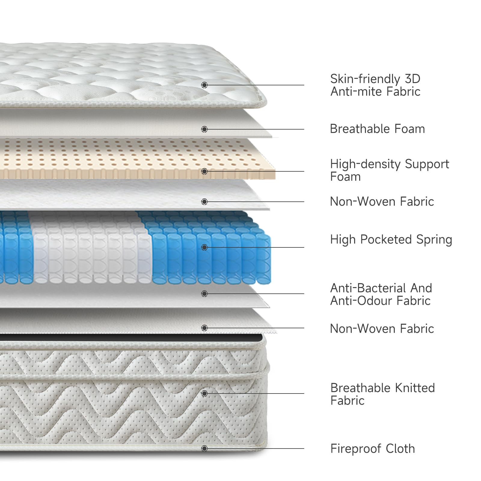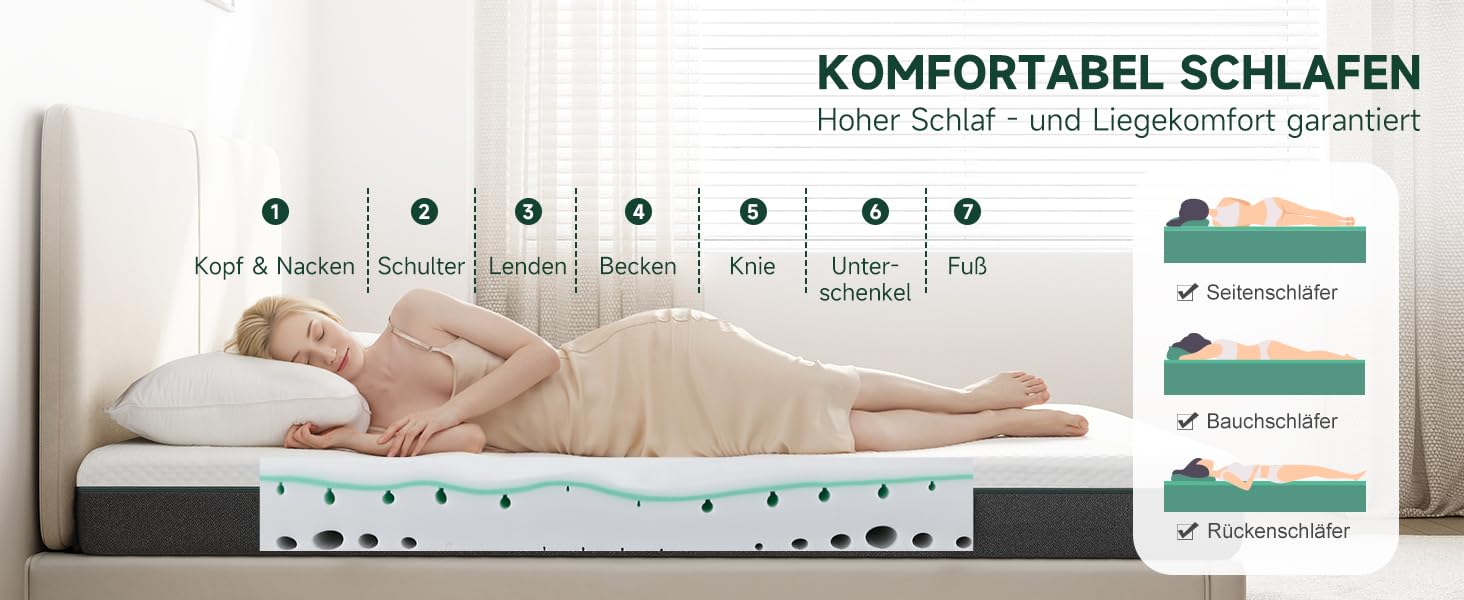 - Ergonomic design: 7-zone pocket spring for optimal body adjustment and even pressure distribution. The foam and spring system inside the Z-HOM mattress adapts to the curves of your body, providing targeted pressure relief to your lower back and spine