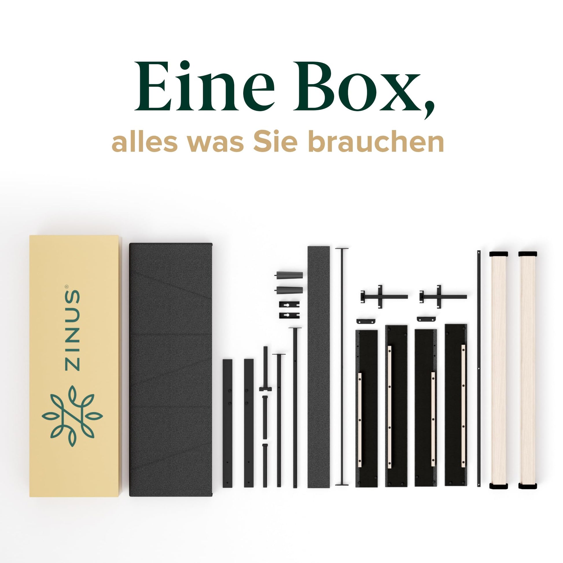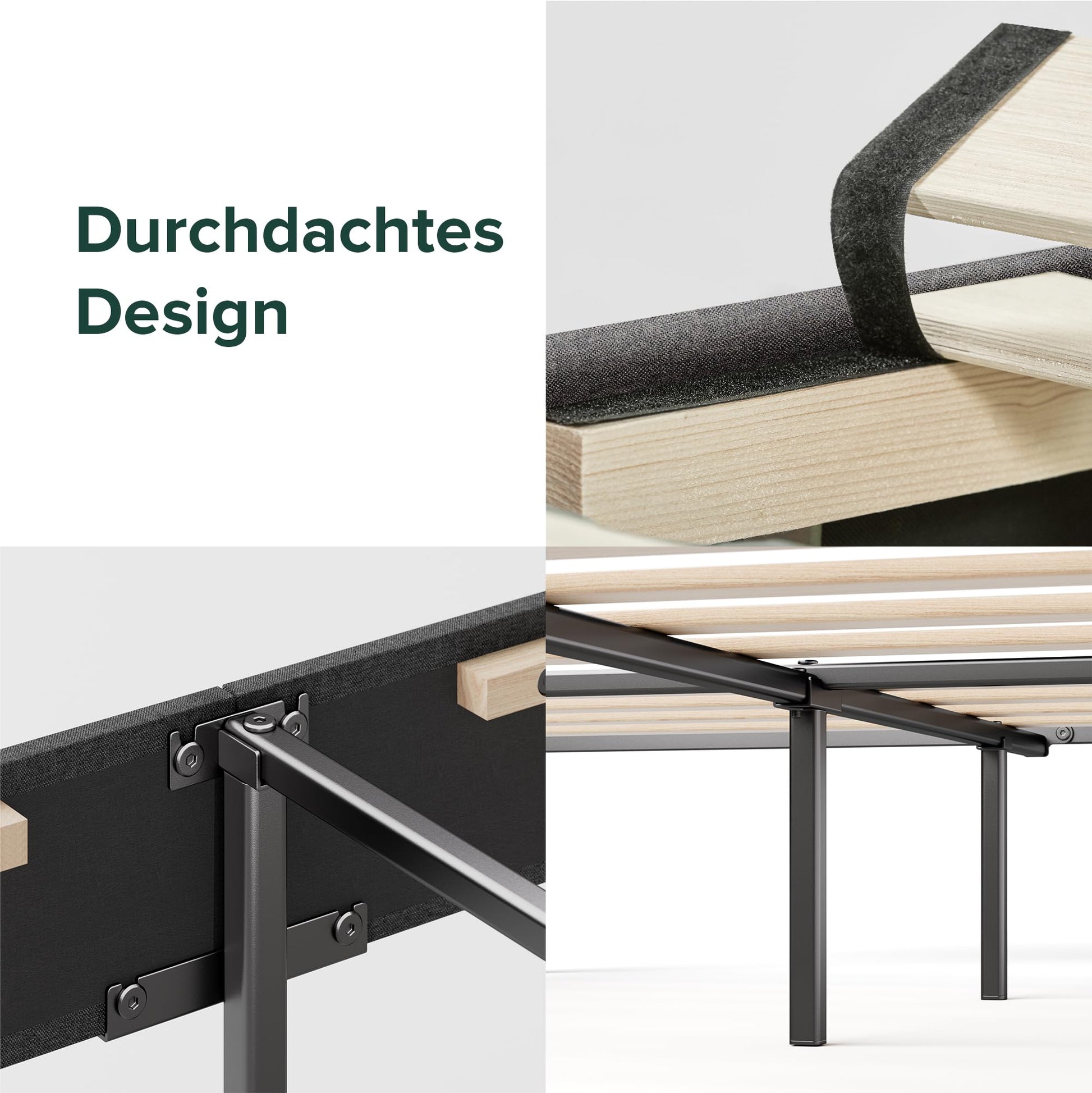 Zinus Maya Bed 180 x 200 cm - Height 30 cm - Padded Bed Frame with Headboard - Wooden Slatted Frame - Dark Grey, Dark Grey
